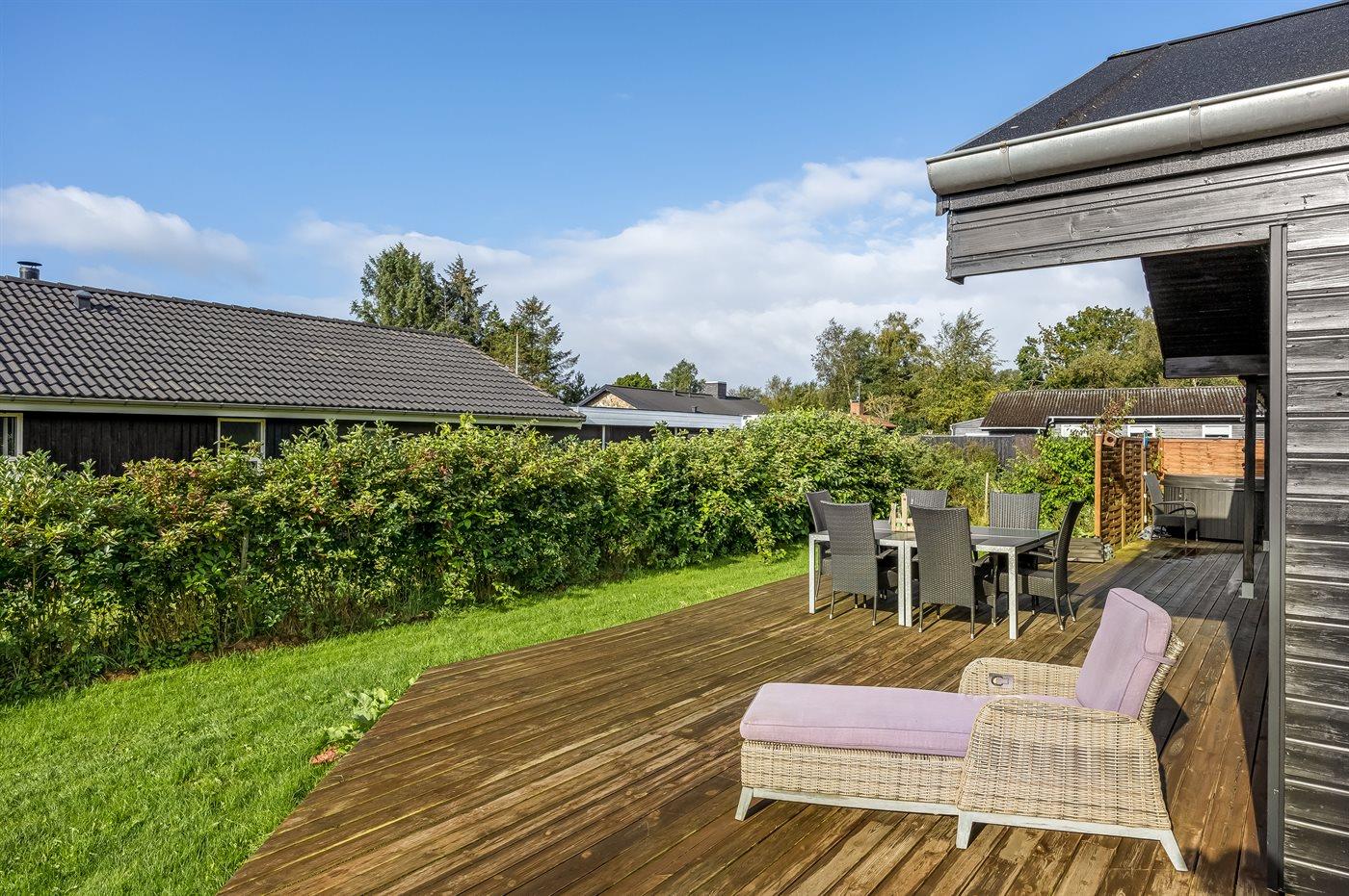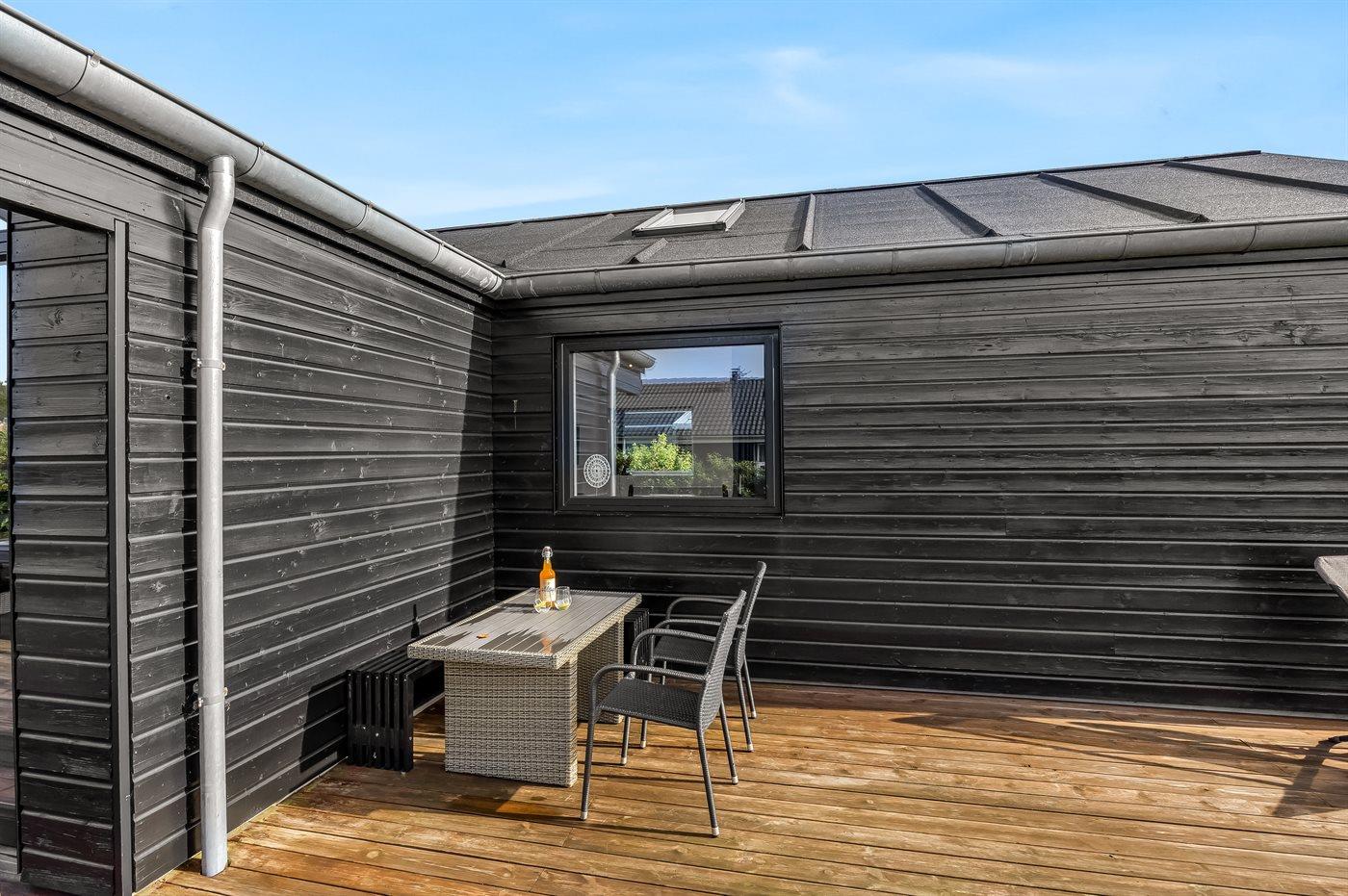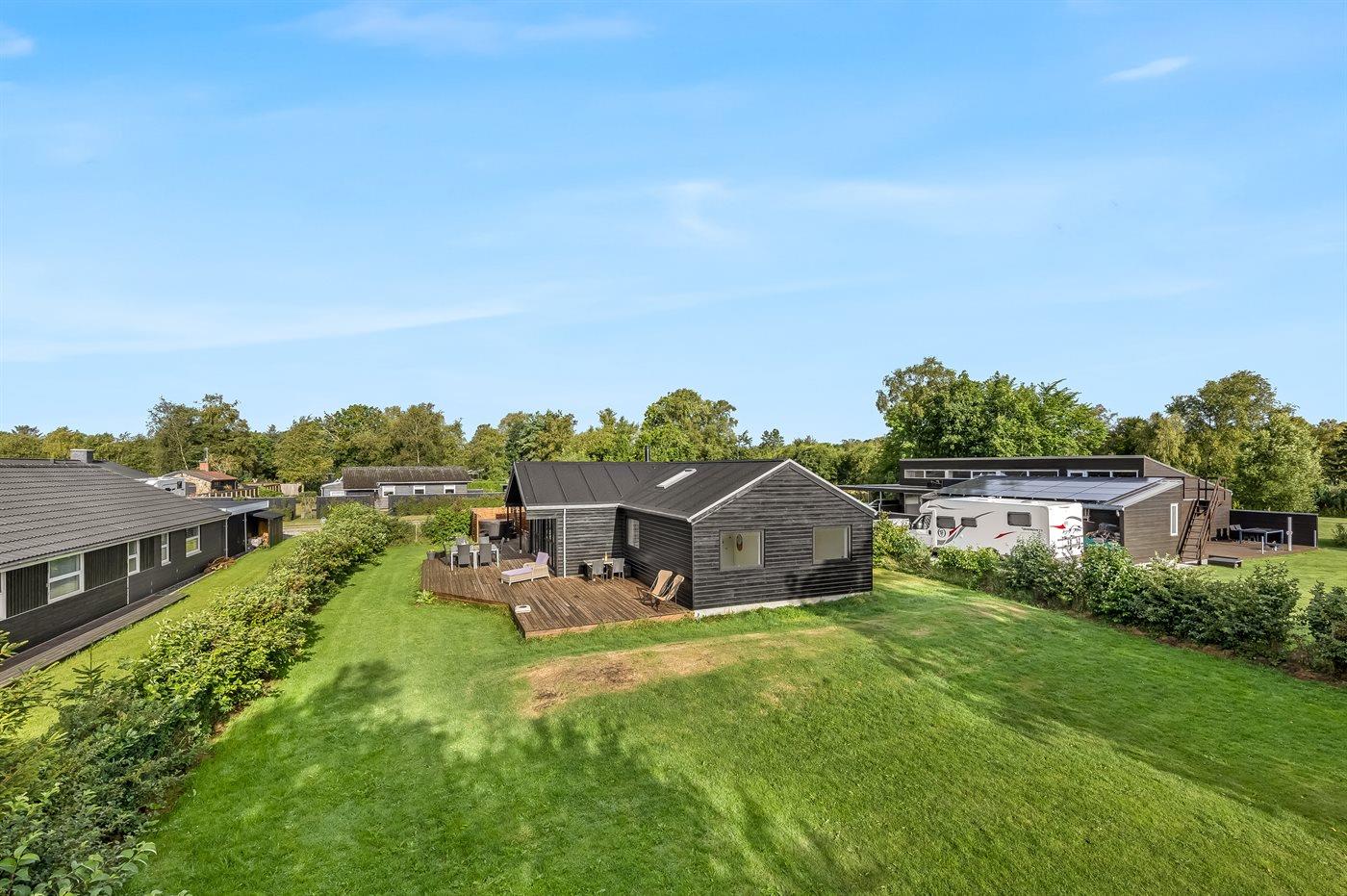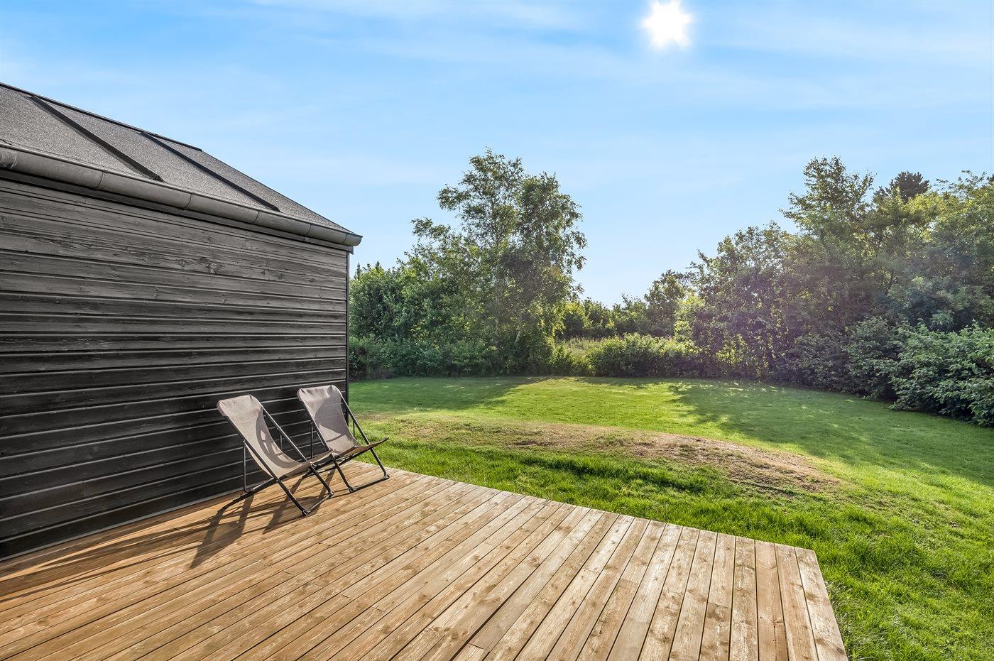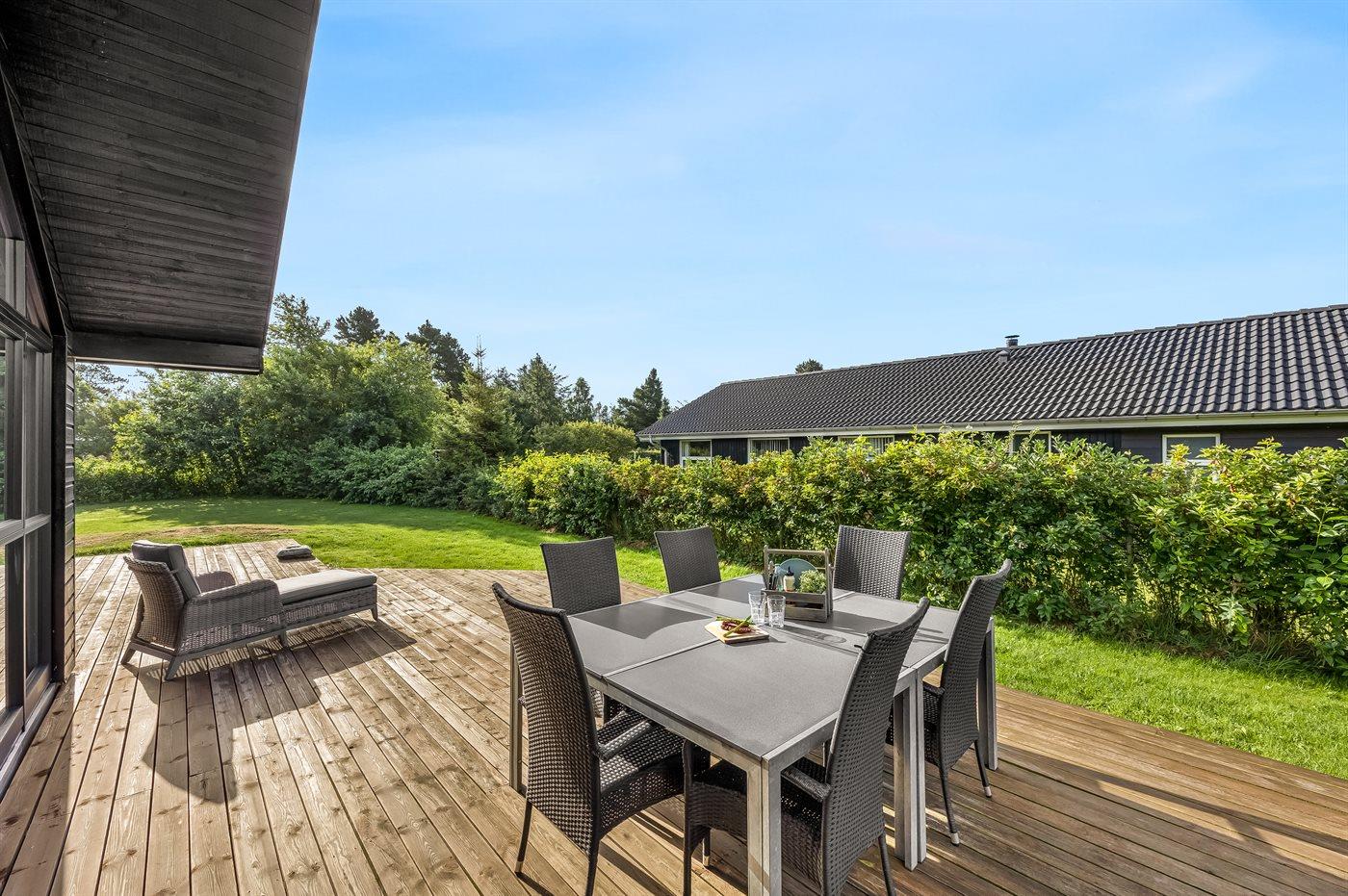 The holiday home is situated on a 1083 m² garden site. Situated 1100 m from the sea. Nearest shop is 750 m away. A terrace belong to the holiday home. Furthermore the house has a covered terrace. Barbecue at your disposal. Parking place by the holiday home.
