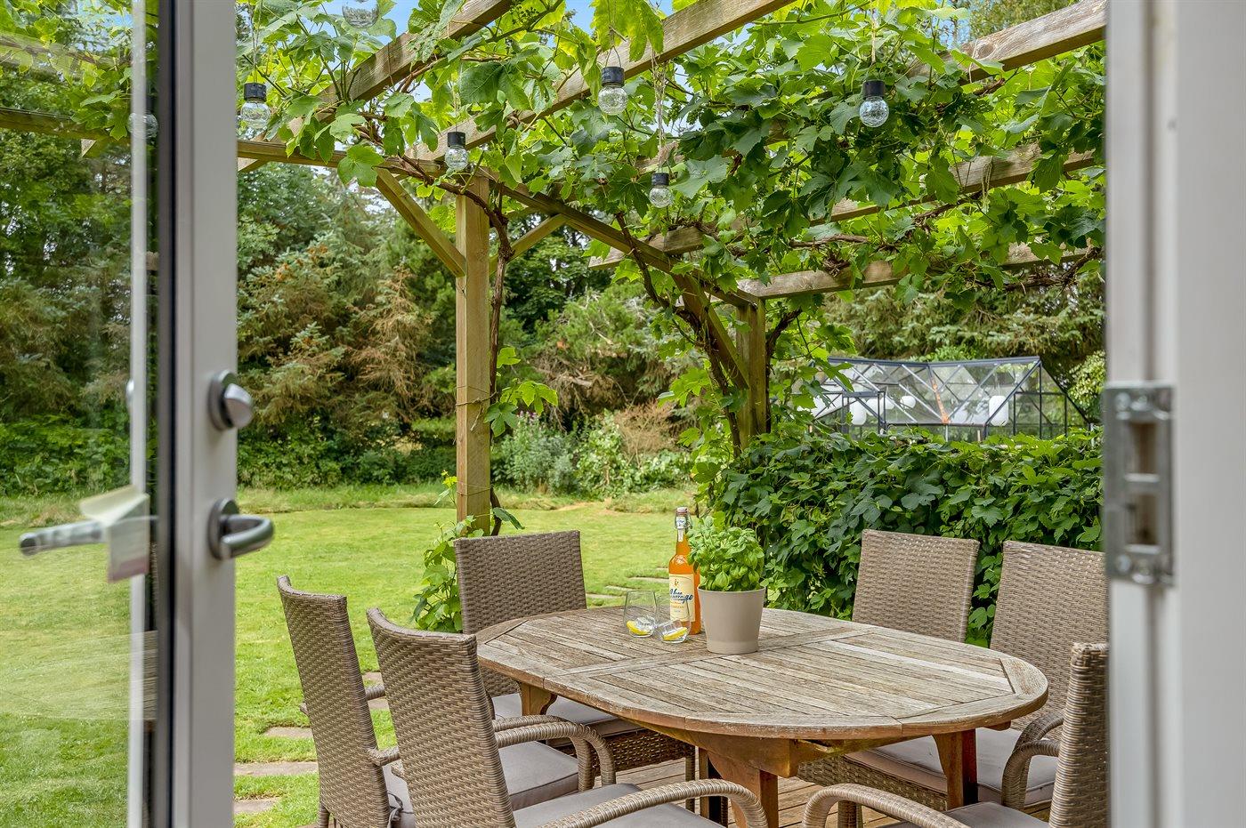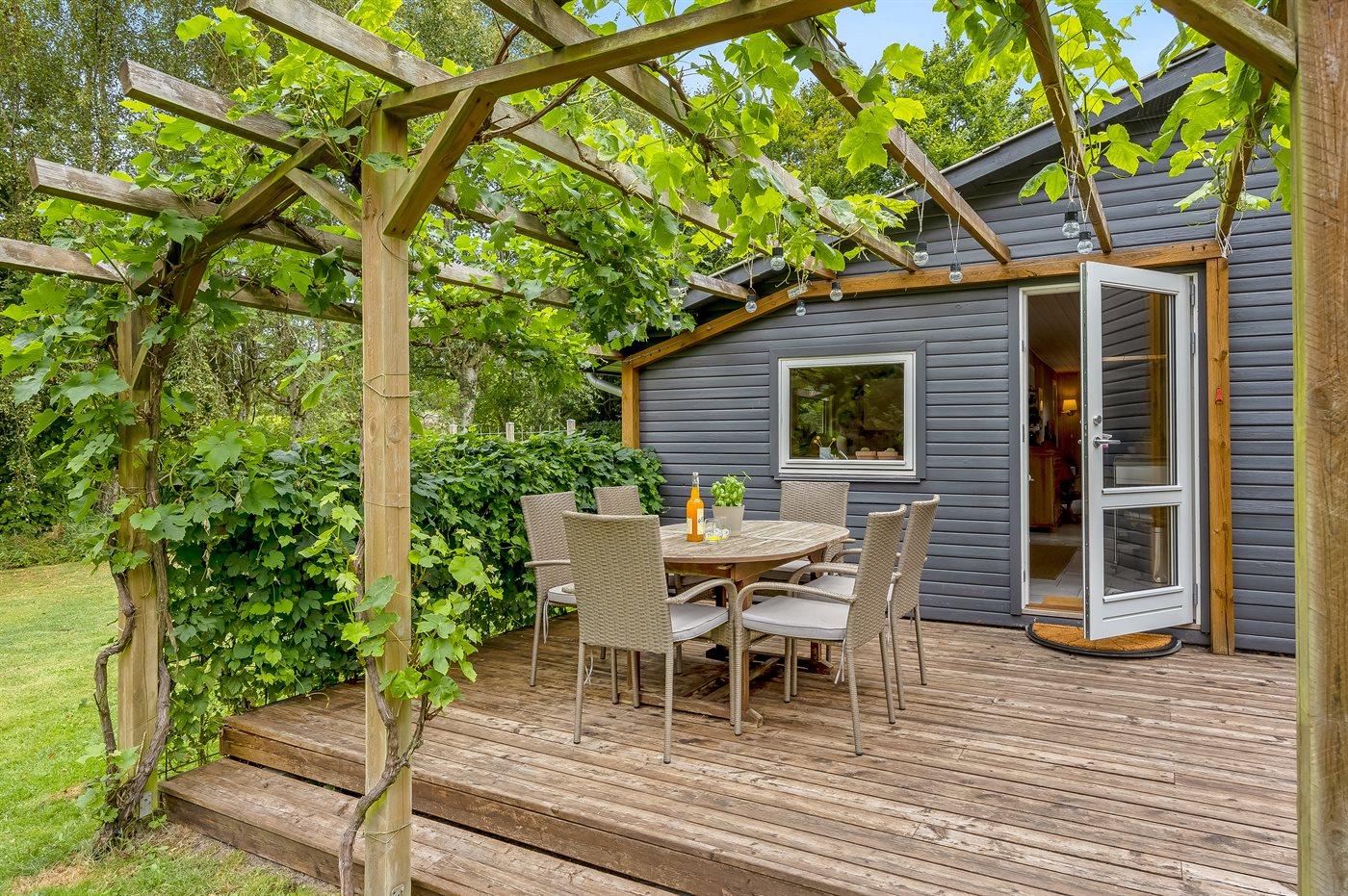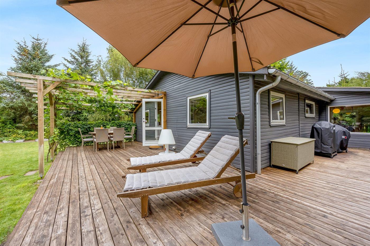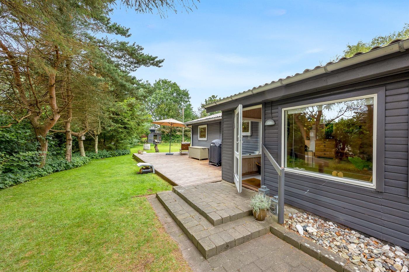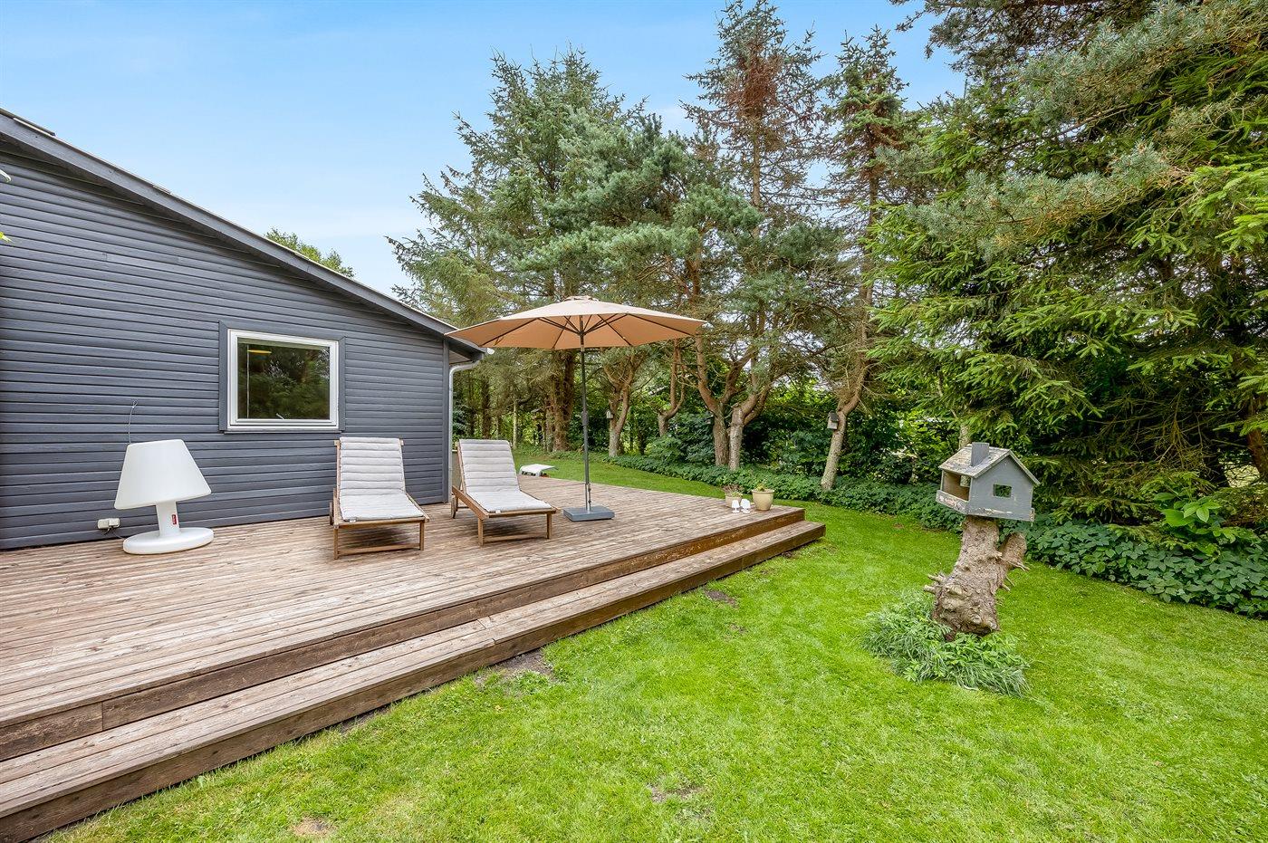 The holiday home is situated on a 1399 m² garden site. Situated 1300 m from the sea. Situated 6700 m from inlet. Nearest shop is 1300 m away. You will find a golf course in a distance of 5500 m. A terrace belong to the holiday home. There is also an orangery. Barbecue at your disposal. Parking place by the holiday home.