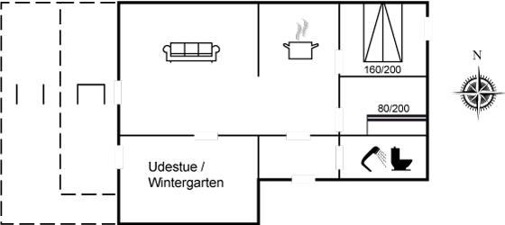 The holiday home is situated on a 1070 m² garden site. Situated 1000 m from the sea. Nearest shop is 1000 m away. A terrace belong to the holiday home. Furthermore the house has a covered terrace. Barbecue at your disposal. Parking place by the holiday home.