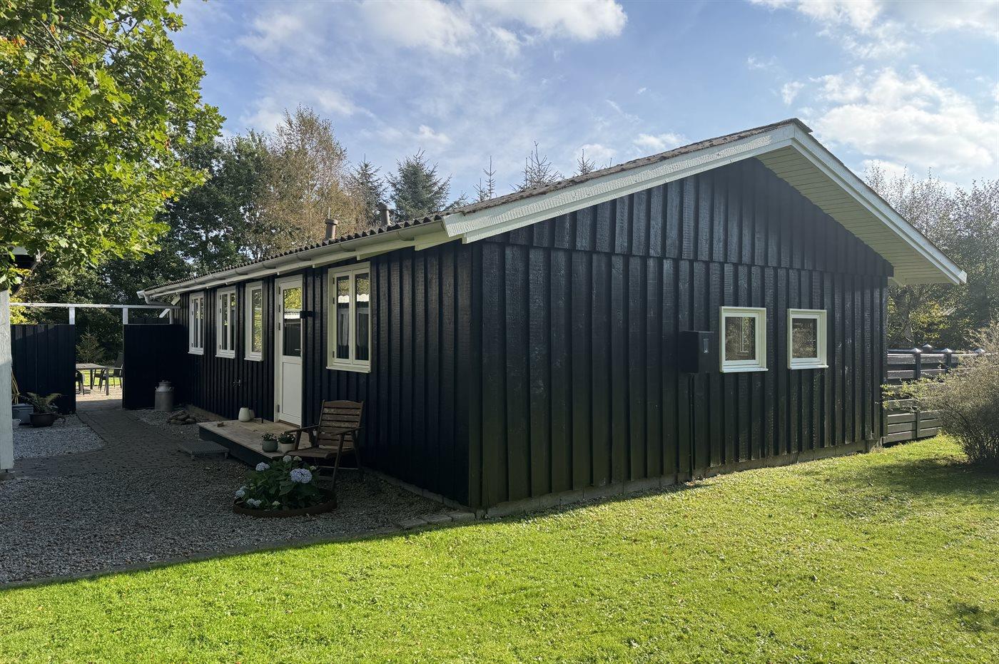 The holiday home is situated on a 1265 m² garden site. Situated 930 m from the sea. Situated 6400 m from inlet. Nearest shop is 1460 m away. You will find a golf course in a distance of 5900 m. A terrace belong to the holiday home. Swing. Slide. Barbecue at your disposal. Parking place by the holiday home.