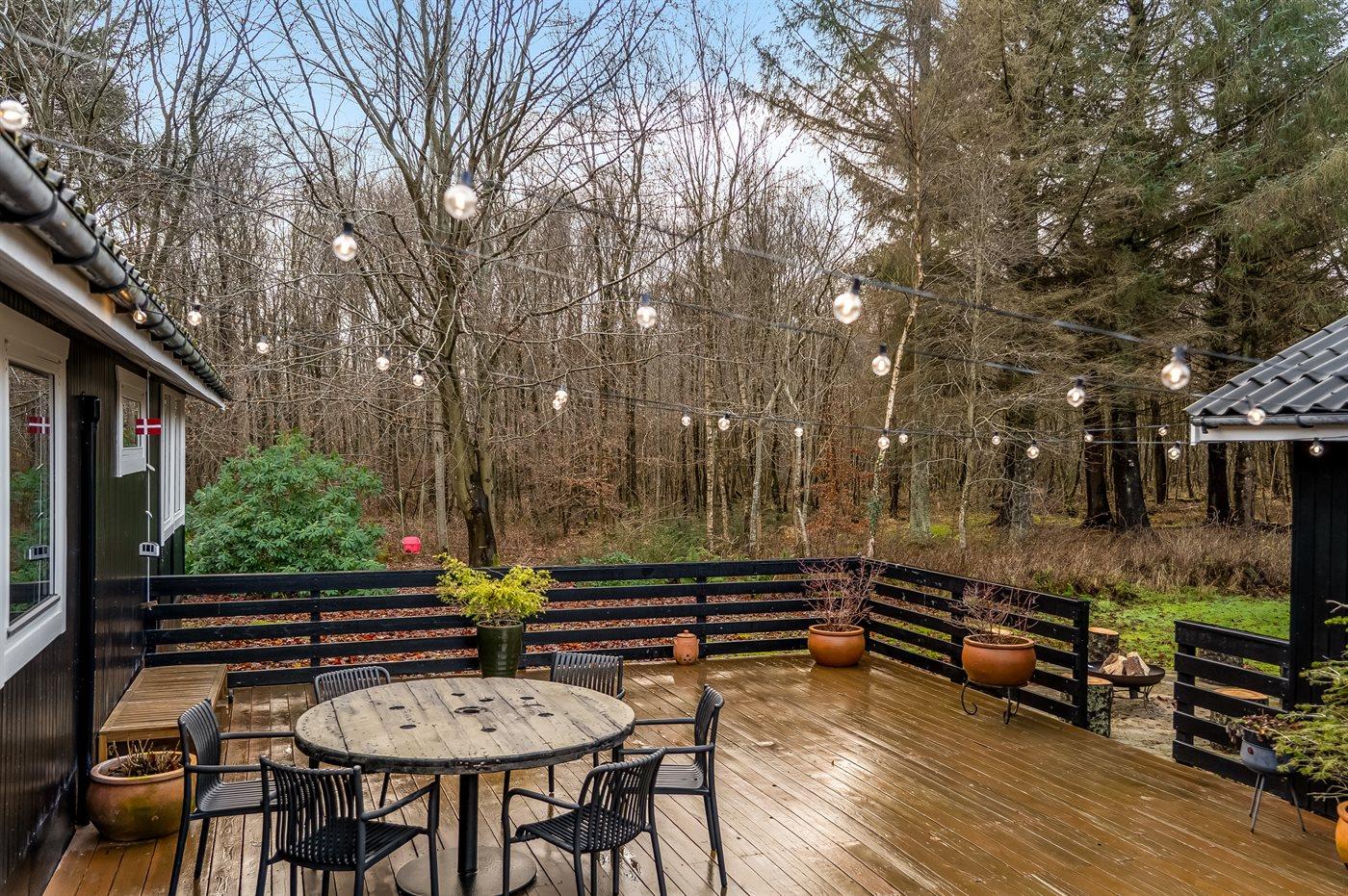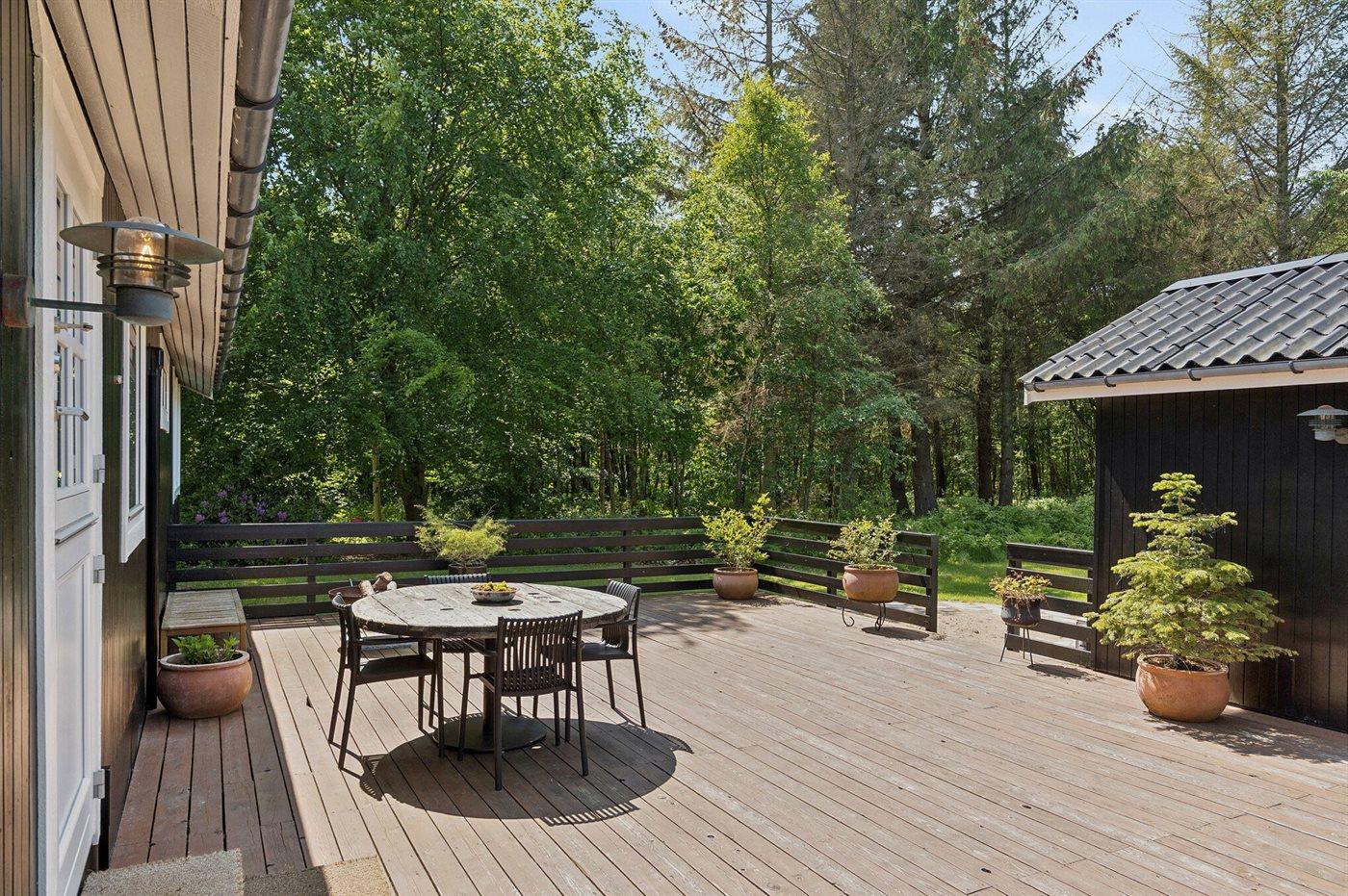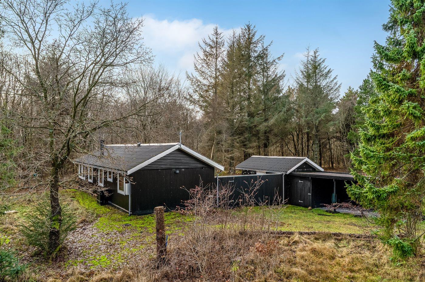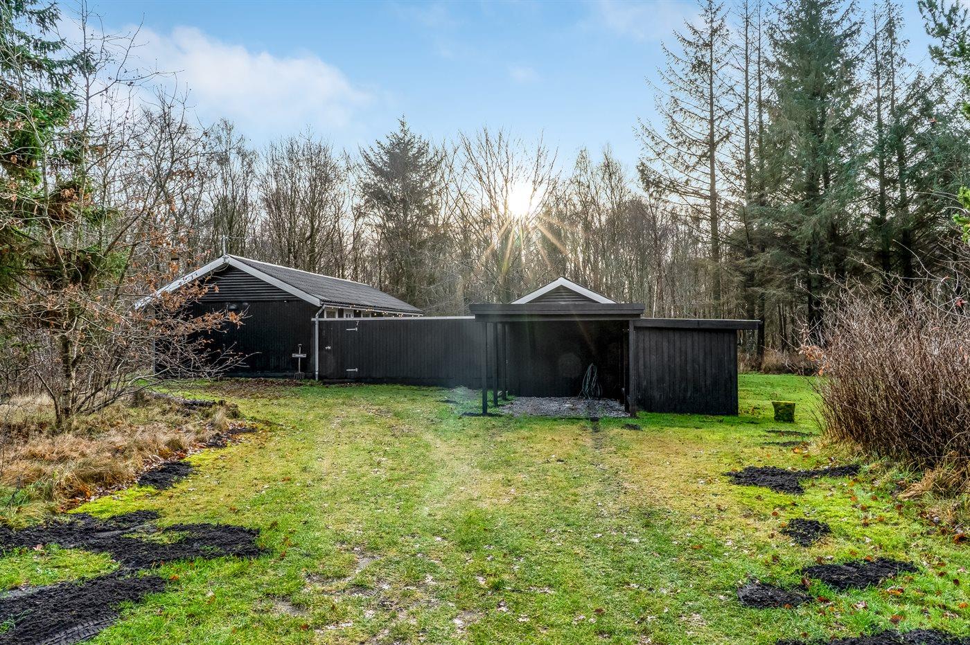 The holiday home is situated on a 7500 m² natural site. Situated 2000 m from the sea. Situated 6740 m from inlet. Nearest shop is 1770 m away. You will find a golf course in a distance of 5490 m. A terrace belong to the holiday home. You find a tool shed.Fire place. Barbecue at your disposal. Carport is at your disposal. Parking place by the holiday home.