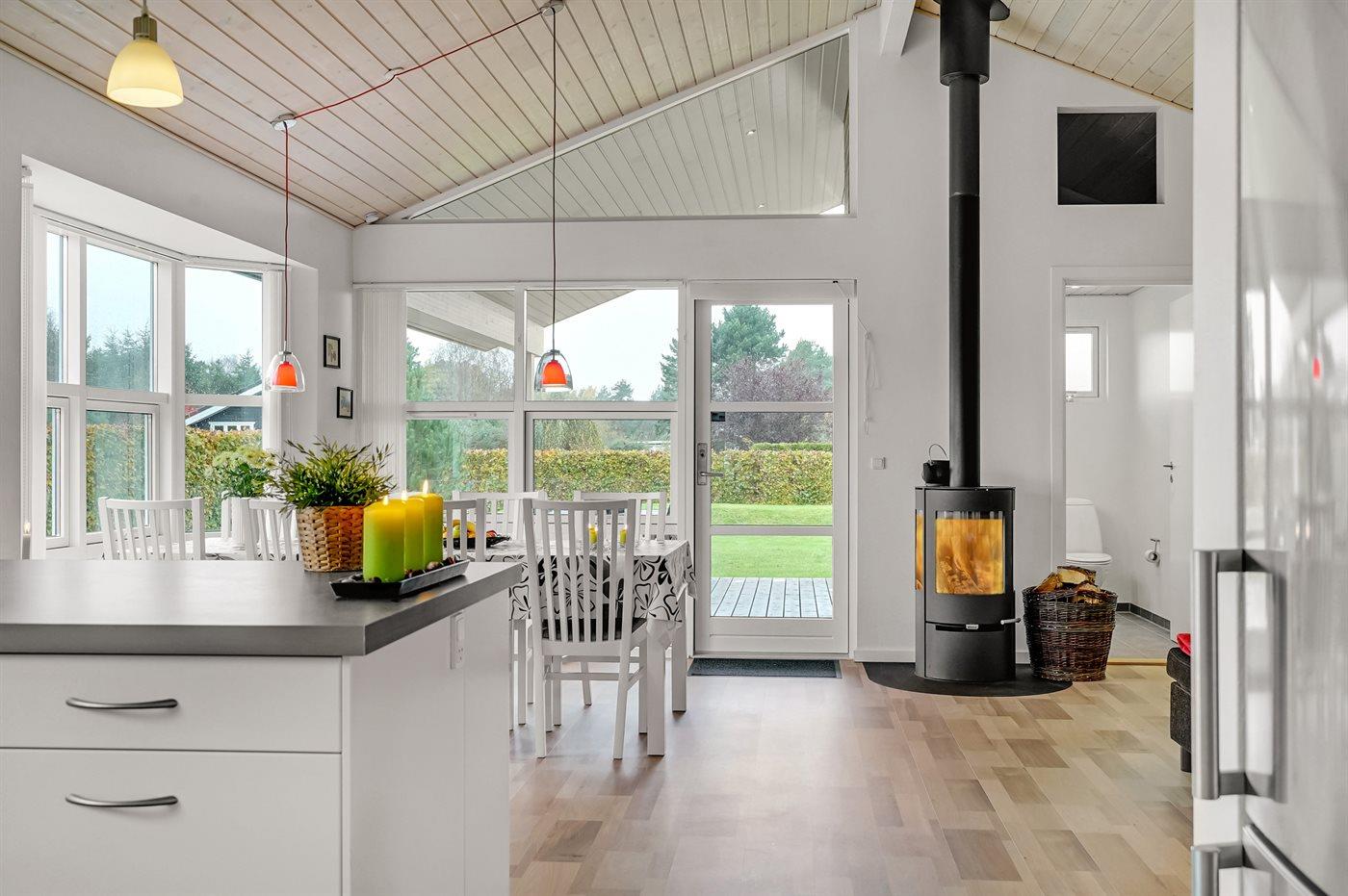 Holiday home suitable for 6 persons . The holiday home is 102 m² and is build in 2013. No pets allowed. The holiday home is equipped with energy-saving heat pump. The holiday home has washing machine. Tumble dryer. Freezer capacity of 80 litres. Further more there is 1 wood-burning stove. For the youngest ones there is 1 high chair.