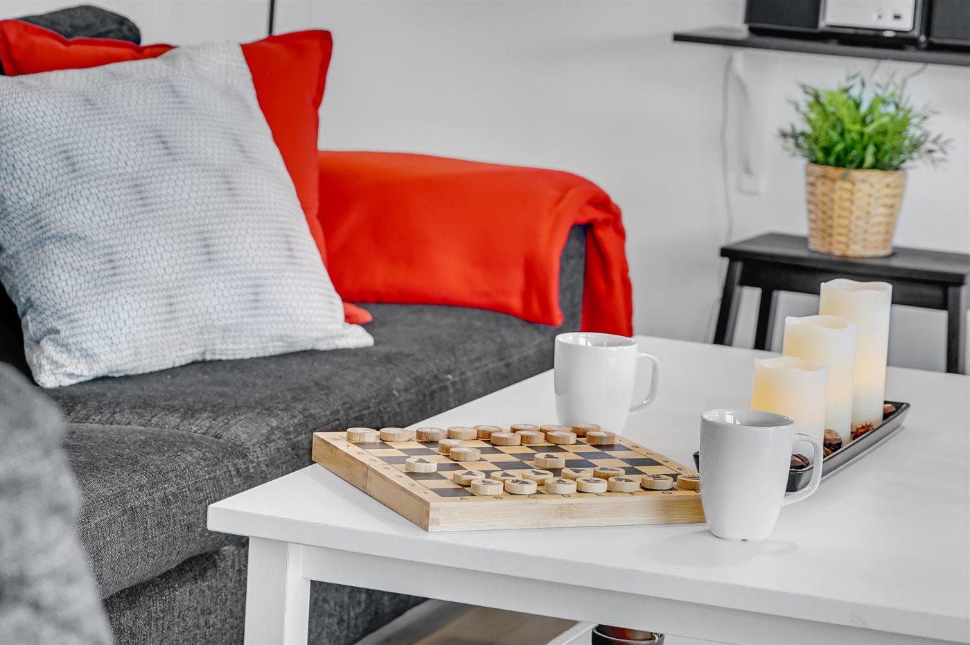 All together there are 3 bedrooms. The beds are divided on: 4 sleeping places in double beds. 2 sleeping places in single beds. Moreover 1 cot for a baby (0-3 years).