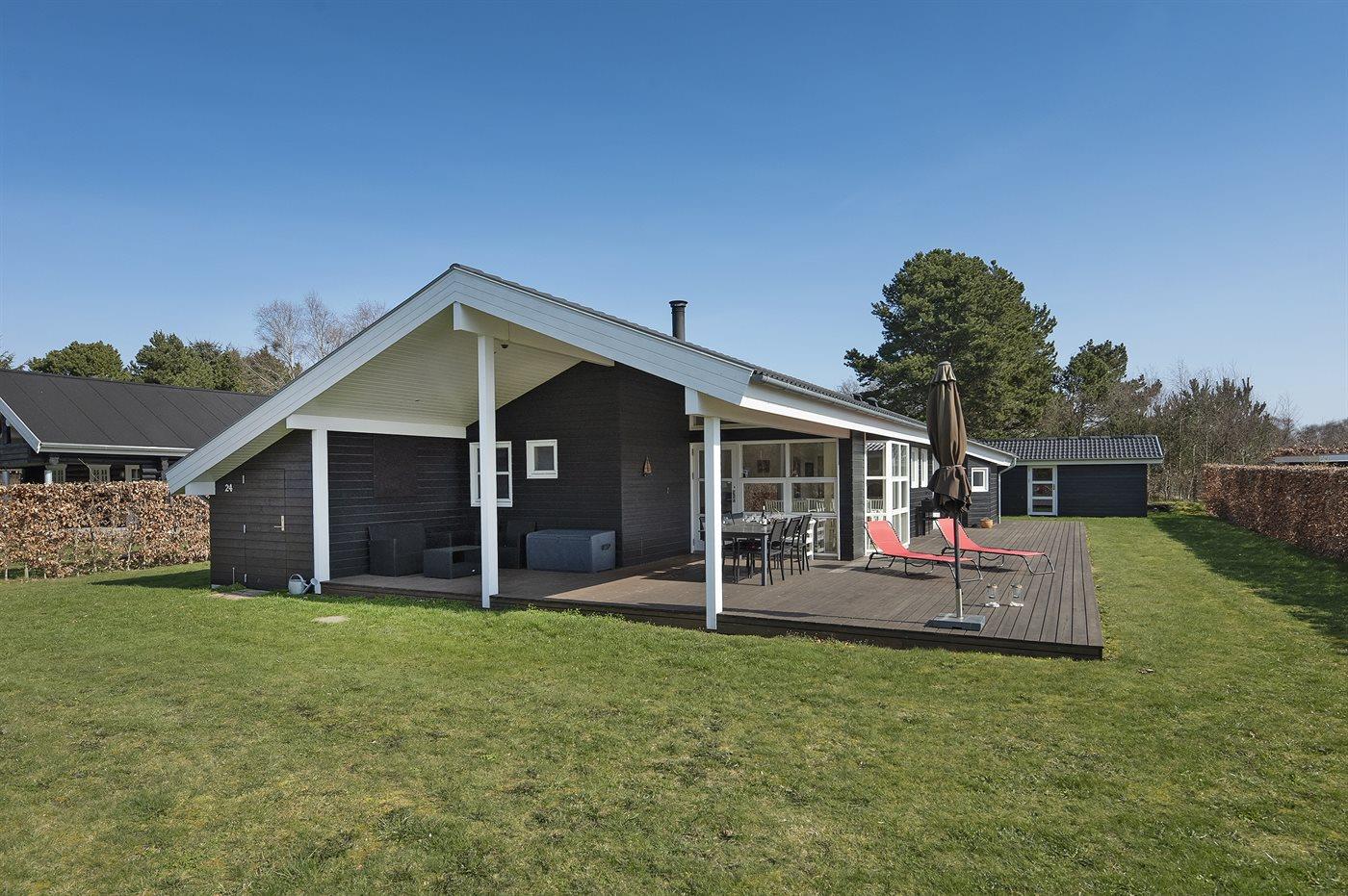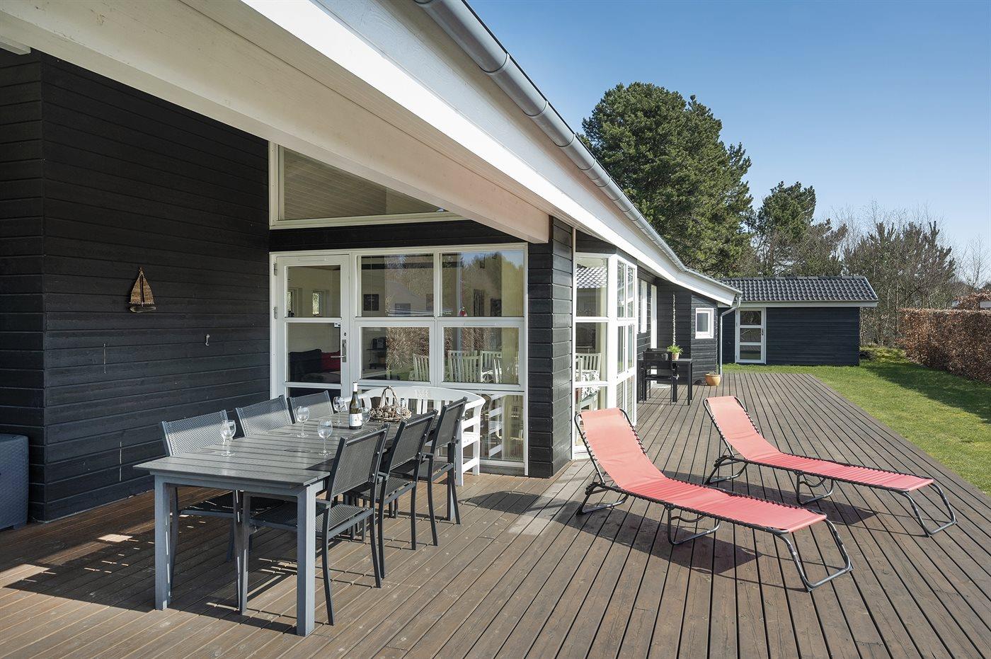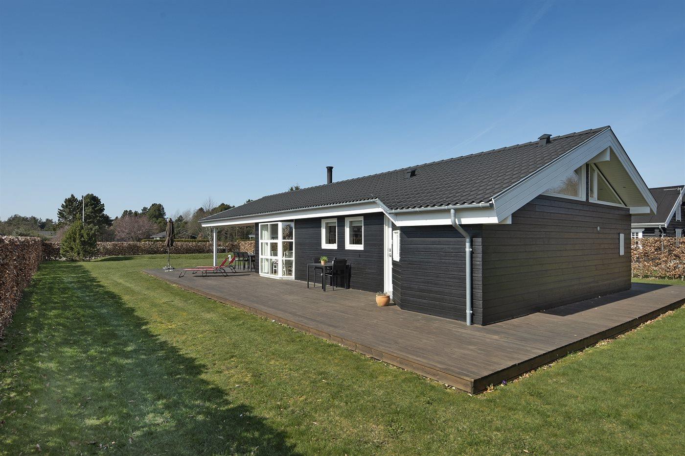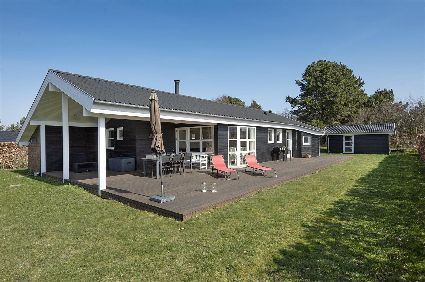 The holiday home is situated on a 1300 m² garden site. Situated 1500 m from the sea. Nearest shop is 1500 m away. A 80 m² terrace belong to the holiday home. Furthermore the house has a 40 m² covered terrace. You find a tool shed. Swing. Sandbox. Barbecue at your disposal. Parking place by the holiday home.