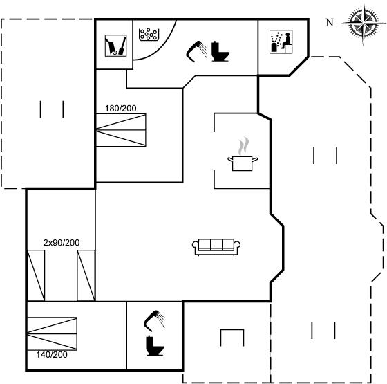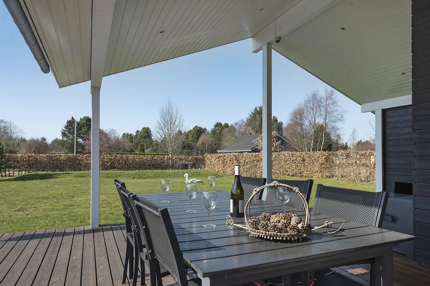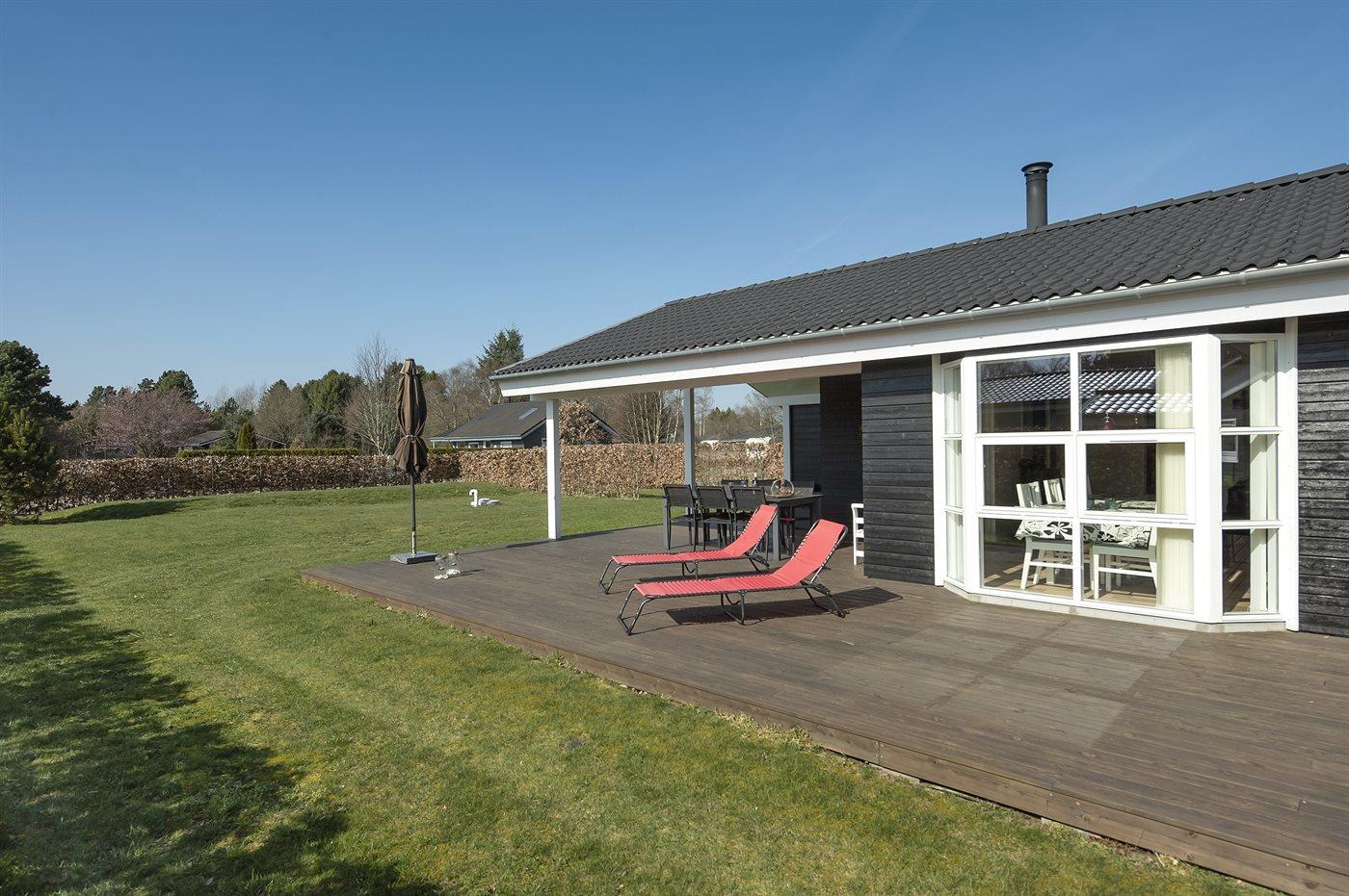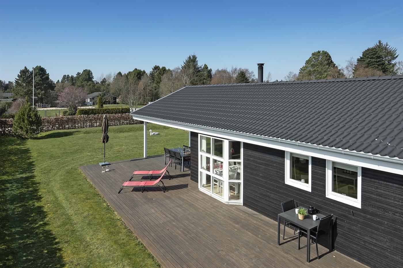 The holiday home is situated on a 1300 m² garden site. Situated 1500 m from the sea. Nearest shop is 1500 m away. A 80 m² terrace belong to the holiday home. Furthermore the house has a 40 m² covered terrace. You find a tool shed. Swing. Sandbox. Barbecue at your disposal. Parking place by the holiday home.