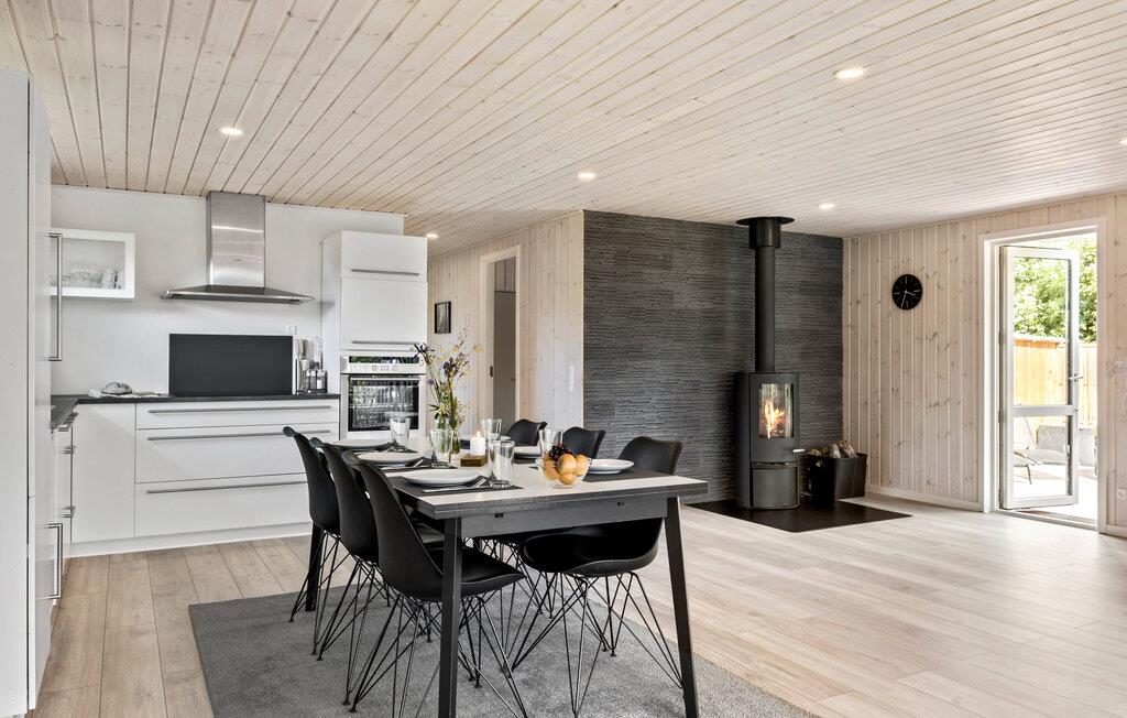 Genießen Sie einen unvergesslichen Familienurlaub in diesem idyllischen Ferienhaus nahe dem Hou Strand an der Aalborg Bucht. Dieses einladende Haus bietet alles, was Sie für einen komfortablen Aufenthalt benötigen, und schafft den idealen Rahmen für gemeinsame Erlebnisse. Der großzügige Wohn- und Essbereich bildet das Herzstück des Hauses und lädt zu geselligen Stunden ein. Ob bei einem gemeinsamen Essen an dem großen Esstisch im Haus oder auf der sonnigen Terrasse, hier finden Sie genügend Platz für die ganze Familie. Der Kaminofen sorgt abends für eine gemütliche Atmosphäre.