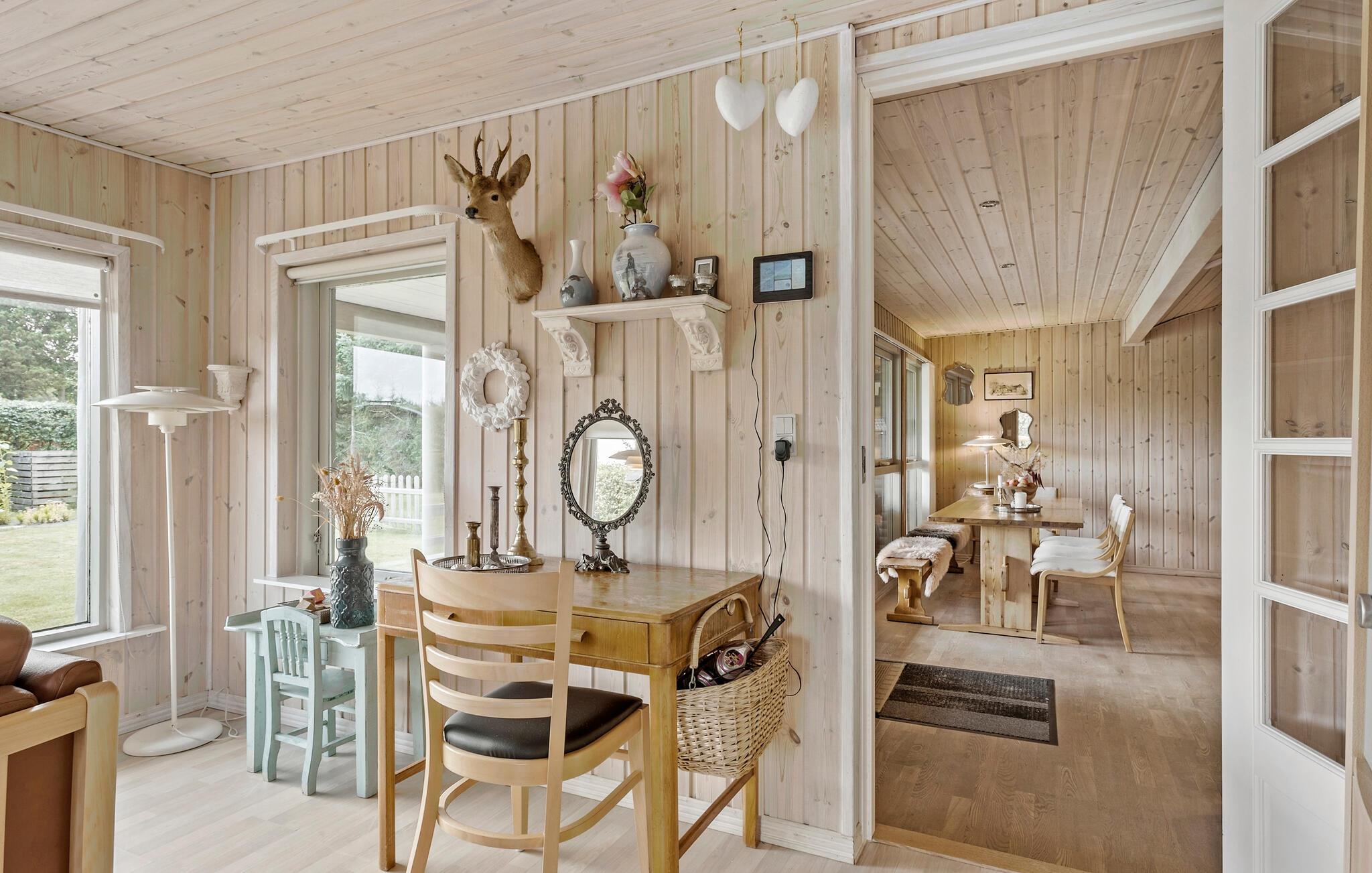 In diesem charmanten Ferienhaus in Hou erwartet Sie ein erholsamer Urlaub in einem Ambiente voller skandinavischer Gemütlichkeit. Das helle Holzinterieur, kombiniert mit einer liebevollen Dekoration und dem knisternden Holzofen, schafft eine warme, einladende Atmosphäre. Genießen Sie die Familienzeit beim gemeinsamen Koch- oder Spieleabenden und tauchen in das heimelige Flair des Hauses ein.