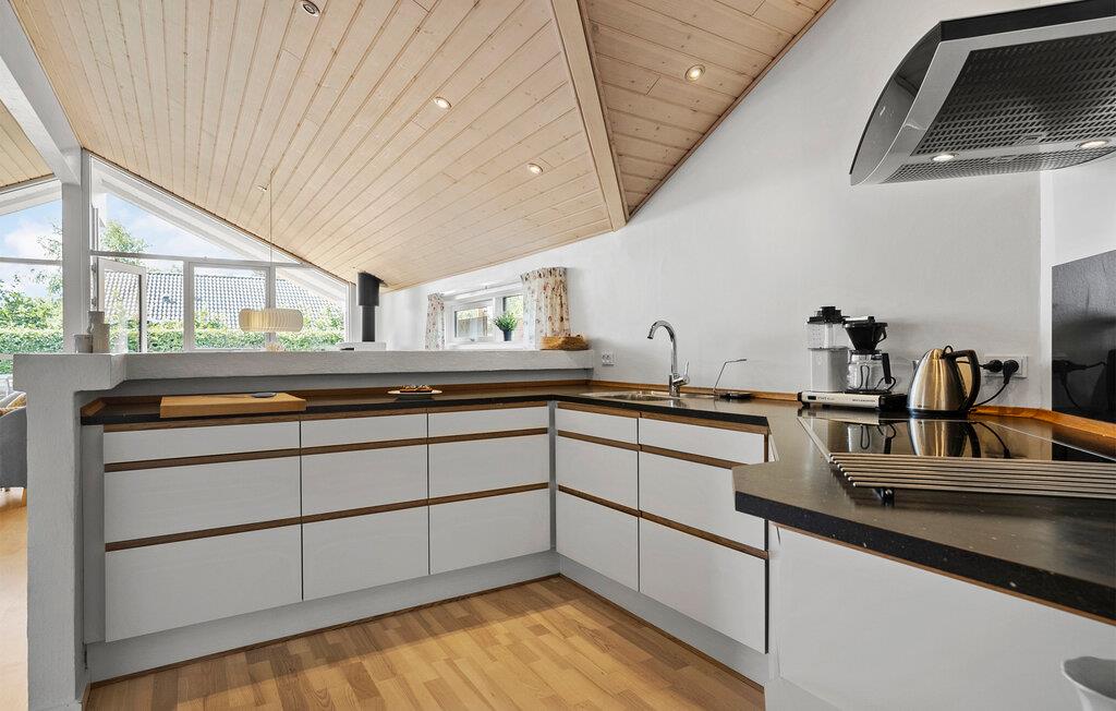 Willkommen in diesem hellen und geschmackvoll eingerichteten Ferienhaus, das Sie mit viel Platz und hohem Wohnkomfort begrüßt. Gönnen Sie sich hier wohlige Momente in der Sauna, veranstalten Sie fröhliche Koch-Events und genießen Sie ausgedehnte Mahlzeiten im offenen Wohnbereich, während der Kaminofen für zusätzliche Behaglichkeit sorgt. Halten Sie sich an den Trimmgeräten fit und kommen Sie nach einem aktiven Tag für einen gemütlichen Filmabend auf der komfortablen Sofalandschaft zusammen.