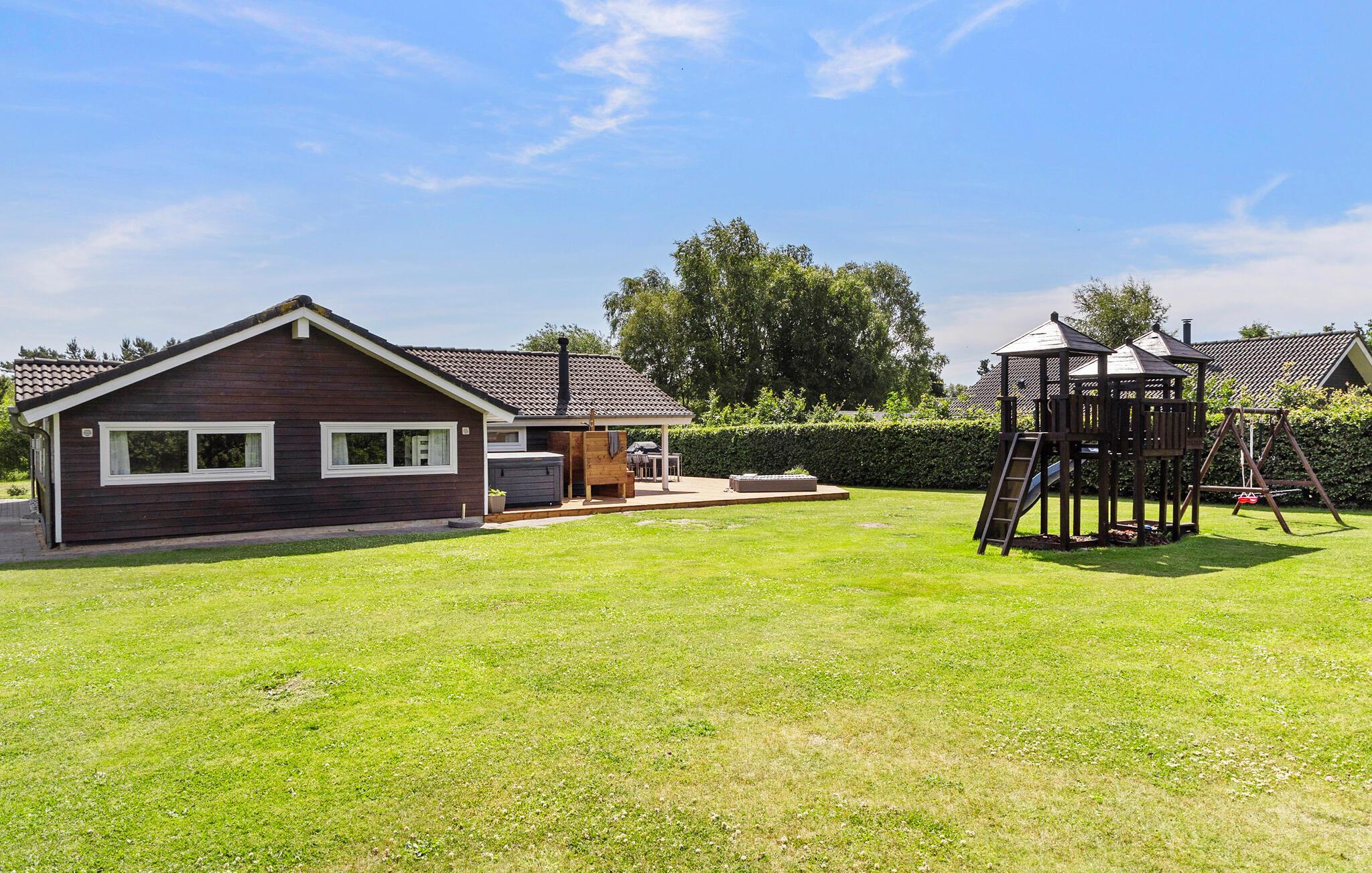 Der weitläufige Garten lockt Ihre Kinder mit reizvollen Spielmöglichkeiten an die frische Luft. Sonnen Sie sich auf den bequemen Liegen, erfrischen Sie sich unter der Dusche oder lassen Sie im Whirlpool die Seele baumeln, während andere den Grill für einen stimmungsvollen Abend unter freiem Himmel vorbereiten.