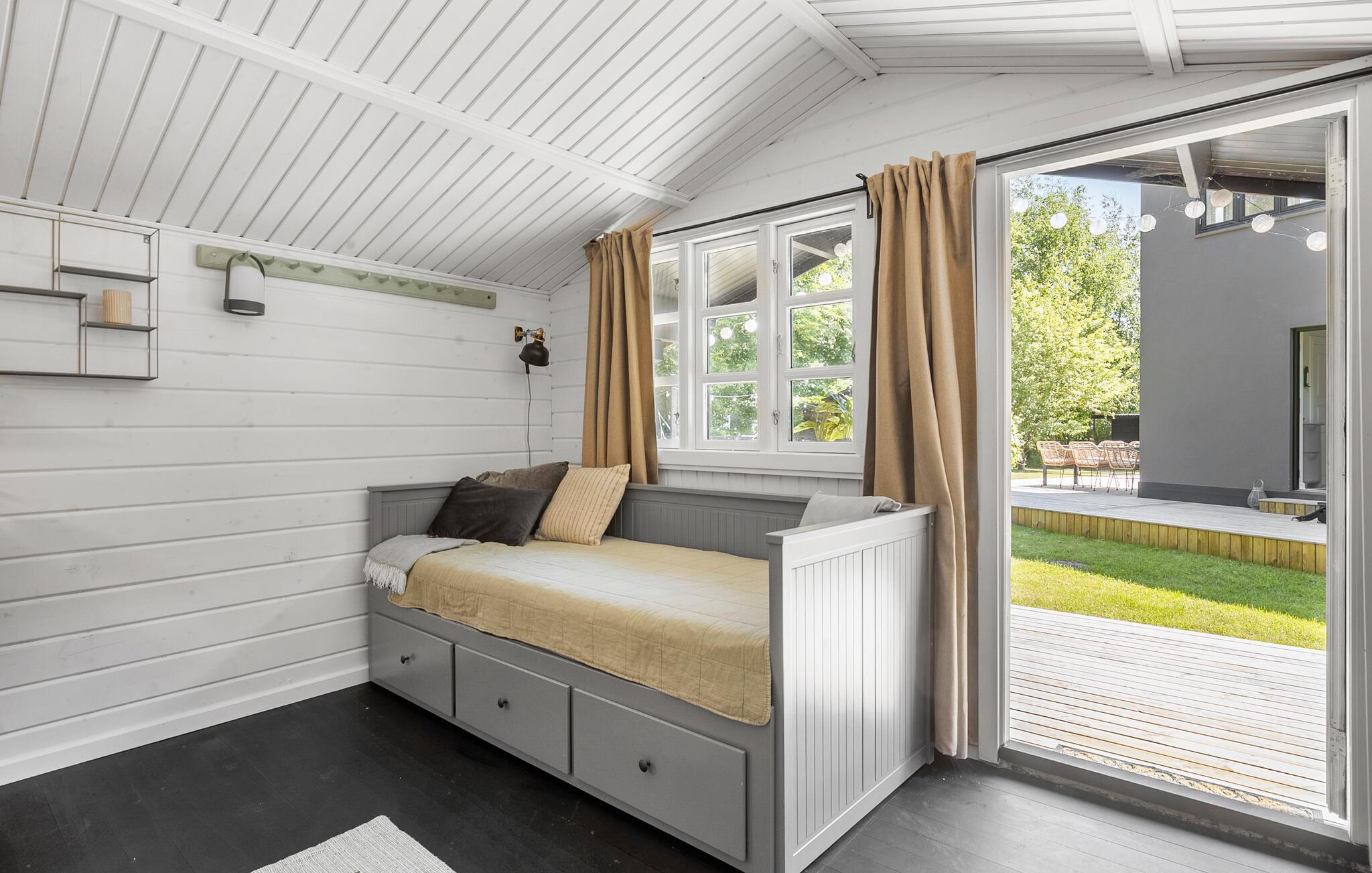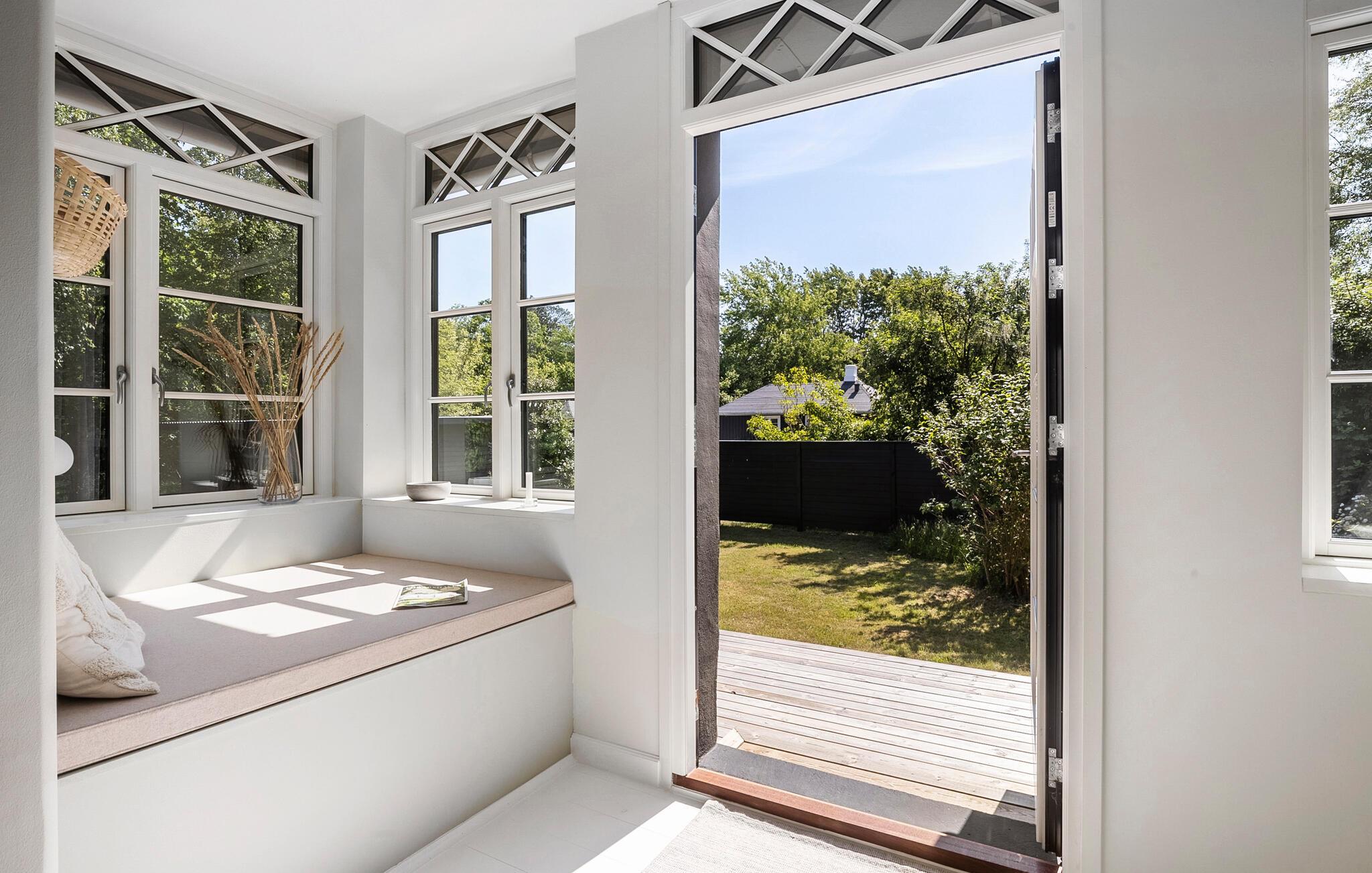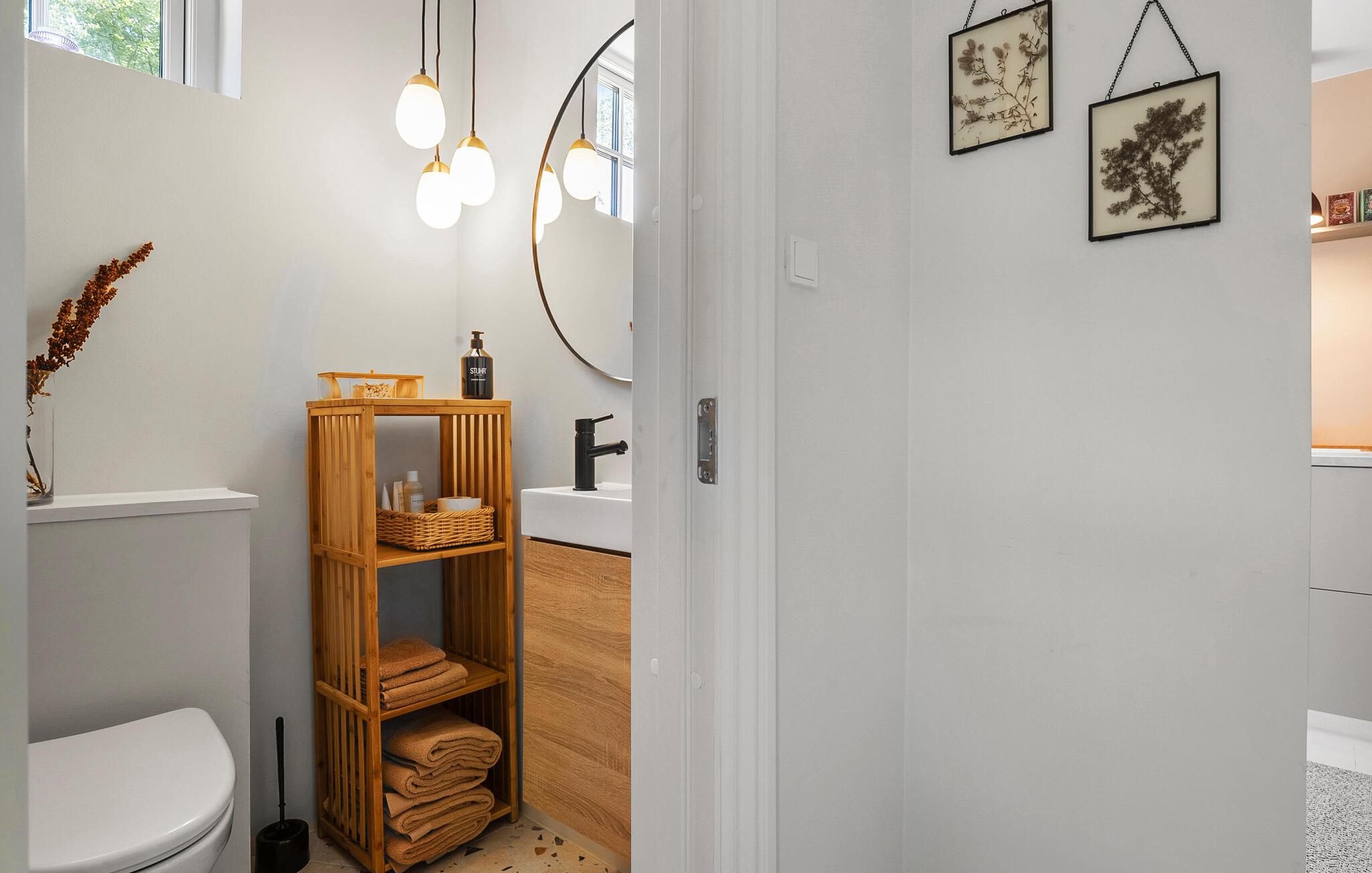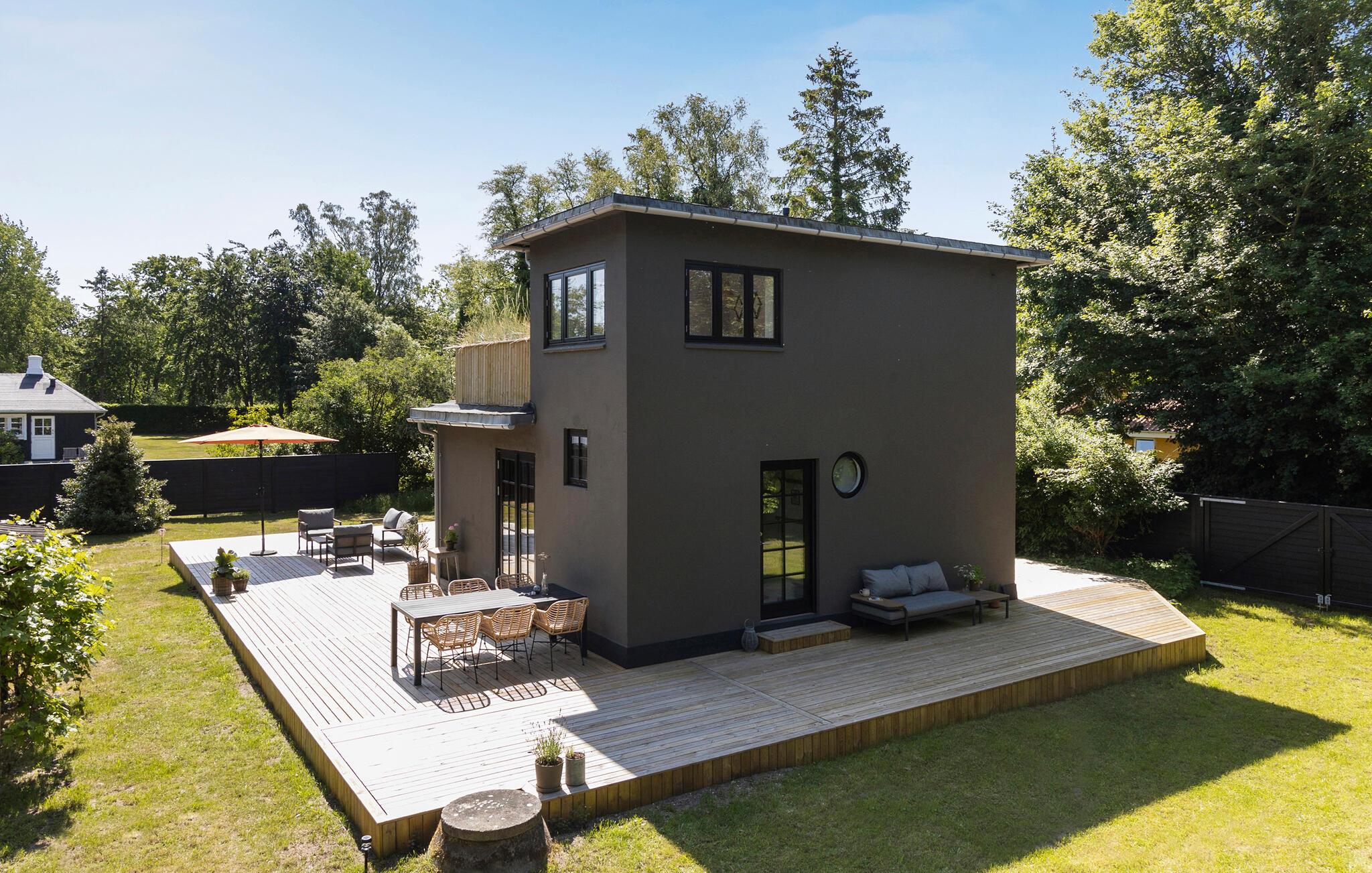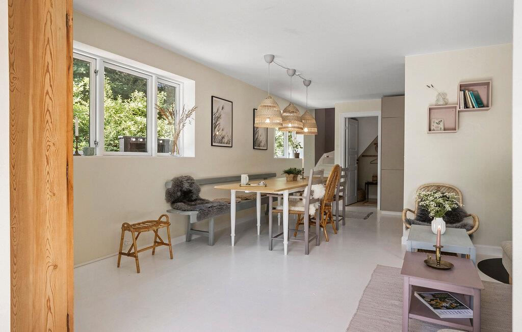 Verbringen Sie Ihre Ferien in diesem geschmackvoll gestalteten Ferienhaus auf der Insel Langeland, nur wenige Gehminuten vom Strand entfernt. Hier erwarten Sie Ruhe, Komfort und viele schöne Möglichkeiten zum Entspannen, drinnen wie draußen. Der helle, modern und gemütlich eingerichtete Innenbereich überzeugt durch klare Linien, natürliche Materialien und stilvolle Details. Der offene Wohnbereich mit Kaminofen lädt zu gemütlichen Abenden ein, sei es mit einem Buch auf dem Sofa oder beim gemeinsamen Essen am Esstisch. Die praktische Küche bietet Ihnen die Möglichkeit, gemeinsam zu kochen. Lassen Sie den Blick durch die großen Fenster in den grünen Garten schweifen oder nutzen Sie die kuschelige Fensterbank als Leseecke.