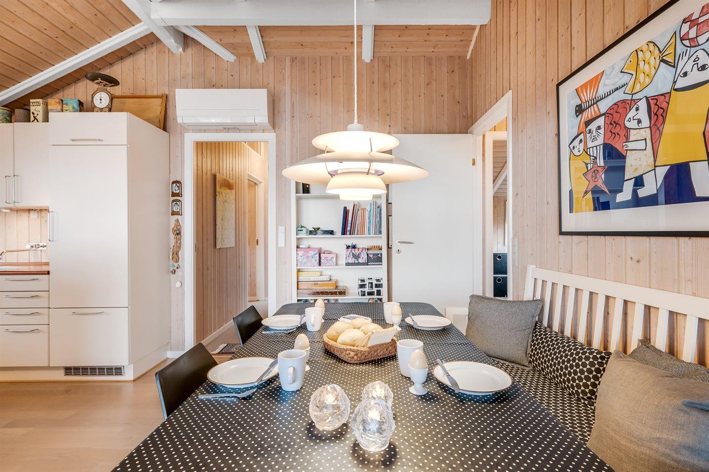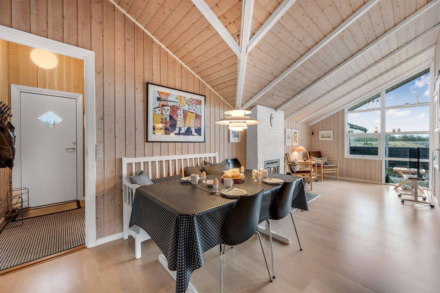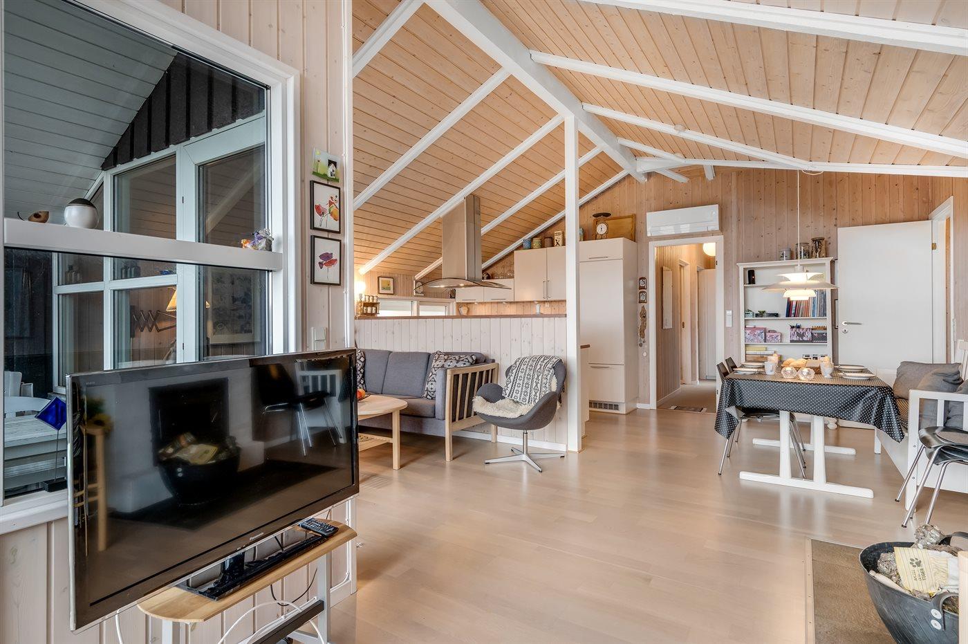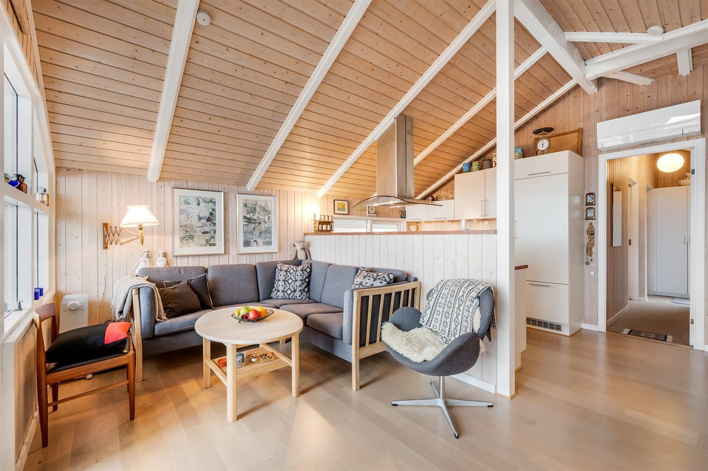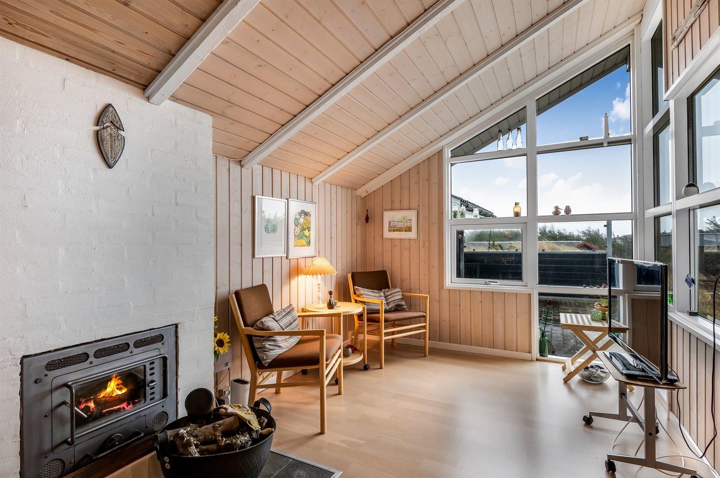 Holiday home suitable for 6 persons . The holiday home is 75 m² and is build in 1976. In 2006 the holiday home was renovated. No pets allowed. The holiday home is equipped with energy-friendly air-to-air heat pump.} There is moreover a fireplace.