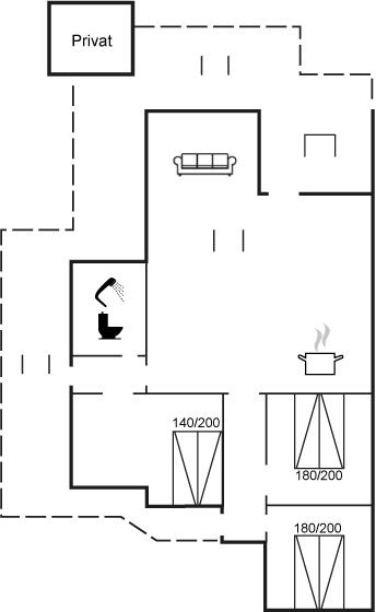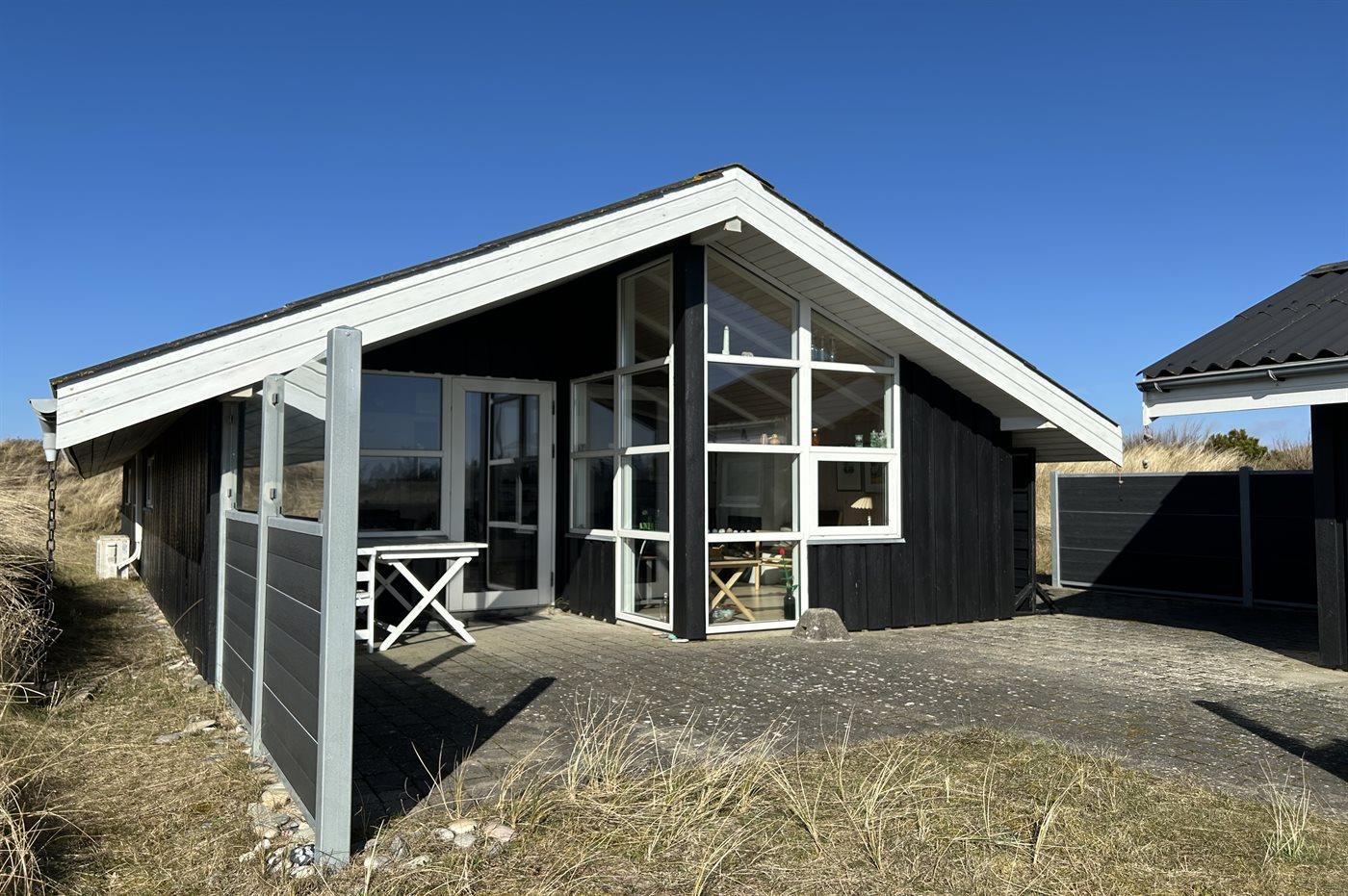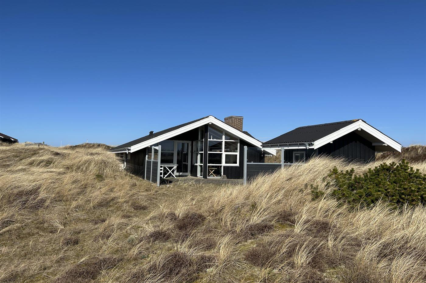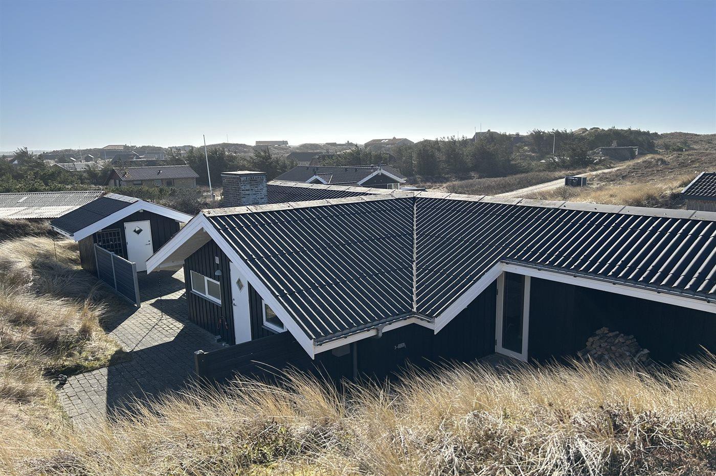 The holiday home is situated on a 1512 m² dune site. Situated 400 m from the sea. Nearest shop is 2000 m away. You will find a golf course in a distance of 1500 m. A terrace belong to the holiday home. Furthermore the house has a covered terrace. Parking place by the holiday home.