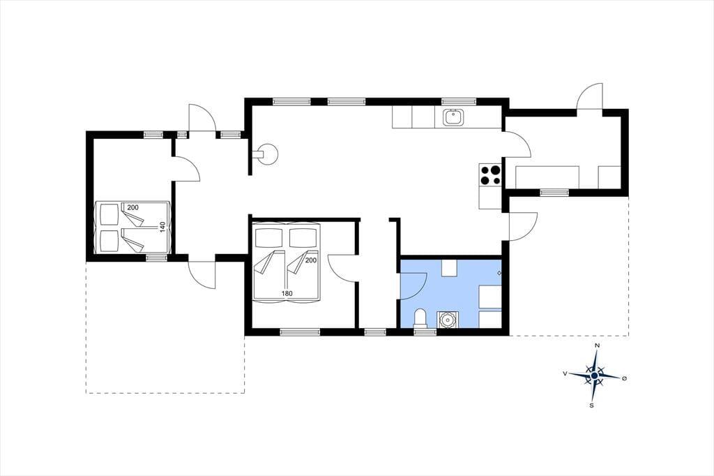 Willkommen in deinem Ferienhaus: Herzlich willkommen: Tritt ein in den hellen Eingangsbereich, von dem du Zugang sowohl zum Wohnzimmer als auch zu den Zimmern hast. Die moderne Küche ist offen mit dem Essbereich und dem Wohnzimmer verbunden, von wo aus man auf die Terrassen und in den umliegenden Garten gelangt. Es gibt zwei Schlafzimmer mit jeweils zwei Schlafplätzen sowie ein Badezimmer mit Dusche und Fußbodenheizung. Das Haus wird über eine Luft-zu-Luft-Wärmepumpe beheizt, oder du kannst den Kamin an kalten Abenden anheizen, um die perfekte Ferienhausatmosphäre zu schaffen.