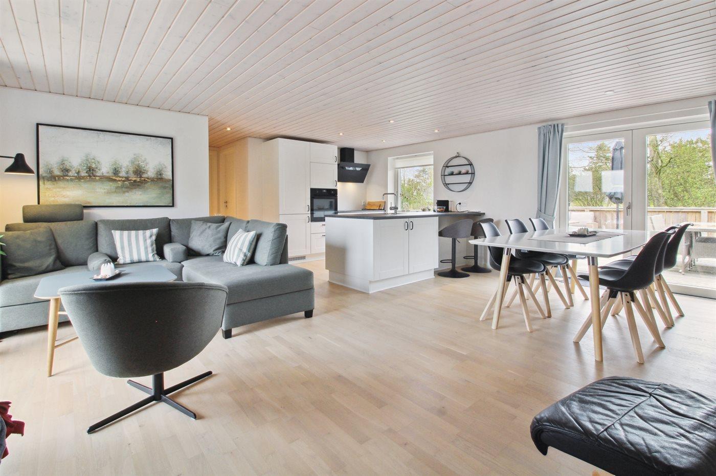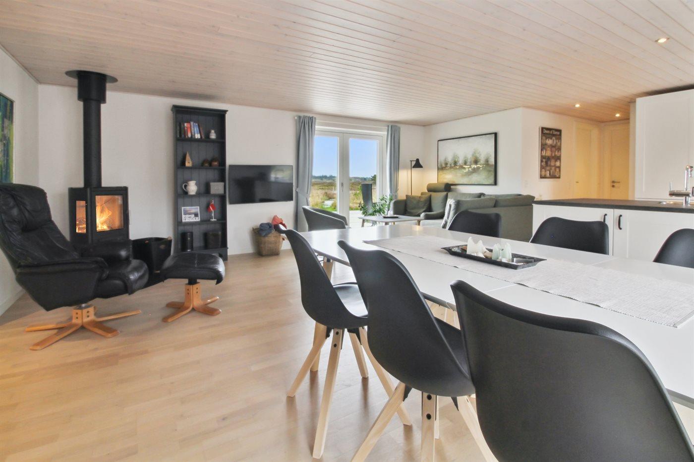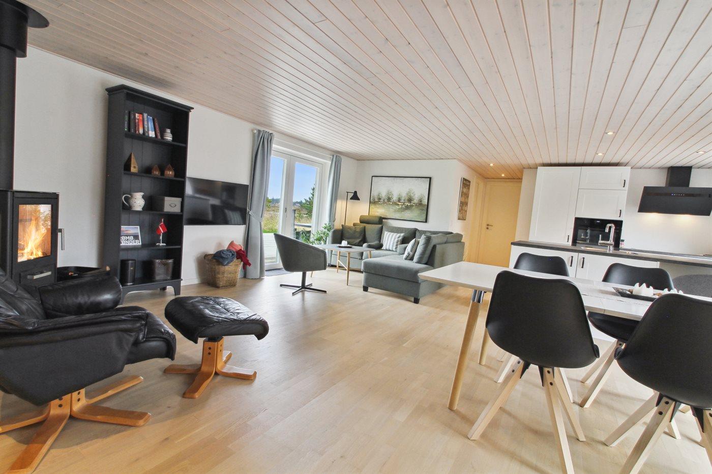Holiday home suitable for 6 persons as well as 1 child up to 3 years. The holiday home is 105 m² and is build in 1971. In 2022 the holiday home was renovated. You can bring along 1 pet. The holiday home is equipped with 1 energy-saving air-to-air heat pump. Floor heating in the hall. The holiday home has washing machine. Freezer capacity of 80 litres. Further more there is 1 wood-burning stove. For the youngest ones there is 1 high chair.