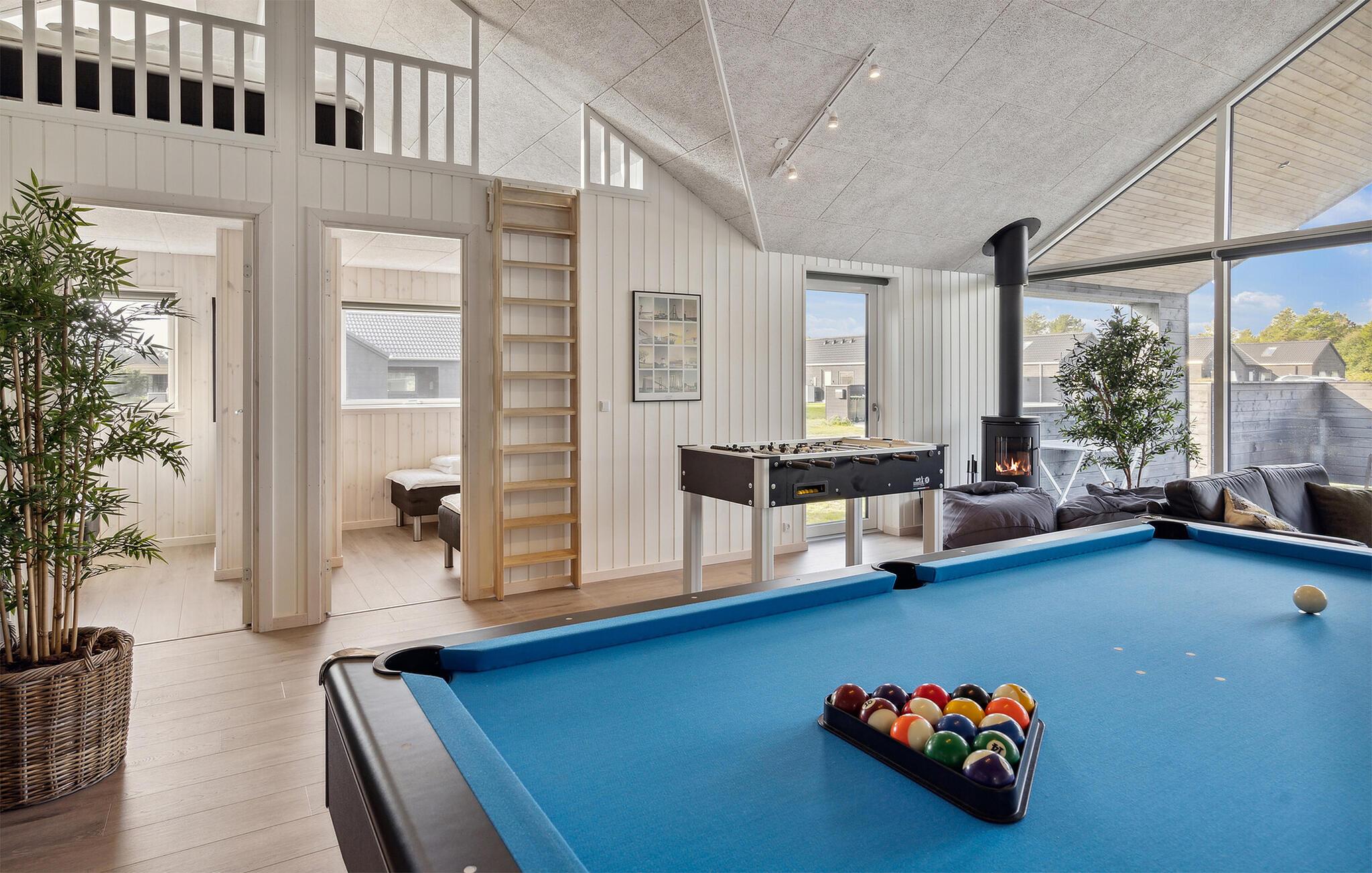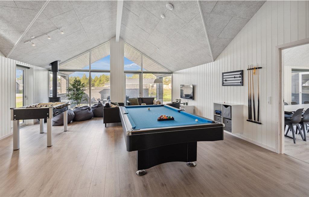 Freuen Sie sich auf Ihren Urlaub in diesem tollen Ferienhaus, denn hier werden Kinderträume wahr und die Familienzeit zum Genuss. Das sehr geräumige Haus bietet sich für Großfamilie oder mehrere befreundete Familien an, die zusammen verreisen möchten. Sie brauchen das Haus fast nicht zu verlassen, denn hier wurde an alles gedacht. Zur Freude aller gibt es einen Swimmingpool mit Rutsche, wo Sie viele Stunden Badespaß erleben können. Während die Kinder plantsche, können Sie Ihren Alltagsstress in der Sauna ausschwitzen. Entspannen können Sie sich anschließend im schönen Wohnraum, wo Sie Ihre Beine hochlegen oder in der Küche leckere Mahlzeiten für die hungrige Familie kochen können. Auch der große Aktivitätsraum, mit Bar und Sofabereich, lädt zu unterhaltsamen Stunden beim Dart, Billard, Tischfußball und Tischtennis spielen ein.