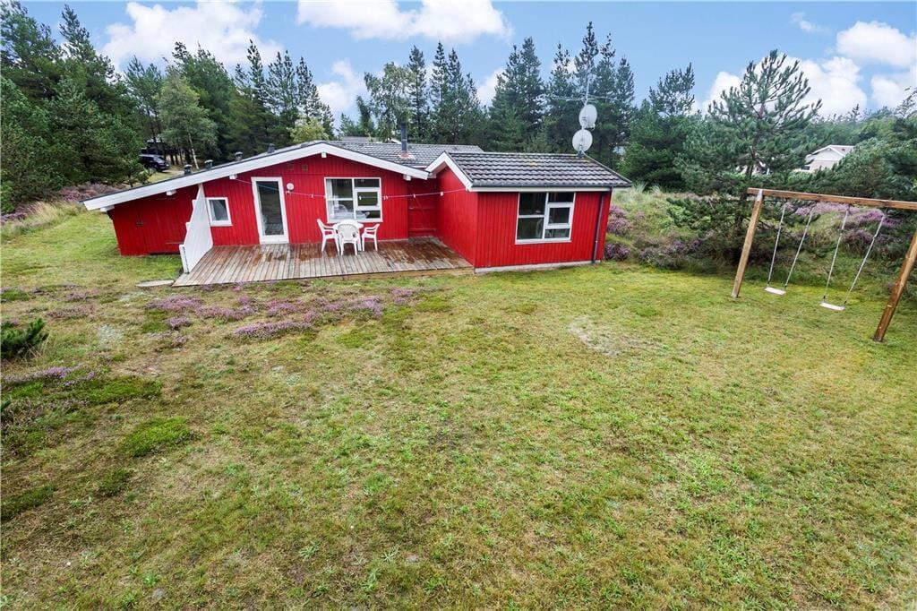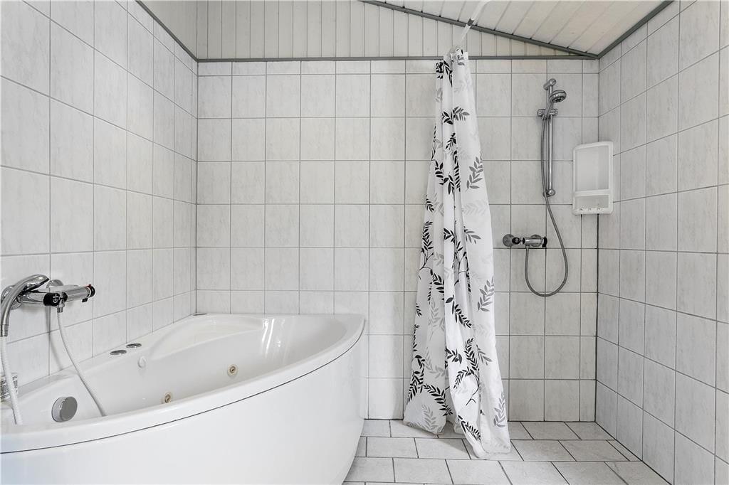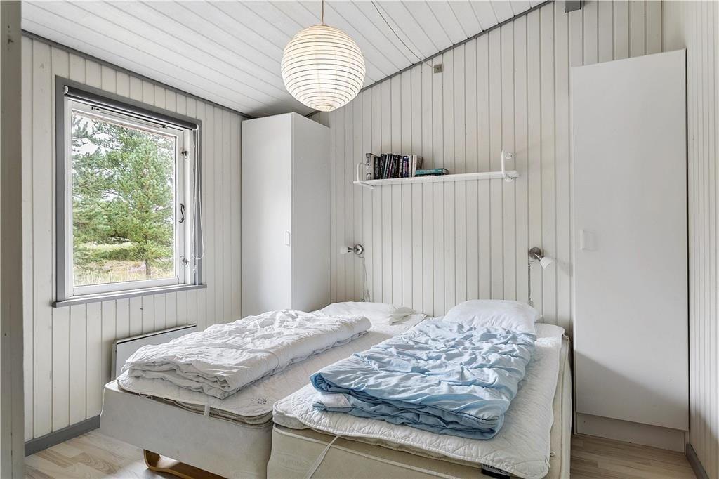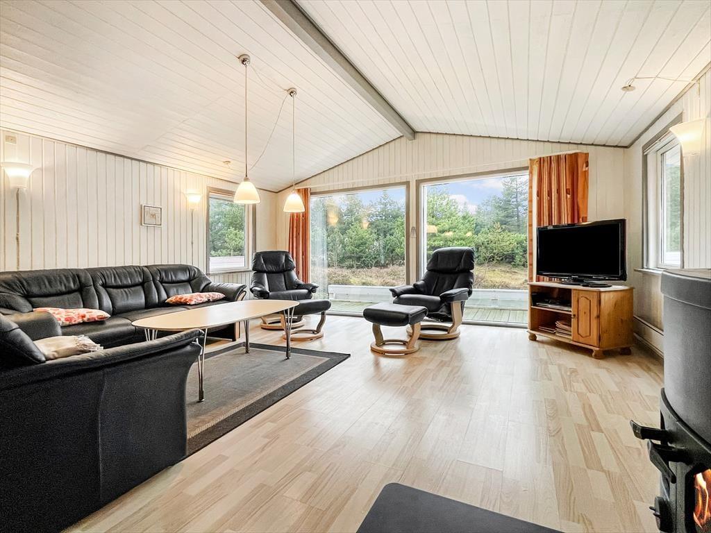 Wenn du es dir drinnen im Sommerhaus gemütlich machst, hast du Aussicht auf violettes Heidekraut und grüne Kiefern – nicht zuletzt vom Wohnbereich aus, wo große Fenster den Blick auf die schöne Natur freigeben und das Sonnenlicht hineinlassen. Ein Brennofen sorgt für Gemütlichkeit und bei kühlem Wetter steht dir auch eine Wärmepumpe zur Verfügung. In den Aufenthaltsbereich ist eine schöne Küche integriert, sodass du auch beim Kochen ein Teil der Urlaubsgemeinschaft sein kannst. Im Inneren des Ferienhauses stehen dir ganze 125 m² Wohnfläche zur Verfügung, verteilt auf Wohnbereich, vier gute Schlafzimmer und zwei Badezimmer, von denen eines mit einer Sauna und einem Whirlpool für zwei Personen ausgestattet ist.
