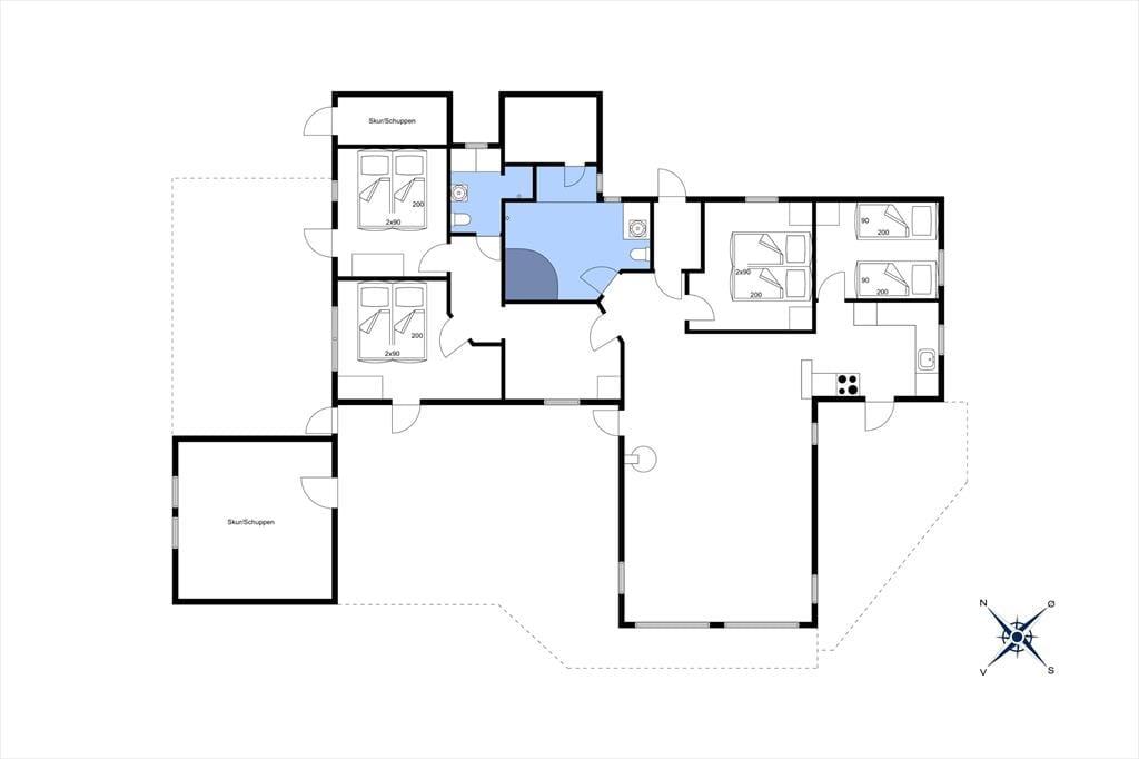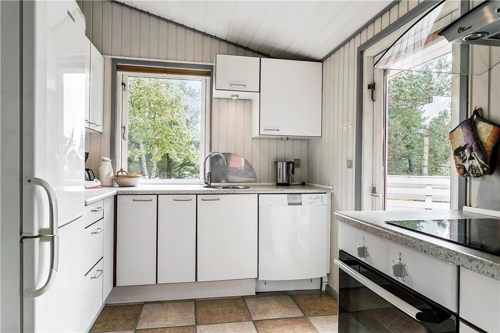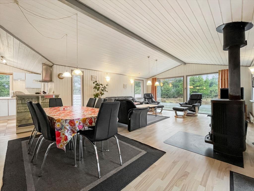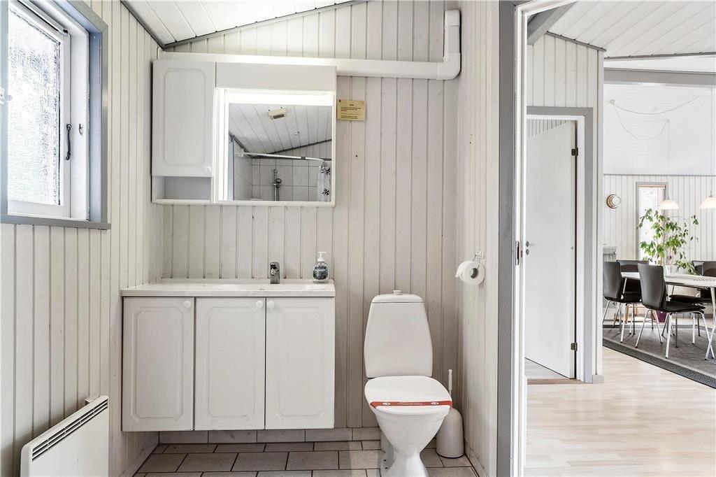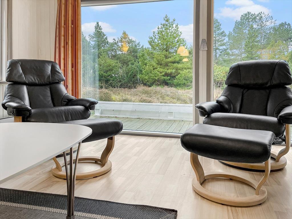 Wenn du es dir drinnen im Sommerhaus gemütlich machst, hast du Aussicht auf violettes Heidekraut und grüne Kiefern – nicht zuletzt vom Wohnbereich aus, wo große Fenster den Blick auf die schöne Natur freigeben und das Sonnenlicht hineinlassen. Ein Brennofen sorgt für Gemütlichkeit und bei kühlem Wetter steht dir auch eine Wärmepumpe zur Verfügung. In den Aufenthaltsbereich ist eine schöne Küche integriert, sodass du auch beim Kochen ein Teil der Urlaubsgemeinschaft sein kannst. Im Inneren des Ferienhauses stehen dir ganze 125 m² Wohnfläche zur Verfügung, verteilt auf Wohnbereich, vier gute Schlafzimmer und zwei Badezimmer, von denen eines mit einer Sauna und einem Whirlpool für zwei Personen ausgestattet ist.