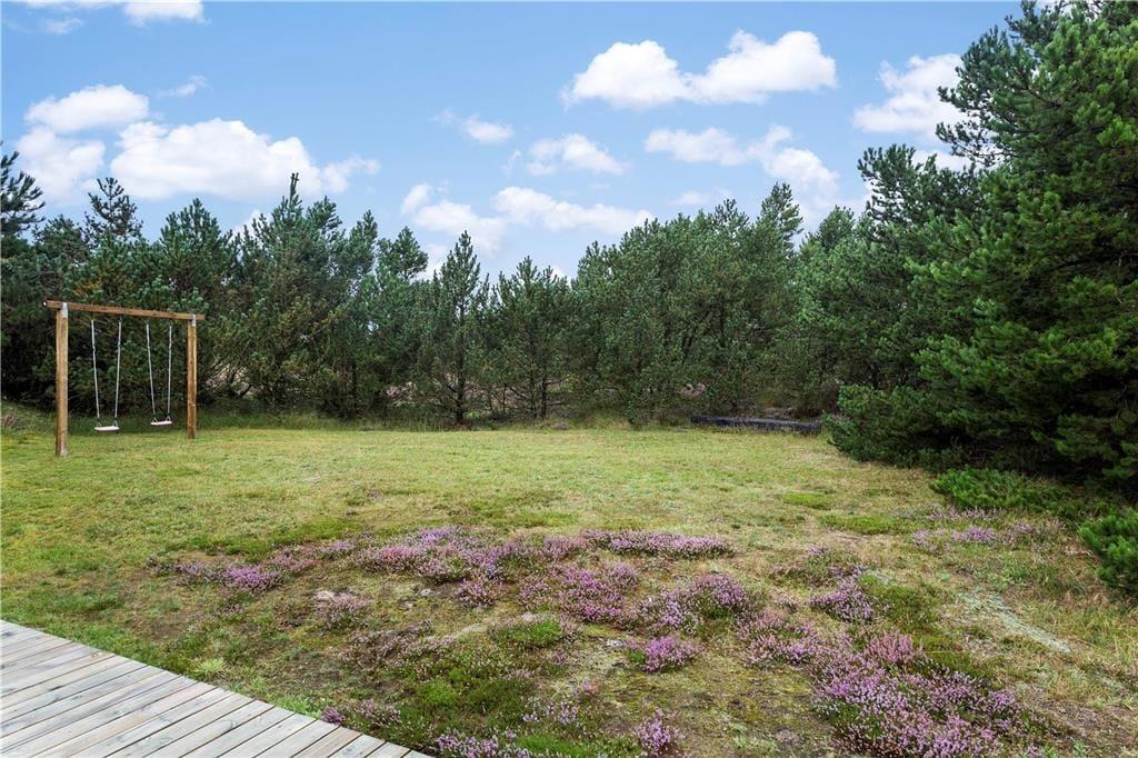 Das Ferienhaus ist von drei Terrassenbereichen umgeben, sodass du immer einen sonnigen Platz zum Entspannen finden kannst. Eine der Terrassen ist komplett umzäunt, was Hundebesitzer sicherlich zu schätzen wissen. Auf dem 2640 m² großen Grundstück gibt es einen Rasen mit Sandkasten und Schaukeln zum Spielen und Toben, und die natürliche Vegetation rundherum darf ungehindert wachsen.