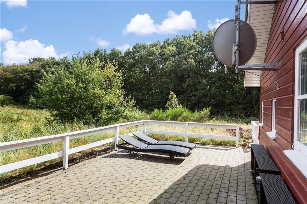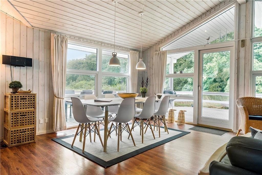 Das Sommerhaus liegt im Grunde am Ende einer geschlossenen Straße, ganz in der Nähe des Wattenmeeres, das du auch von der Terrasse aus sehen kannst. Das Wattenmeer steht auf der Liste des UNESCO-Weltnaturerbes und ist auch Namensgeber des örtlichen Nationalparks, der auch Dänemarks größter ist. Alles in allem ist die natürliche Umgebung hier auf Rømø besonders schön, wo du in den Plantagen auf Erkundungstour gehen und in der mit Heidekraut bewachsenen Landschaft wandern kannst. Wenn du schwimmen gehen möchtest, empfiehlt es sich, nach Lakolk Strand zu fahren, einem breiten Sandstrand an der Westseite der Insel.