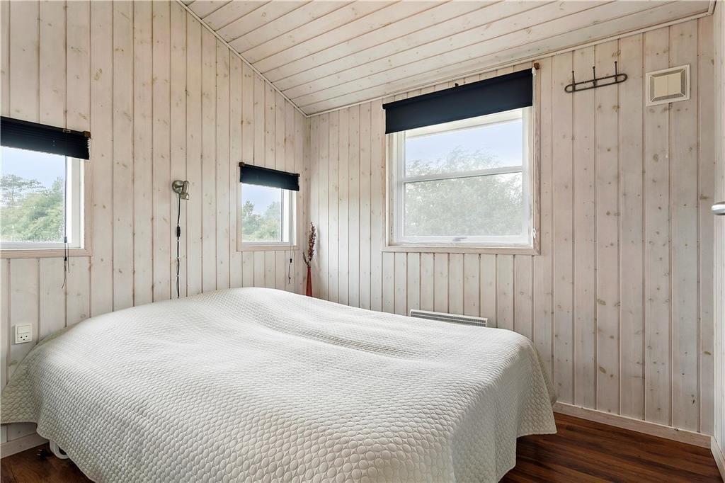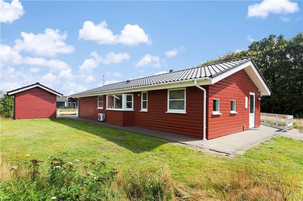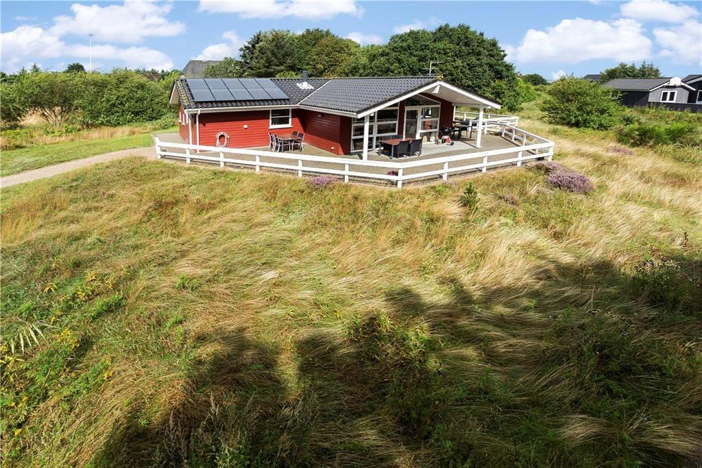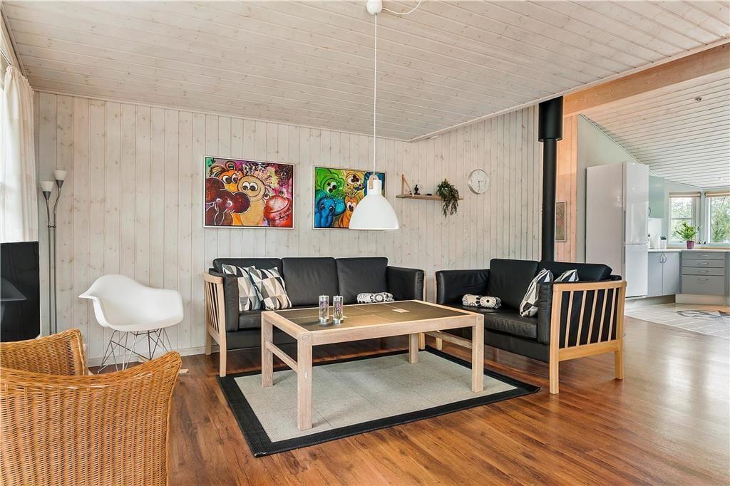 Das 2004 erbaute und gut ausgestattete Sommerhaus ist für acht Urlauber optimal aufgeteilt. Vier Schlafzimmer und zwei Badezimmer sind gleichmäßig verteilt an jedem Ende. Ein Badezimmer ist zudem luxuriös mit Whirlpool und Sauna ausgestattet, sodass du dich mit kompletter Wellness-Entspannung verwöhnen kannst. Ein praktischer Hauswirtschaftsraum gehört ebenfalls zum Grundriss, und natürlich gibt es ein Wohnzimmer, das mit der Küche offen verbunden ist. Dieses ist lichtdurchflutet, und es gibt einen Holzofen, der zur angenehmen Atmosphäre beiträgt. Wenn die Stimmung eher dem Spielen als dem Entspannen entspricht, kannst du das gesellige Beisammensein in den Anbau verlegen, wo du Tischfußball spielen kannst.