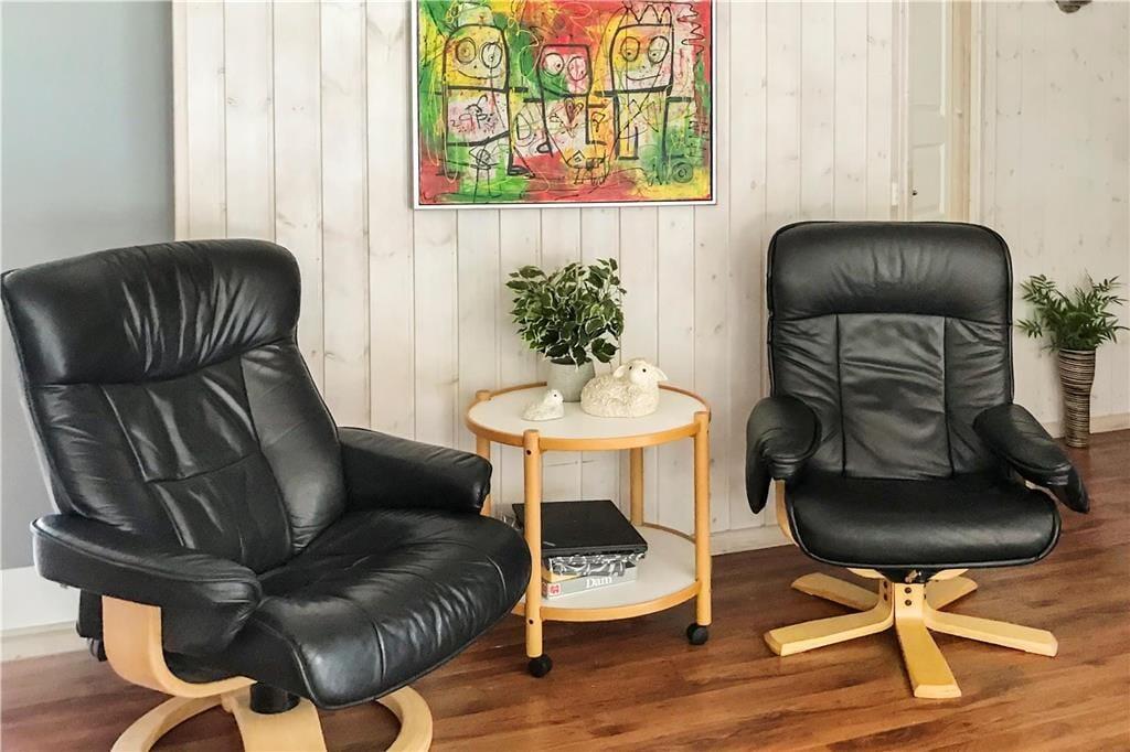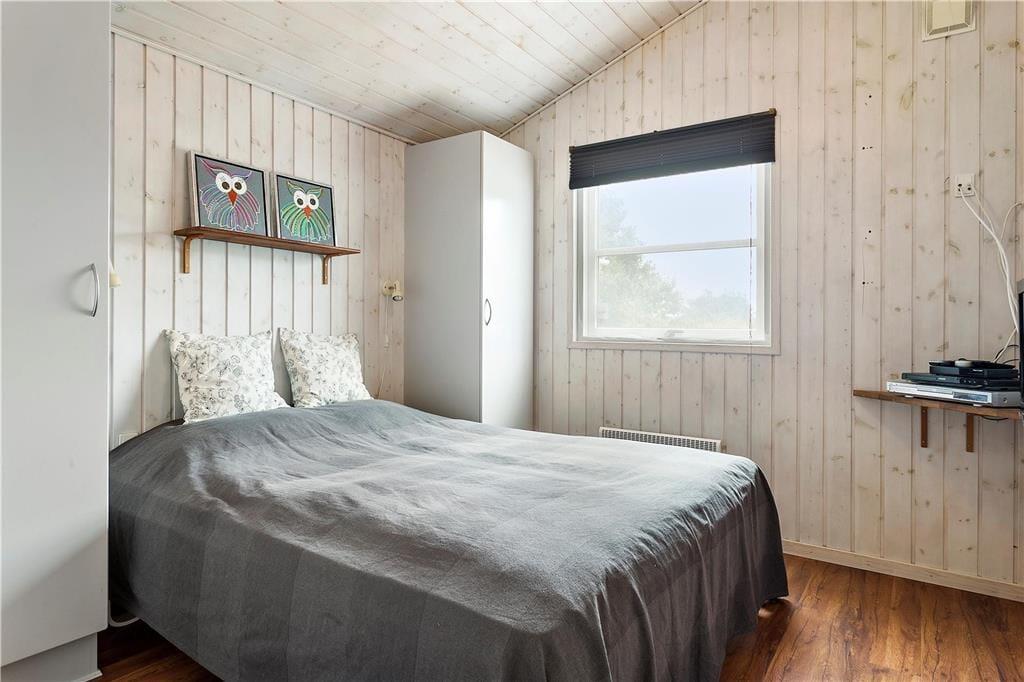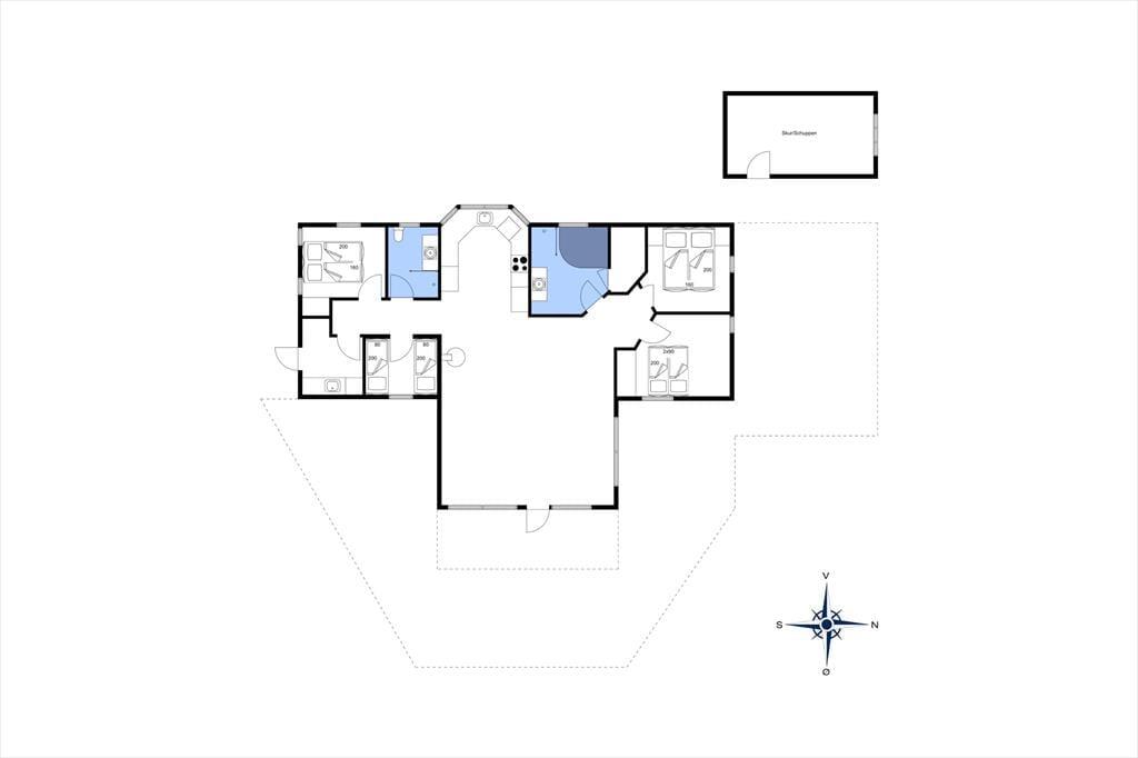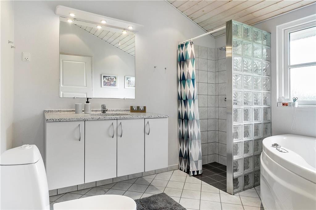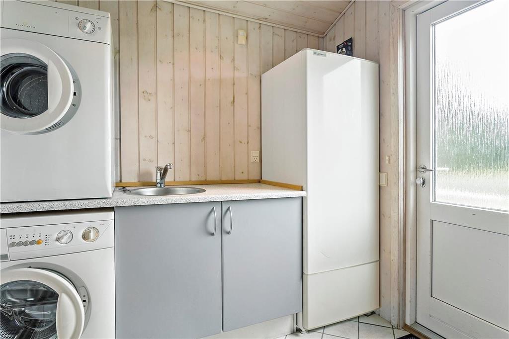 Das 2004 erbaute und gut ausgestattete Sommerhaus ist für acht Urlauber optimal aufgeteilt. Vier Schlafzimmer und zwei Badezimmer sind gleichmäßig verteilt an jedem Ende. Ein Badezimmer ist zudem luxuriös mit Whirlpool und Sauna ausgestattet, sodass du dich mit kompletter Wellness-Entspannung verwöhnen kannst. Ein praktischer Hauswirtschaftsraum gehört ebenfalls zum Grundriss, und natürlich gibt es ein Wohnzimmer, das mit der Küche offen verbunden ist. Dieses ist lichtdurchflutet, und es gibt einen Holzofen, der zur angenehmen Atmosphäre beiträgt. Wenn die Stimmung eher dem Spielen als dem Entspannen entspricht, kannst du das gesellige Beisammensein in den Anbau verlegen, wo du Tischfußball spielen kannst.