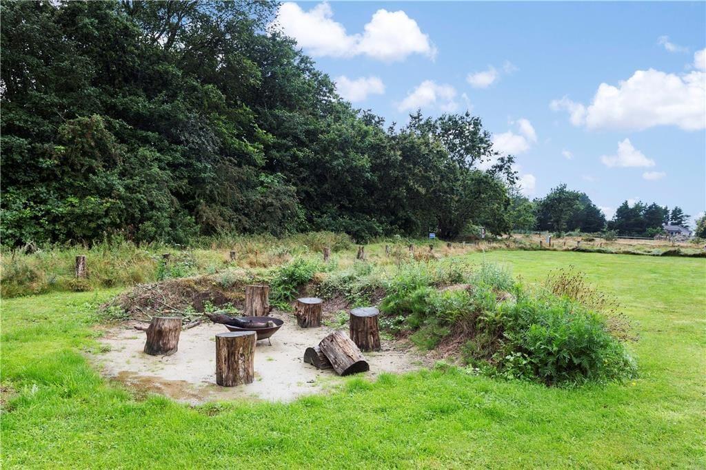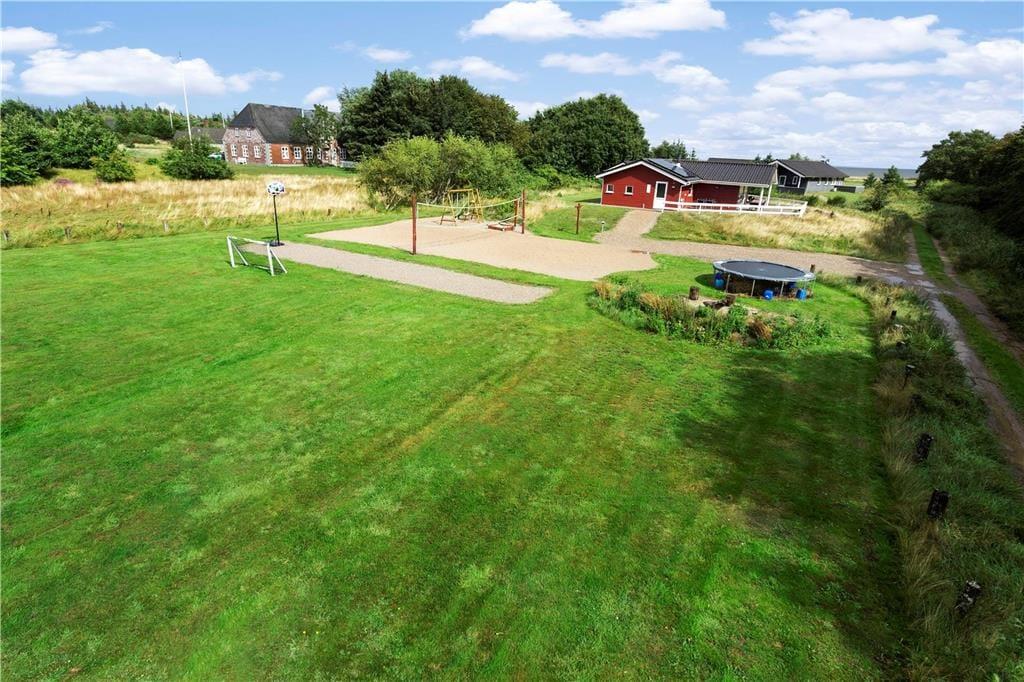 Auch im Freien gibt es viele Spiel- und Beschäftigungsmöglichkeiten. Hier gibt es unter anderem ein Trampolin, Schaukeln und einen Sandkasten für die jüngsten Feriengäste sowie ein Fußballfeld mit Toren und einen Beachvolleyballplatz für die ganze Familie. Die Lagerfeuerstelle ist ein wunderbarer Ort, um sich zu versammeln, wenn der Tag zu Ende geht und die Dunkelheit sich über Rømø senkt. Das Leben im Freien kann auch auf der großen und teilweise überdachten Terrasse verbracht werden, wo du die malerische Aussicht und die friedliche Umgebung genießen kannst.