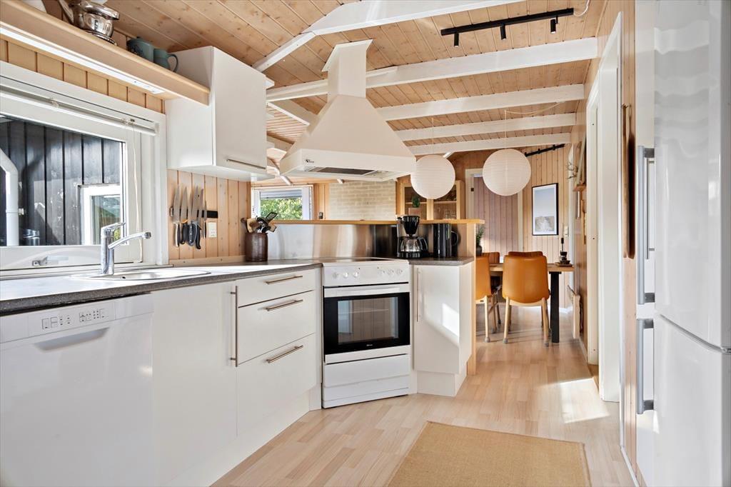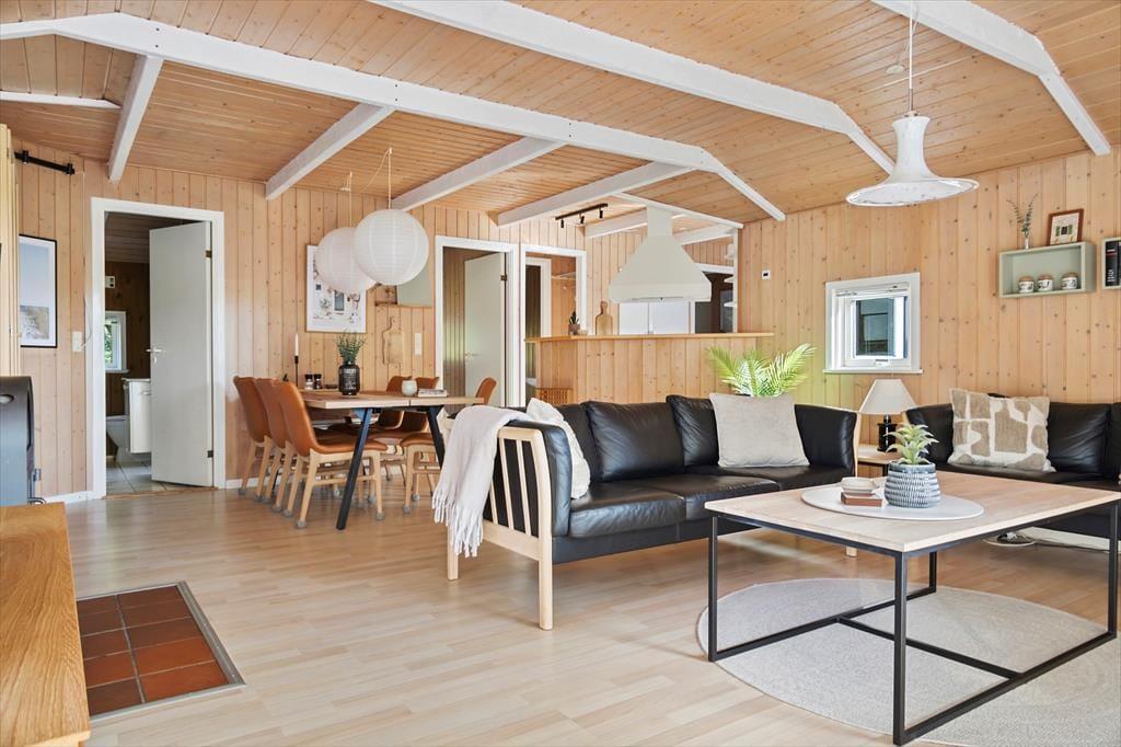 Das Ferienhaus empfängt dich mit einer hellen und einladenden Atmosphäre, in der die weißen sichtbaren Deckenbalken den Räumen einen besonderen Ausdruck und eine einzigartige Ausstrahlung verleihen. Die Einrichtung ist geschmackvoll und individuell, sodass du dich schnell ganz wie zu Hause fühlst. Im Wohnzimmer sorgt das gemütliche Ambiente dafür, dass gemeinsame Stunden mit der Familie noch schöner werden – besonders, wenn der Kaminofen an kühleren Abenden sein leises Knistern verbreitet. Außerdem gibt es zwei Badezimmer, von denen eines mit Whirlpool und Sauna ausgestattet ist – perfekt, um nach einem Strandspaziergang oder einem erlebnisreichen Tag in der Natur auf Rømø zu entspannen.