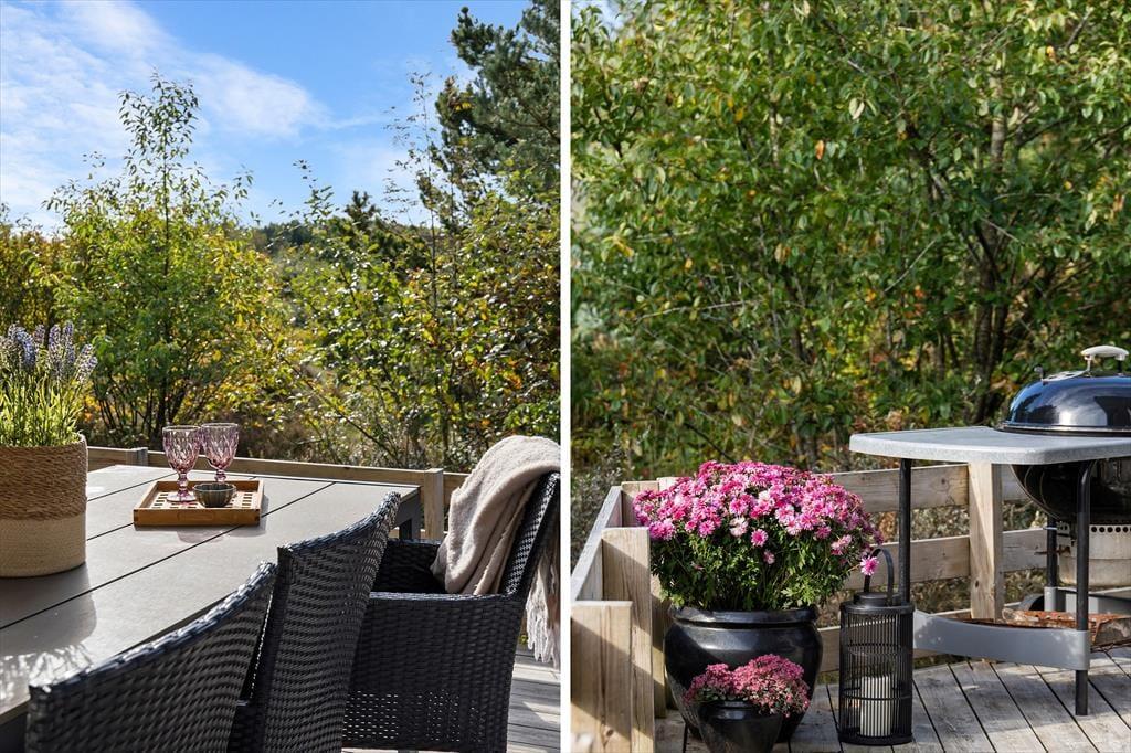 Der Garten ist von dichter Vegetation umgeben, sodass du hier ungestört Ruhe und Frieden genießen kannst, während du auf der Terrasse sitzt und dem Vogelgezwitscher in den Baumwipfeln lauschst. Die Terrasse ist groß und teilweise überdacht, sodass du immer einen passenden Platz findest – egal, ob du die Wärme der Sonne bevorzugst oder lieber einen schattigen Rückzugsort. Rund um das Haus laden kleine, gemütliche Sitzecken dazu ein, mit einer Tasse Kaffee, einem guten Buch oder einfach dem Rauschen des Windes im Geäst zu verweilen.