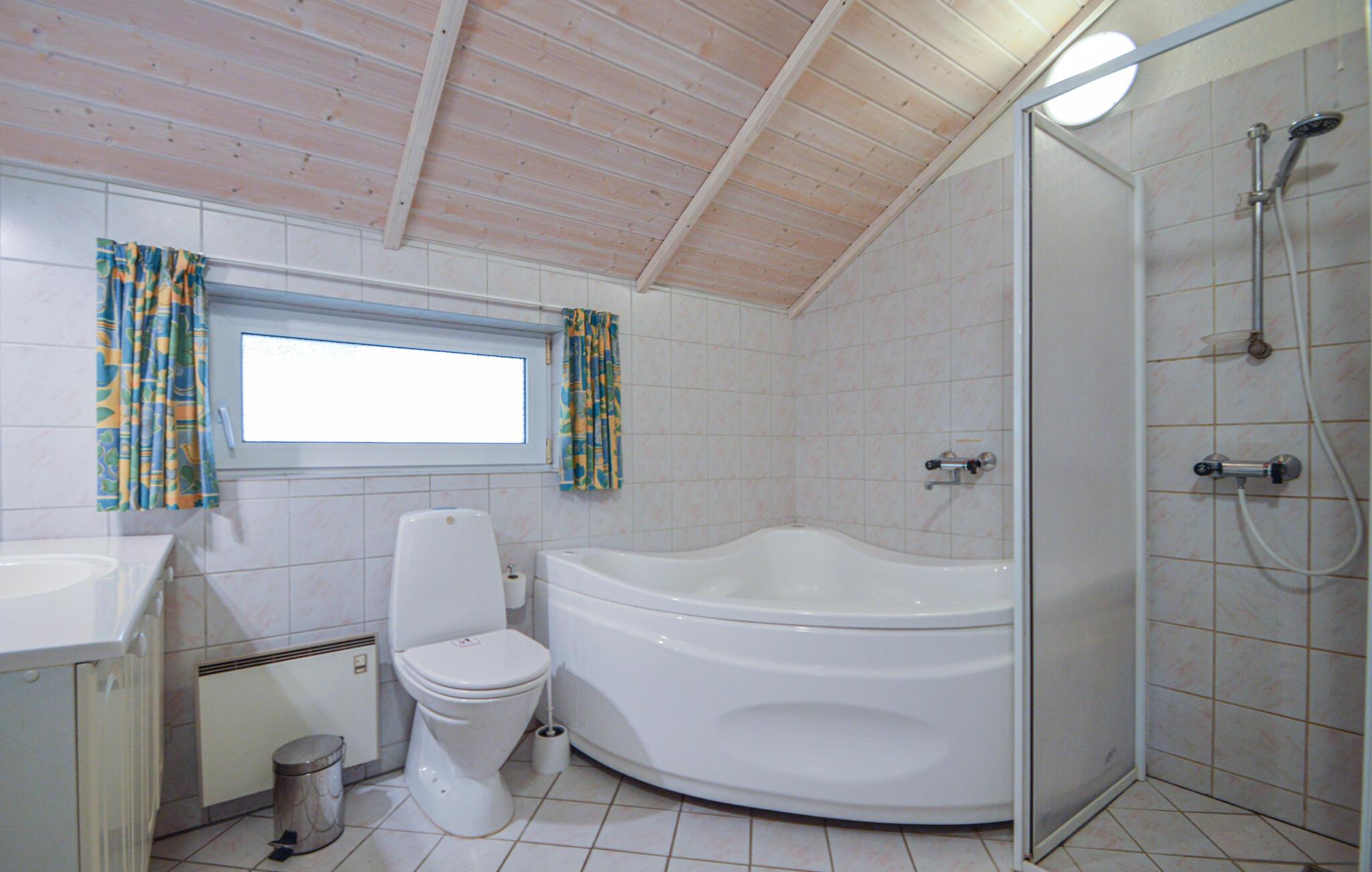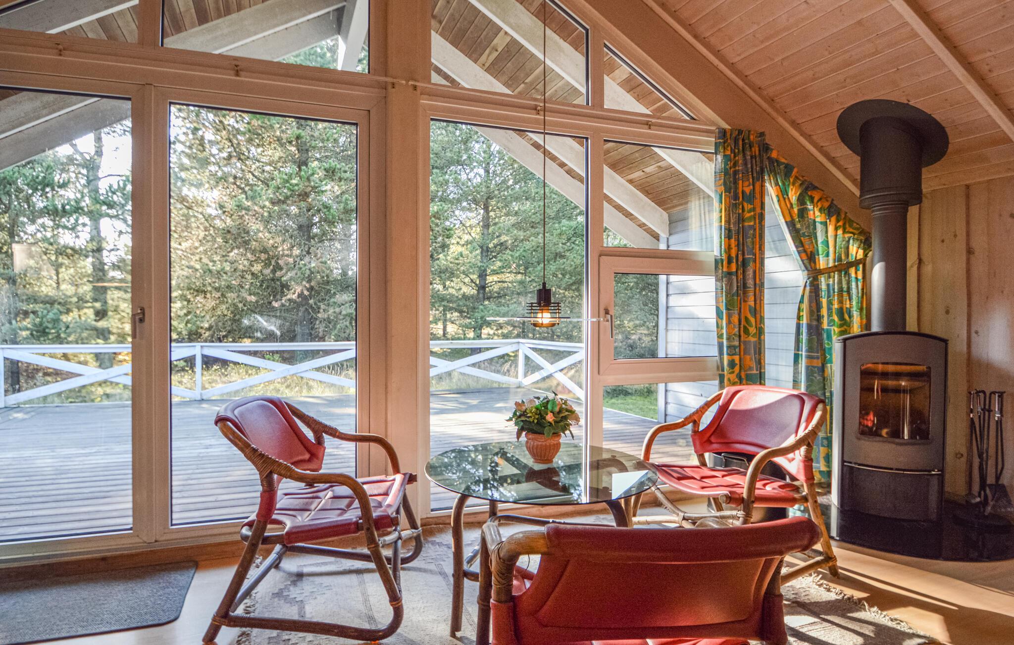 Im Innenraum ist das Haus heimelig eingerichtet, mit Jacuzzi, Sauna und einer modern ausgerüsteten Küche, die mit dem gemütlichen Wohnzimmer kombiniert ist, so dass Sie nichts verpassen, auch wenn Sie das Essen zubereiten. Auf der großen, teilweise überdachten Terrasse gegen Süden, können Sie wunderschöne Abende verbringen, sich entspannen und das gute Wetter genießen.