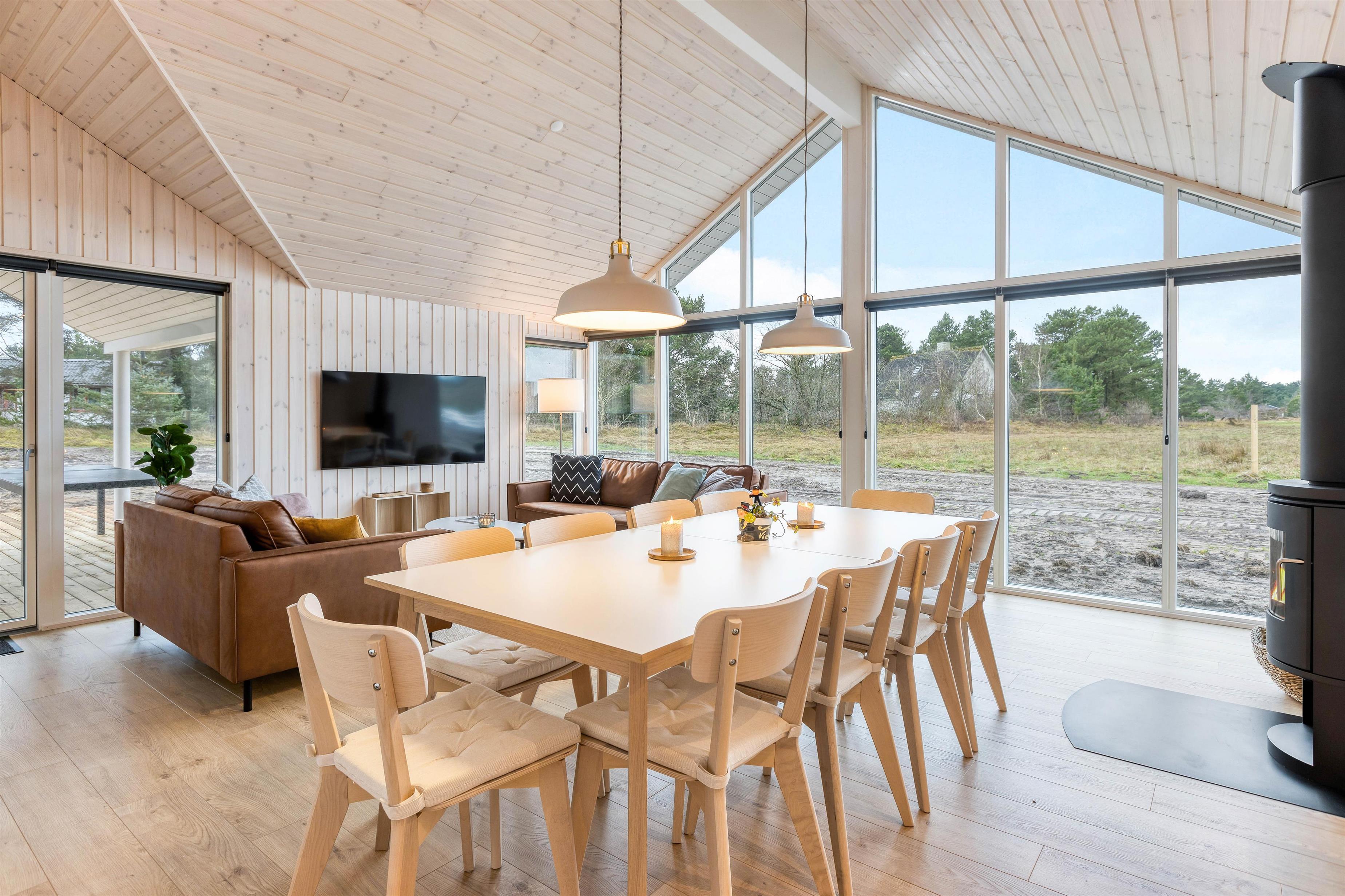 You'll feel at home the moment you step inside. The bright, open-plan living and dining area has been thoughtfully furnished with attention to detail, exuding typical Scandinavian charm. Here you can spend quality time together by the crackling fire, perhaps enjoying a board game or two.