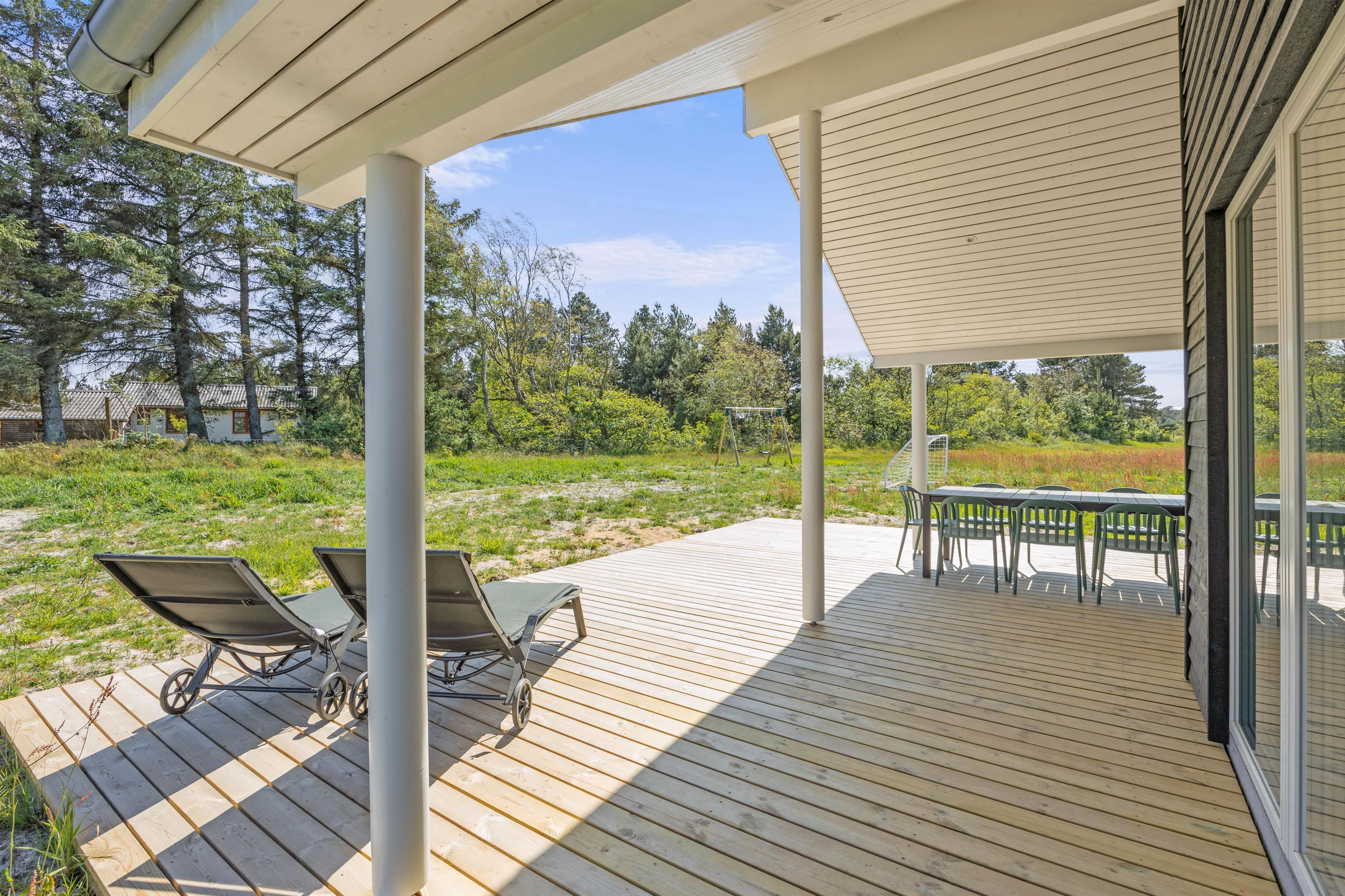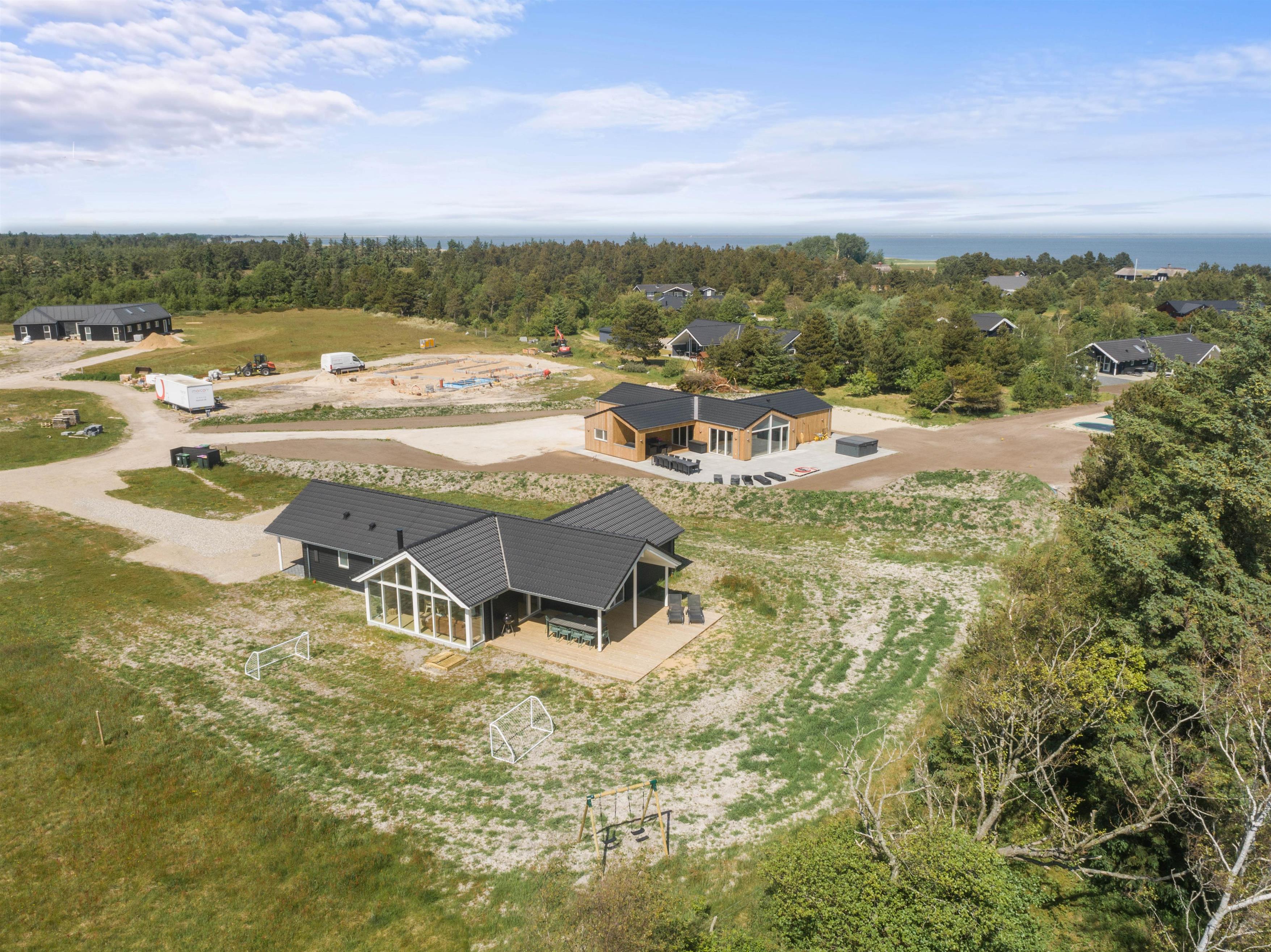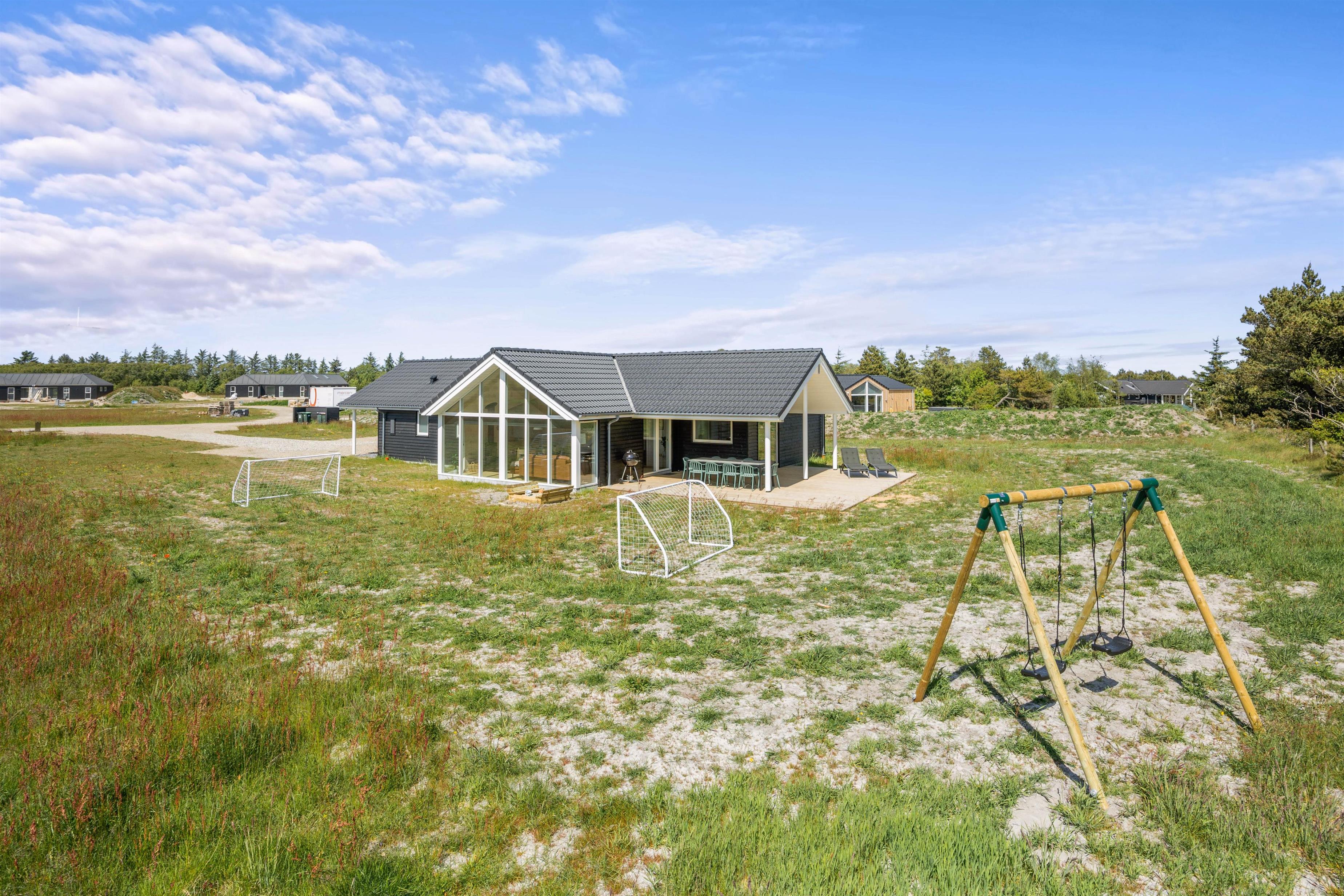 The outdoor space has been thoughtfully designed with a partially covered terrace featuring comfortable garden furniture. Enjoy freshly brewed coffee or settle down with a good book while children explore the grounds. There's also an electric car charging point at the holiday home.