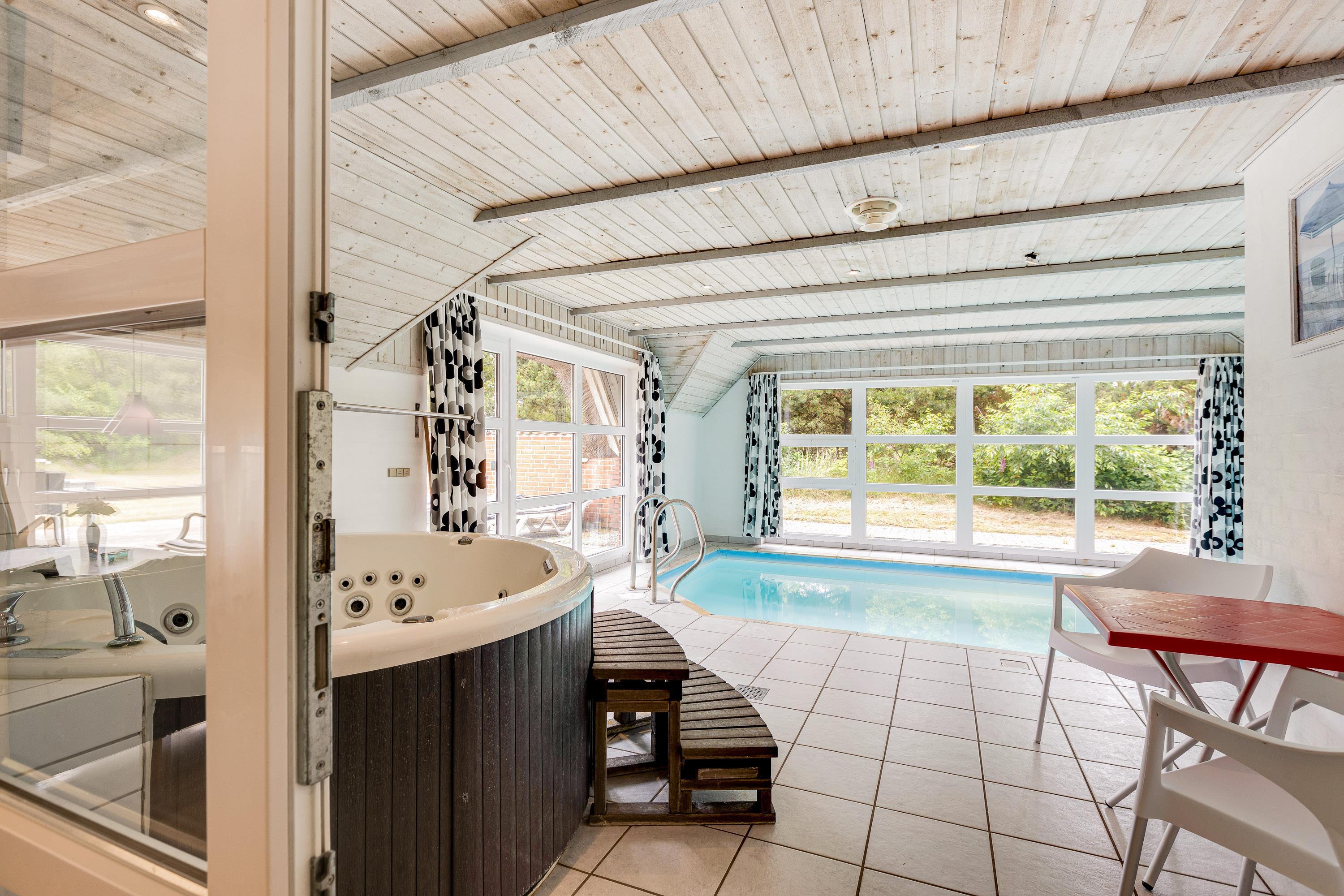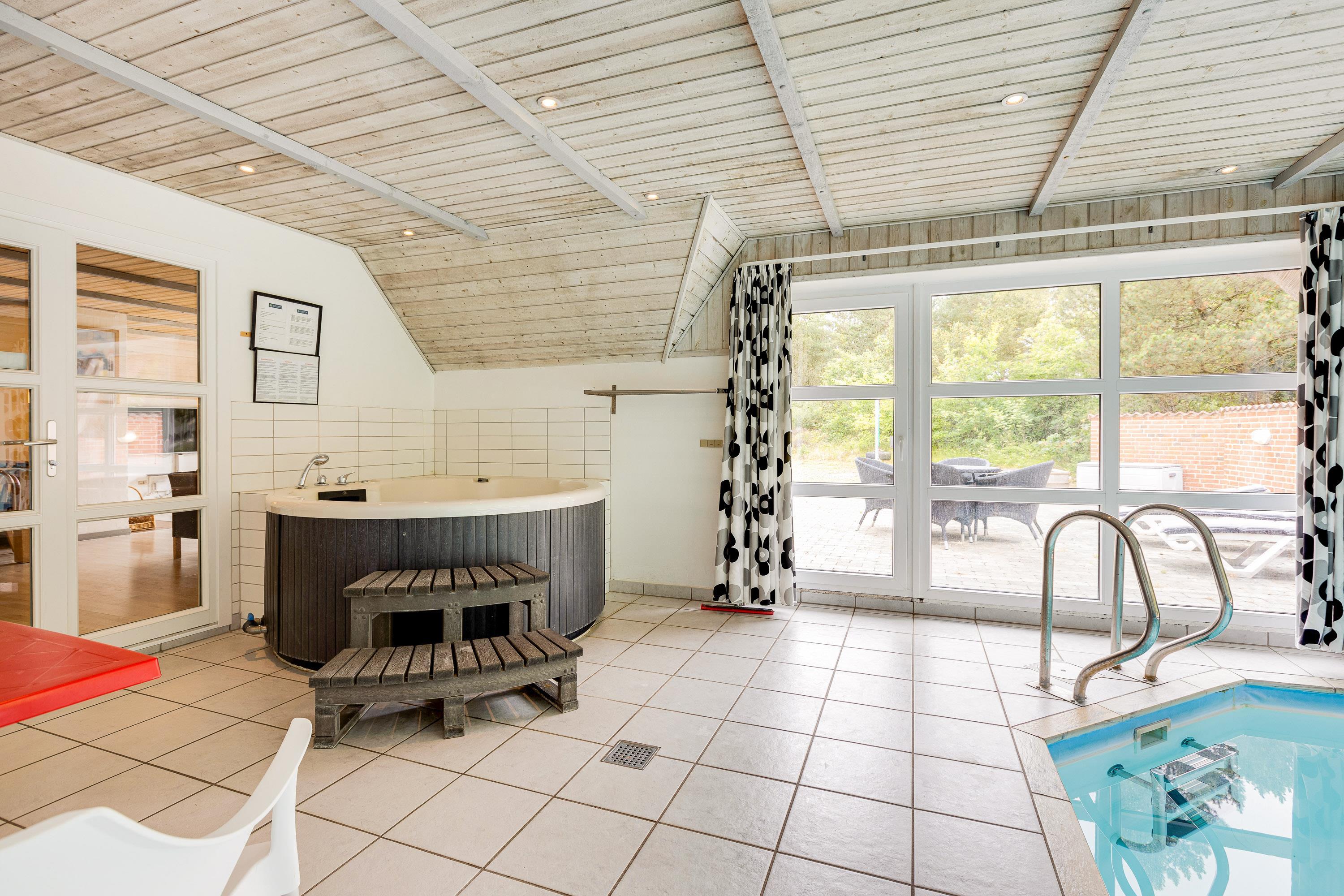 The highlight of this summer house is undoubtedly the pool area, perfect for both fun and relaxation. Children can enjoy the swimming pool while adults unwind in the hot tub. The private sauna is ideal for warming up after a blustery day.