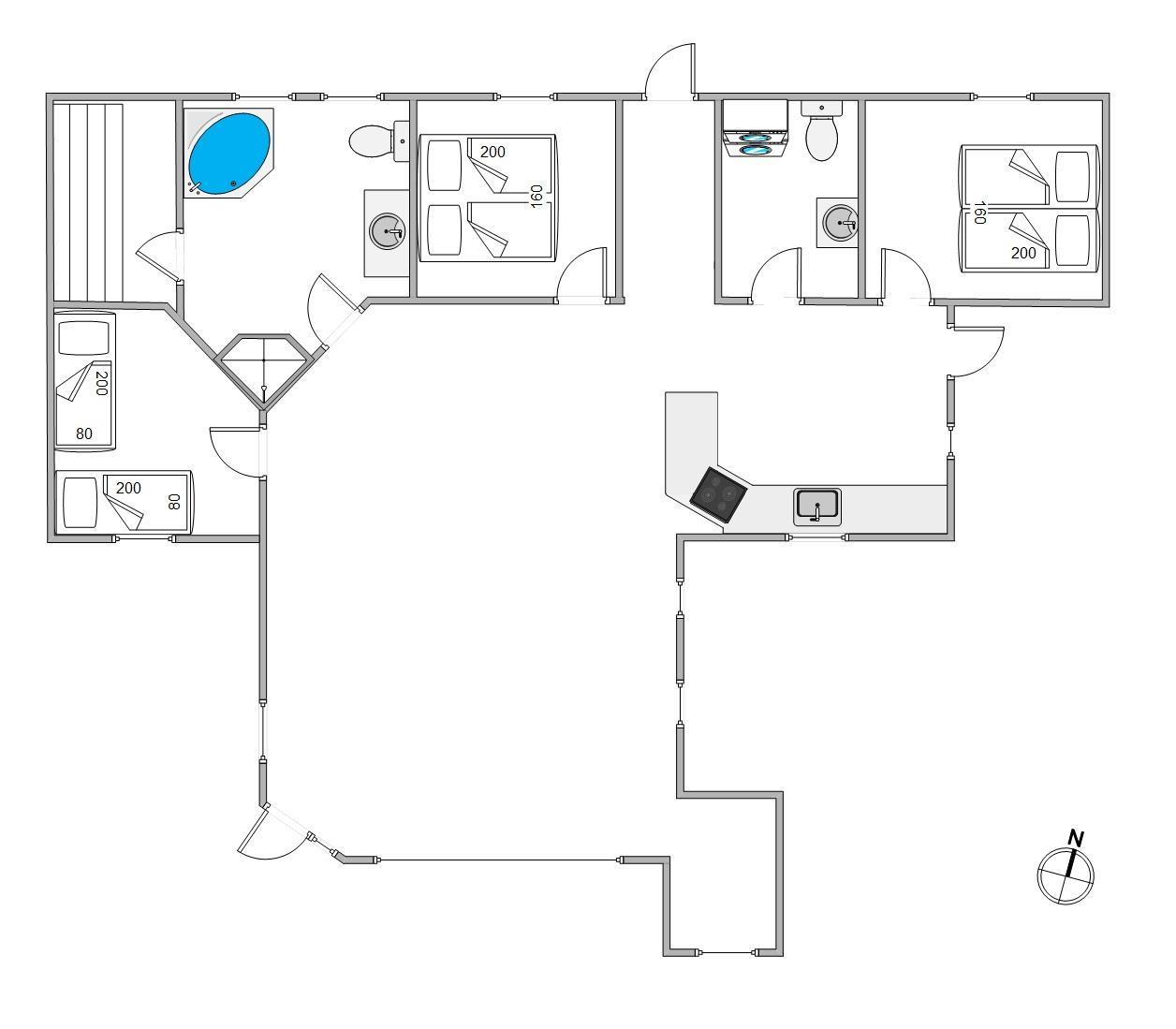 The holiday home in Kromose accommodates up to 6 people and is ideal for families or a group of friends. Three bedrooms, one bathroom, and an additional guest toilet ensure plenty of privacy, while the central living area with integrated kitchen and dining space provides room for sociable evenings together.