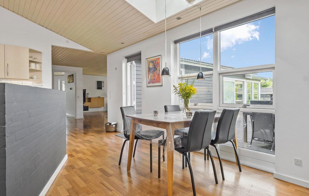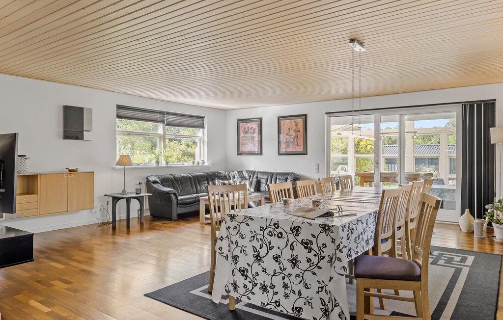 Dieses großzügige Ferienhaus mit Platz für eine große Familie bietet Ihnen alles, was Sie für einen entspannten Aufenthalt benötigen. Beginnen Sie Ihren Morgen mit einem Frühstück im hellen, modernen Essbereich, der direkt an die gut ausgestattete Küche anschließt. Besorgen Sie frische Zutaten und bereiten Sie gemeinsam köstliche Mahlzeiten zu. Der geräumige Wohnbereich lädt zu entspannten Stunden ein. Sollte das Wetter einmal nicht mitspielen, können Sie sich im Wintergarten mit einem spannenden Buch oder einer Partie Billard die Zeit vertreiben. Oder veranstalten Sie Tischfußball- oder Tischtennisturniere.