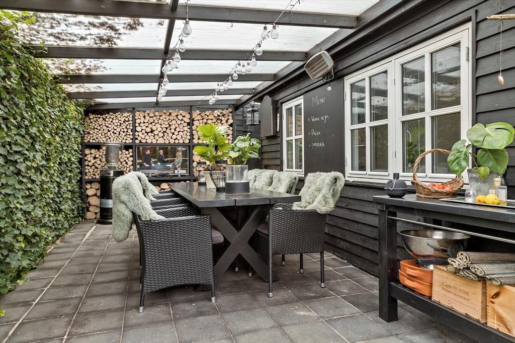 Das Ferienhaus ruht im ruhigen, sehr beliebten Ferienhausgebiet Kysing Strand - genauer gesagt, in einer Sackgasse. Lediglich 75 Meter trennen das angenehm ungestörte Grundstück vom Strand. Rund um das Haus erwarten Sie zahlreiche schöne Aufenthaltsplätze und gemütliche Eckchen, die mit Gartenmöbeln und Liegestühlen versehen sind. Während Ihre Kinder im Spielhaus spielen oder im Garten schaukeln, genießen Sie nach Herzenslust die Sonne und die frische Seeluft. Bei diesem Mietobjekt wurde großes Augenmerk auf das entspannte Leben unter freiem Himmel gelegt. Der schöne, offene Wintergarten verzaubert mit südländischem Flair, beinhaltet einen großen geräumigen Essplatz und sorgt mit einem eingebauten Fernseher und diversen TV-Kanälen für Unterhaltung und Abwechslung. Viele Ihrer Mahlzeiten werden Sie garantiert in der großen Außenküche zubereiten, in der ein Pizzaofen und ein großer Gasgrill zur Verfügung stehen. Die Köstlichkeiten servieren Sie im Anschluss im offenen Wintergarten. Die Außenküche umfasst einen Gaskocher, einen Kühlschrank, ein Waschbecken, einen Gasgrill und eine große Auswahl an Küchenutensilien. Ein Ferienhaus, das Ihnen lange in sehr guter Erinnerung bleiben wird und in das Sie sicherlich gerne Jahr für Jahr zurückkehren!