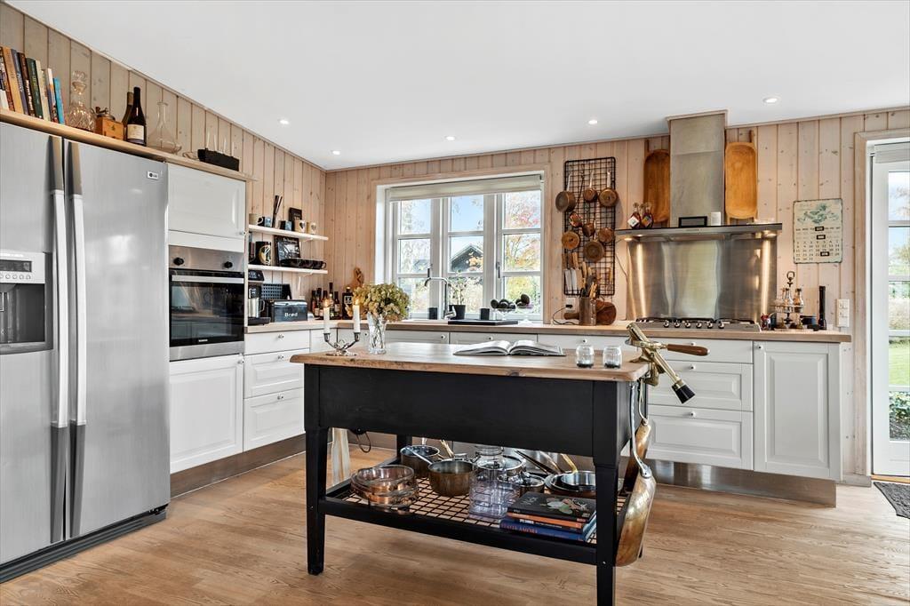 Wir freuen uns sehr, Ihnen dieses interessante Urlaubsdomizil am Kysing Strand vorstellen zu dürfen. Das Haus ist wohl durchdacht aufgeteilt und lädt mit seiner attraktiven Einrichtung, dem ansprechenden Wohnstil und dem südländischen Flair sowohl innen wie außen zu erholsamen Urlaubstagen im Familien- und Freundeskreis ein. Sobald Sie das Ferienhaus zum ersten Mal betreten, spüren Sie die Gemütlichkeit und das schöne Gefühl "angekommen" zu sein. Das Ferienhaus empfängt Sie mit vier Schlafzimmern, einem großen Küchenbereich, einem reizvollen Wohnraum, zwei Badezimmern und zwei Nebengebäuden. Die vier Schlafzimmer sind allesamt mit guten Qualitätsbetten und Schrankfläche ausgestattet. Zwei dieser Zimmer befinden in jeweils in einem Nebengebäude. Eines der Nebengebäude besticht mit einem eigenen Bad, das ein WC und eine Dusche umfasst. Das Herzstück des Hauses bildet der große Küchen- und Essbereich. Die Küche bietet Ihnen alle modernen Annehmlichkeiten, die Sie für die Zubereitung Ihrer Urlaubsmahlzeiten benötigen. Zum Kochen steht ein Gasherd zur Verfügung. Vom Küchen- und Essbereich aus gelangen Sie direkt auf die Terrasse und in den schön bewachsenen Garten. An die Küche schließt der Wohnraum mit einer gemütlichen Sofagruppe. In dieser werden Sie sich nach einem langen Strandtag gern niederlassen, angeregte Gespräche führen oder auch den ein oder anderen entspannten Filmabend genießen. Der große Fernseher empfängt dänische, deutsche, schwedische und norwegische Sender und ist mit Chromecast ausgestattet.