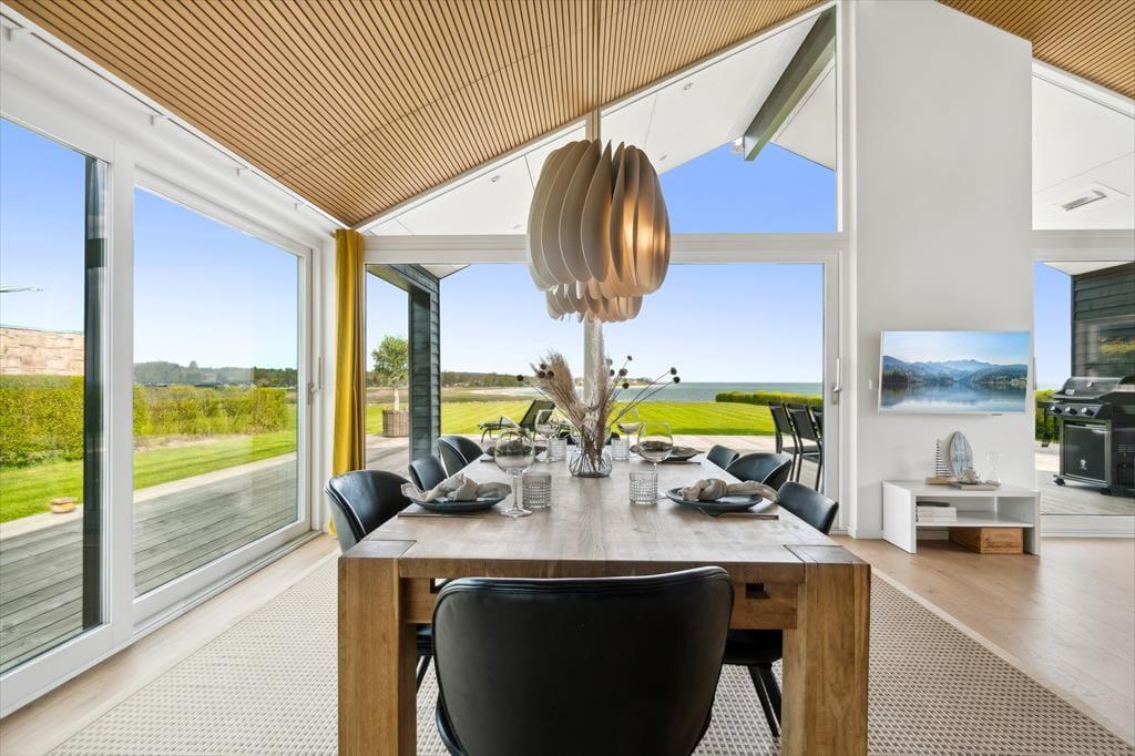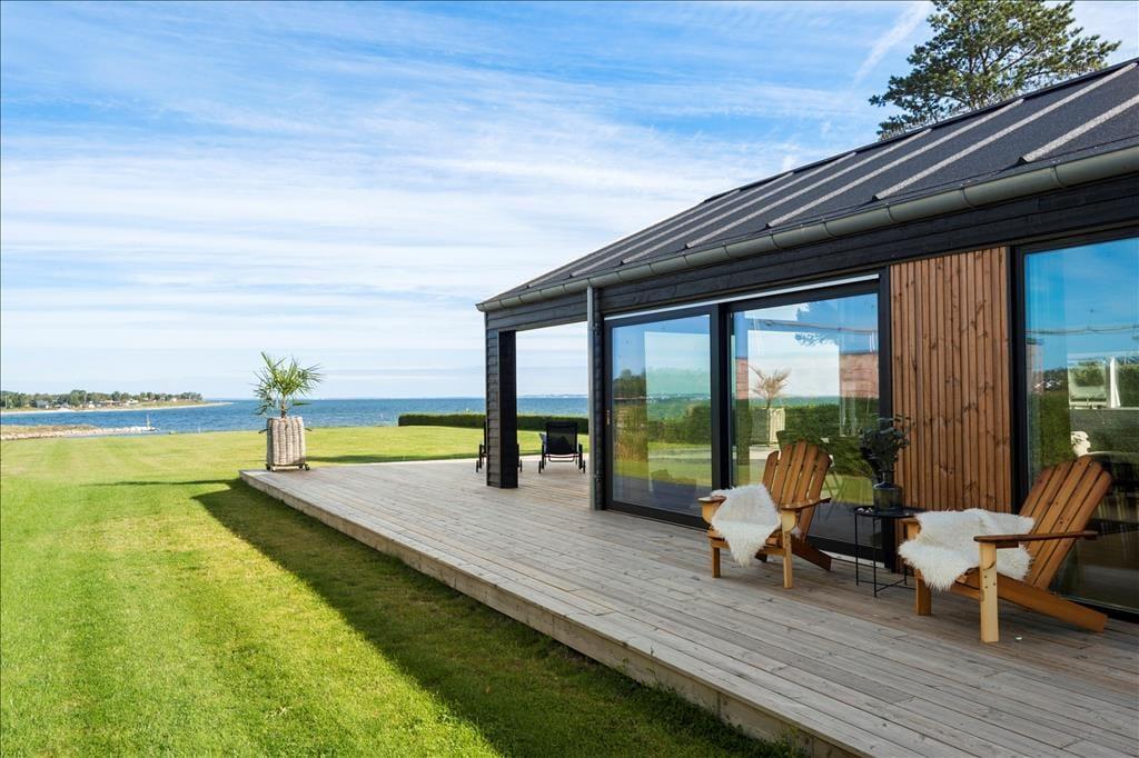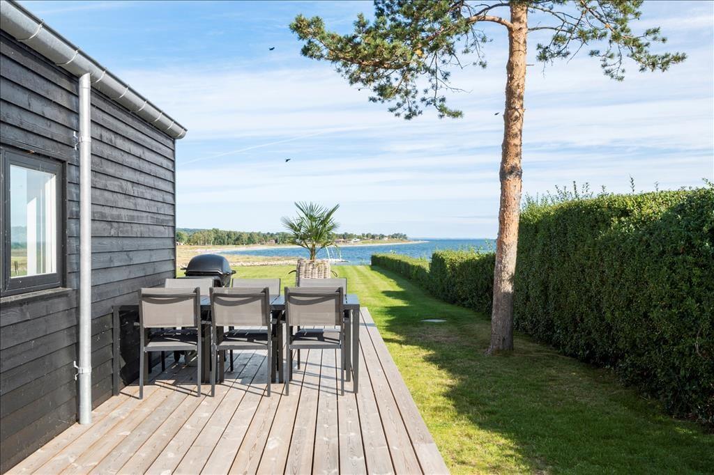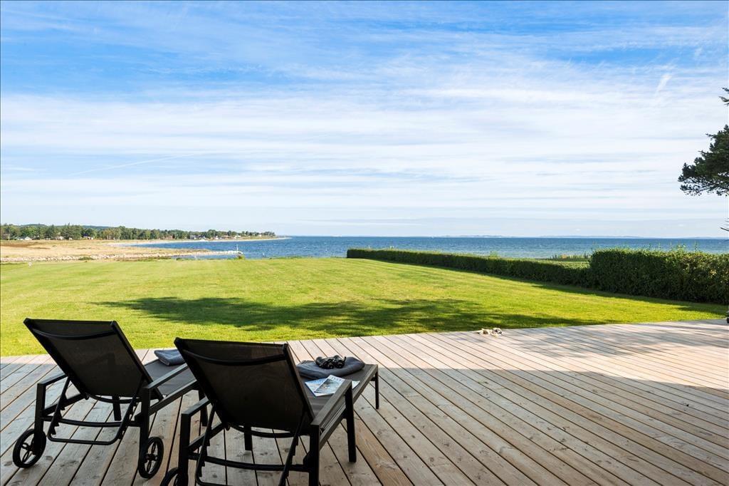 Die Holzterrasse, die dieses attraktive Ferienhaus umgibt, weitet sich zu einem großen Aufenthaltsbereich unter freiem Himmel aus und lädt zum Bewundern der Natur ein. Mit Panoramablick über den Fjord und die Bucht von Aarhus erwarten dich schönste Bedingungen. Die grandiose Aussicht untermalt nicht nur deine entspannten, ruhigen Momente, sondern zugleich unvergessliche Augenblicke, die du mit deinen Freunden und deiner Familie teilst. Nutze den großzügigen Außenbereich und lass deinen Gedanken beim Rauschen der Wellen und der Baumkronen freien Lauf. Die Außendusche mit fantastischer Aussicht über den Fjord spült dir nach einem Abstecher an den Strand den Sand und das Salz des Meeres von der Haut.