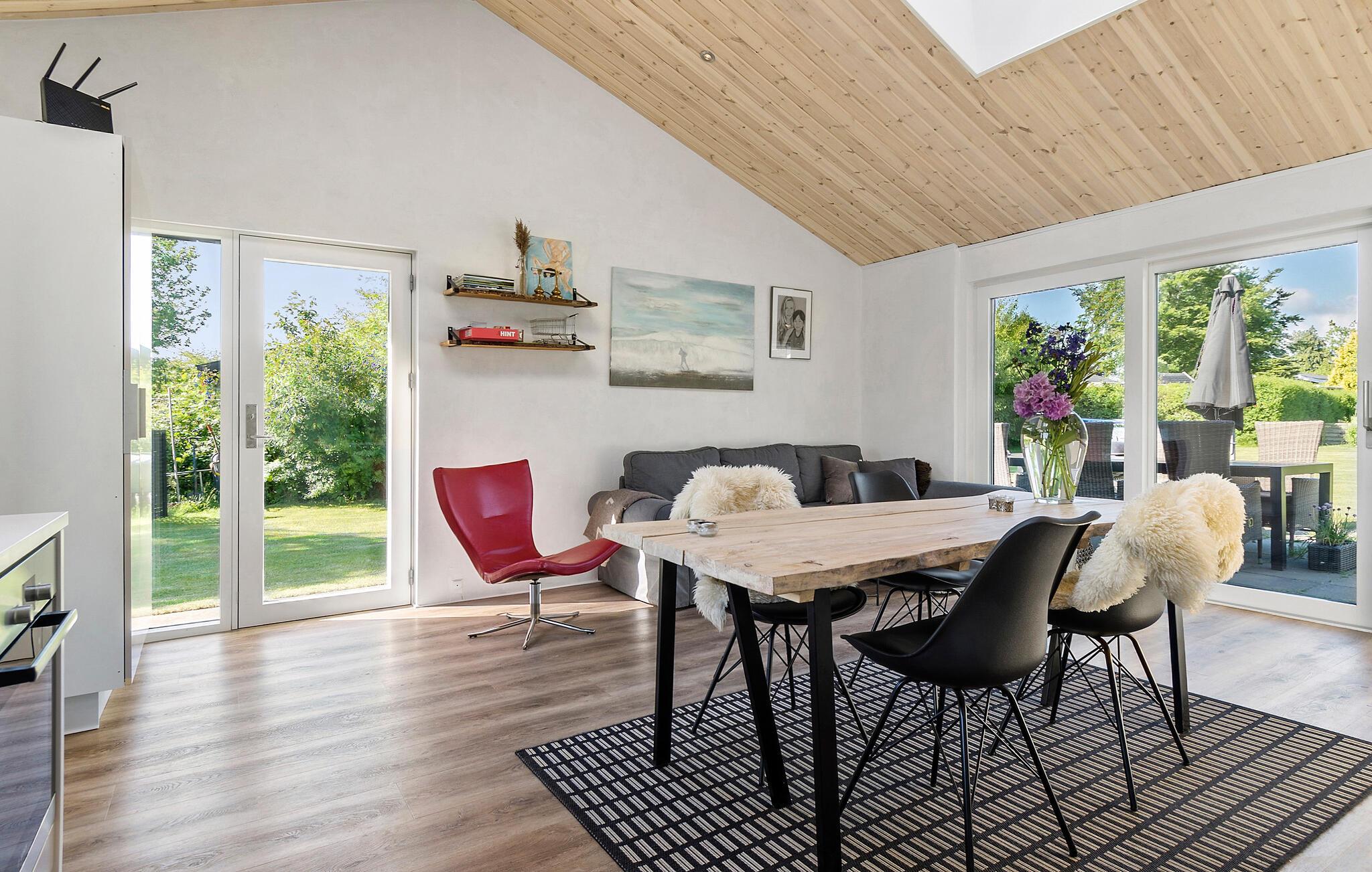 In diesem charmanten Haus vereinen sich Gemütlichkeit und schlichte Eleganz auf ganz harmonische Weise. Ein warme Holzoptik, eine bequeme Sofalandschaft und liebevoll ausgesuchte Details schaffen eine Atmosphäre, in der Sie sich schnell wie zu Hause fühlen. Entspannen Sie sich bei einer feinen Tasse Kaffee, hören Sie Ihre Lieblingsmusik oder bereiten Sie in der modernen Küche leckere Mahlzeiten für sich und Ihre Lieben zu. Entzünden Sie an kühleren Abenden den Kaminofen und erholen Sie sich bei wohltuender Wärme.