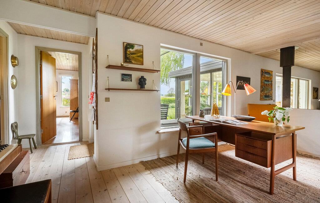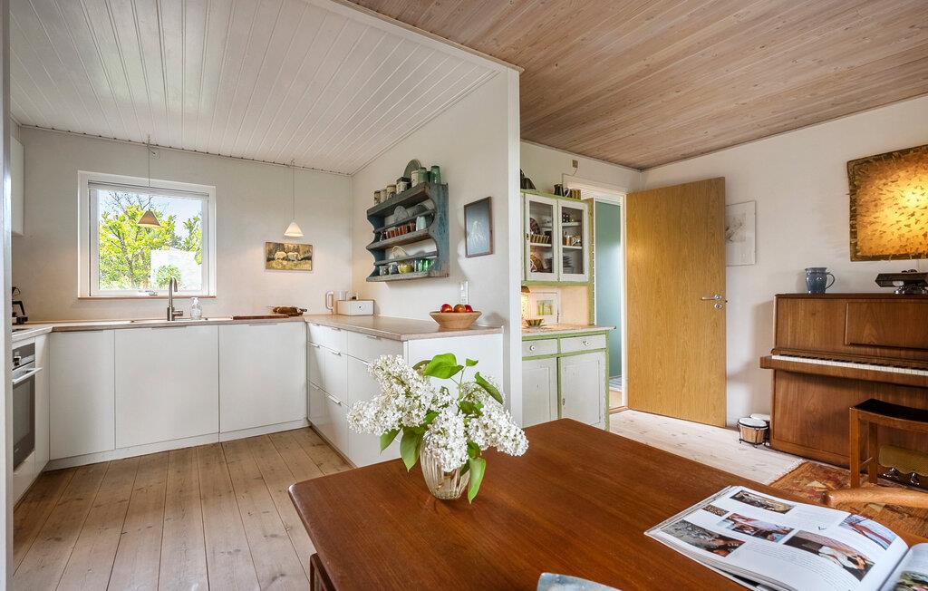 Genießen Sie in Ihrem Ferienhaus die Ruhe, die gepflegte Atmosphäre und das schöne Licht, das durch die großen Fenster in die Räume fällt. Der Innenbereich des Hauses vereint skandinavischen Charme mit modernem Komfort. Entspannen Sie im gemütlichen Wohnbereich mit Kaminofen, Sofaecke und Fernseher. Der angrenzende Wintergarten bietet einen wunderbaren Ort für gemeinsame Mahlzeiten oder eine Tasse Tee mit Blick auf den Garten. Nutzen Sie den Schreibtisch, um in ruhiger Umgebung zu lesen oder zu schreiben, und musizieren Sie in geselliger Runde. In der offenen Küche mit schöner Holzausstattung finden Sie, was Sie zum Kochen brauchen. Lassen Sie sich vom wohnlichen Ambiente inspirieren.
