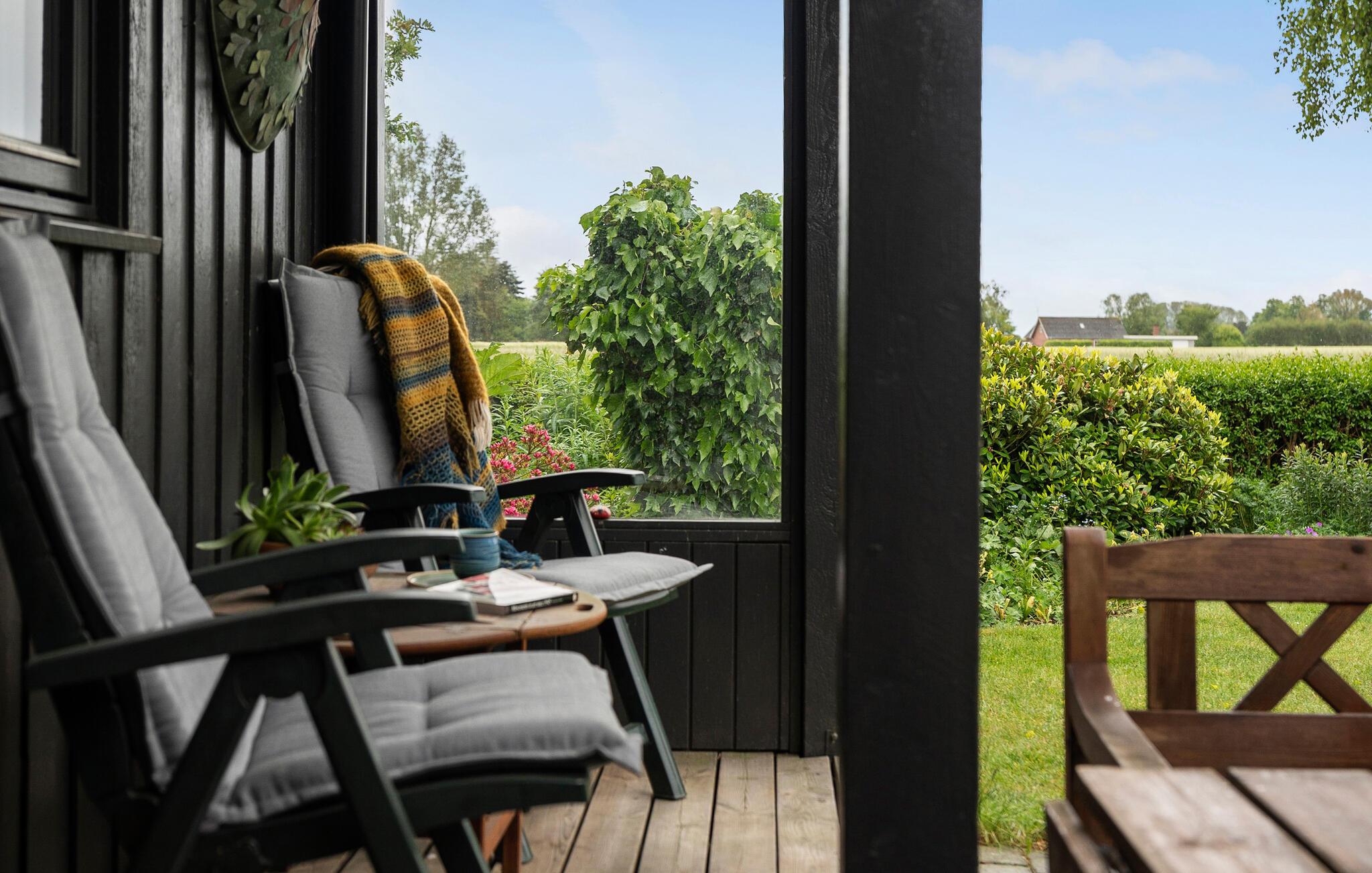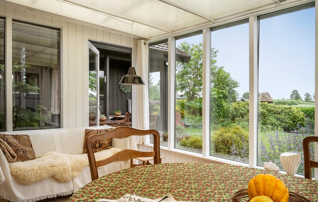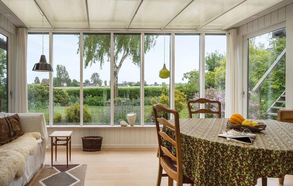 Verbringen Sie Ihre Urlaubstage in diesem Ferienhaus mit Ausblick ins Grüne und gemütlichem Wintergarten.