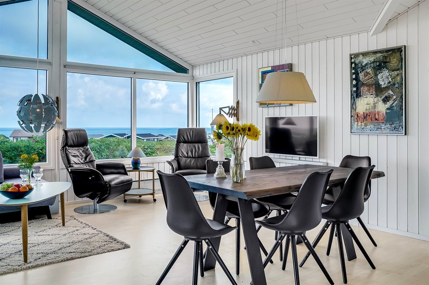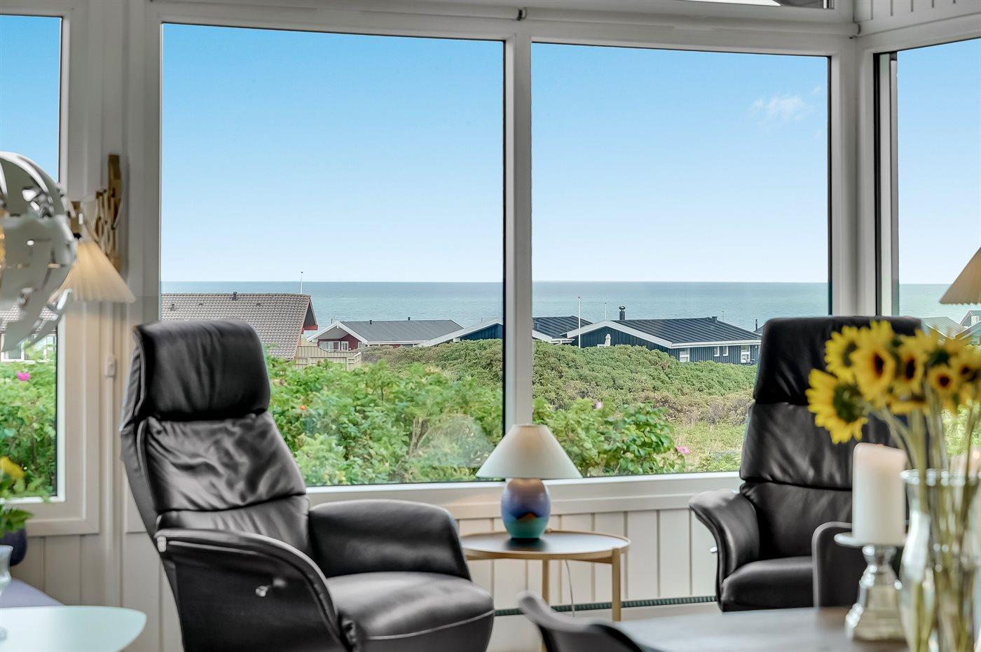 Holiday home with 180 degree panoramic sea view in the popular Lønstrup. In this house you can have hours to go to regard the beautiful scenery right outside the door; here is in fact a fantastic sea view, as far as the eye can see. The house is cozy and practical furnished with modern and comfortable furniture and the open kitchen with the living room. Everywhere from the living room and the kitchen you can see the sparkling sea, which is near by. The house has also a small loft, where the views also can be enjoyed. The location is in a lovely hilly cottage area close to the beach, and the house is high situated on a dune, it has also an incredibly beautiful sea view from the terrace. From the south-facing terrace you can see the sea through the large picture windows, while you can stay in the garden completely undisturbed and with good shelter, so you can drink your coffee, though wind is fresh. Behind the house there is a small path and a stairway to a private view bench where you sense to be able to see all over Jutland.
