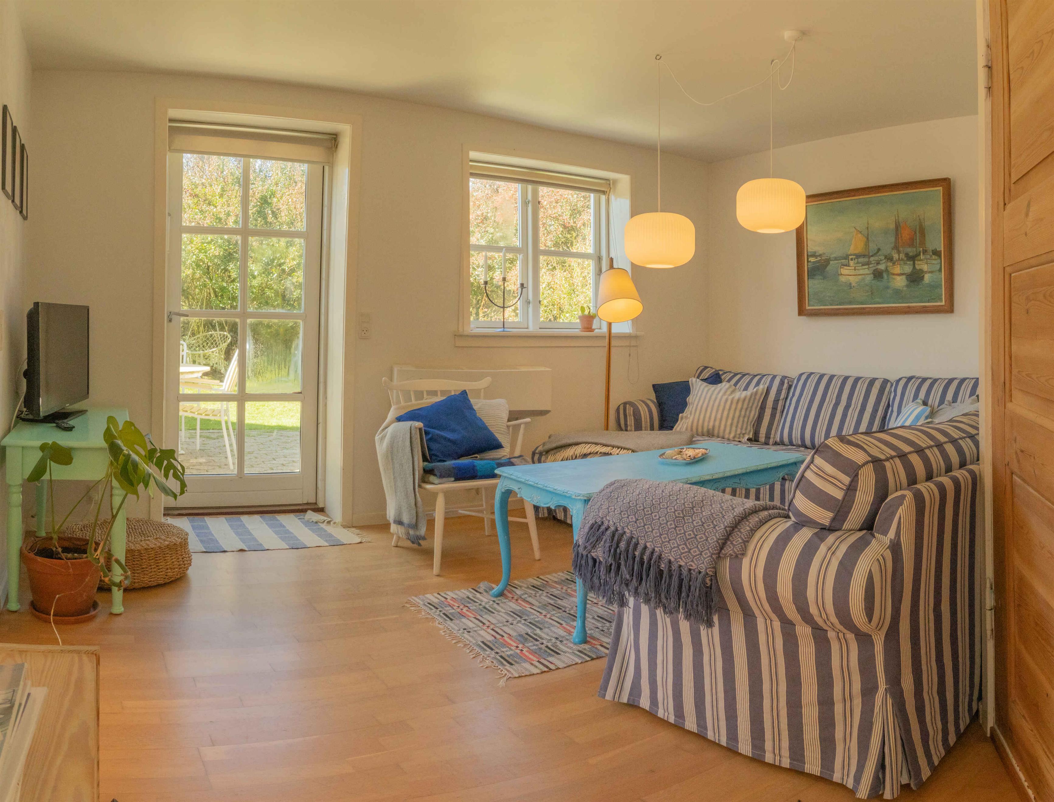 Welcome to this cozy summer house. With 80 m², the house offers relaxation and comfort for the whole family. Here you have everything you need for a relaxing holiday. The summer house has two bedrooms with comfortable beds that ensure a good night's sleep. With space for seven people, the house is ideal for both small and large families. The living room is spacious with plenty of room for socializing and relaxation. With just 450 meters to the water, you can enjoy the beach and the beautiful surroundings. The area is perfect for long walks, cycling, and water sports. There is an opportunity to experience the breathtaking nature and rich wildlife. The house is equipped with internet, so you can stay connected if desired. Children can play on the trampoline in the garden. On the terrace, you can enjoy meals prepared on the grill and gather for board games on long summer evenings. The surroundings offer a combination of sea and dune landscape, inviting relaxation and contemplation. The charming towns with small shops and cozy cafes are within short distance. Here you can enjoy local gastronomy and culture. The nature in the area invites exploration and adventure. Discover the beautiful national parks or visit the historical sights that testify to the region's rich cultural heritage. Here awaits a holiday full of memories. Please note, that the door to the terrace/garden is currently not functioning. The delivery and replacement of a new door is currently unknown. Note: Not for commercial rental.