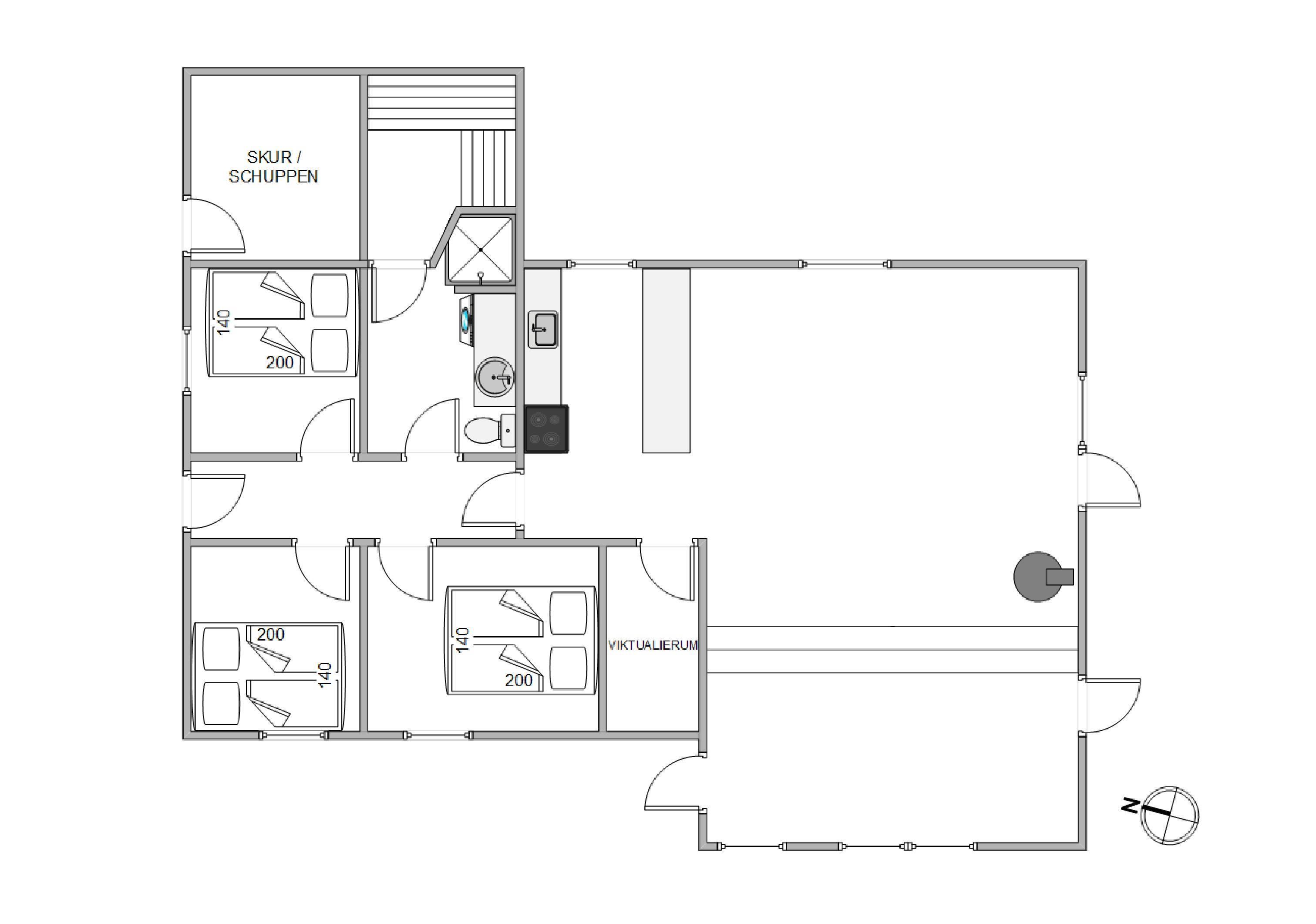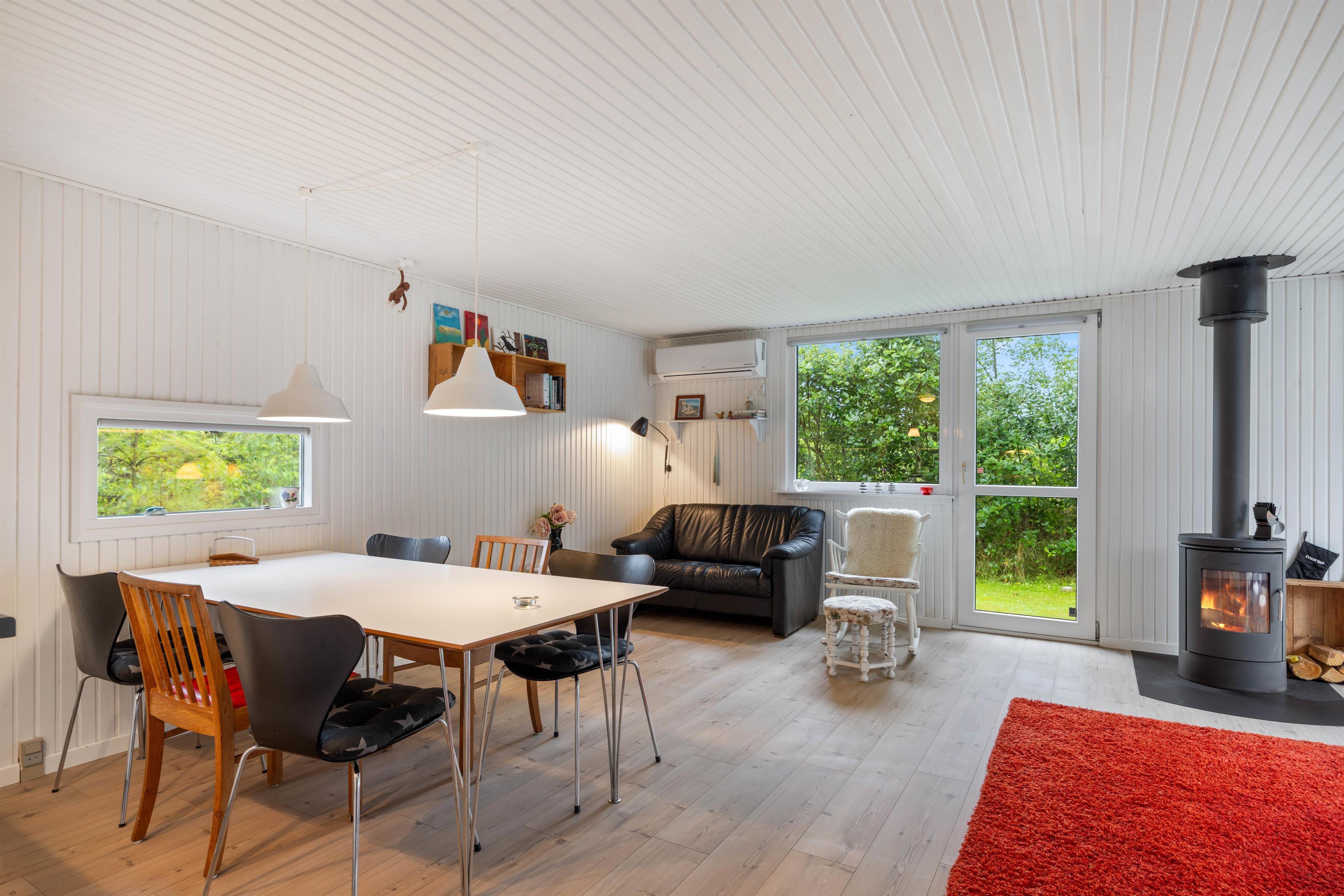 Das Ferienhaus verfügt über eine geräumige Fläche von 85 m2. In der Küche machen ein Geschirrspüler und ein separater 60-Liter-Gefrierschrank das Kochen zum Kinderspiel. Der Holzofen spendet Wärme und Gemütlichkeit an kühlen Urlaubsabenden, während eine energiesparende Luft-Luft-Wärmepumpe das ganze Jahr über, für eine angenehme Temperatur im Wohnbereich sorgt. Das Ferienhaus ist mit einer Waschmaschine ausgestattet, also kein Problem, wenn mal gekleckert wird.