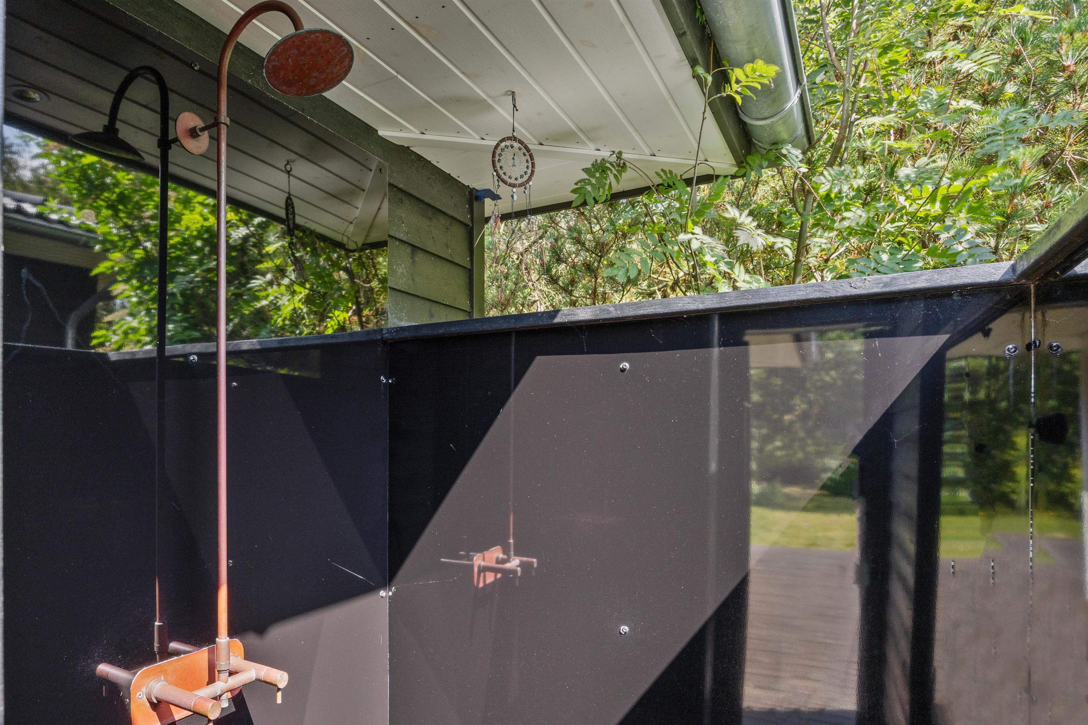 The sheltered, partially covered terrace invites you to spend many hours outdoors. Garden furniture, sun loungers and a barbecue are provided. Make yourself comfortable outside whenever weather permits. There's an outdoor shower for quick refreshment on hot summer days, available from April to November to prevent frost damage.