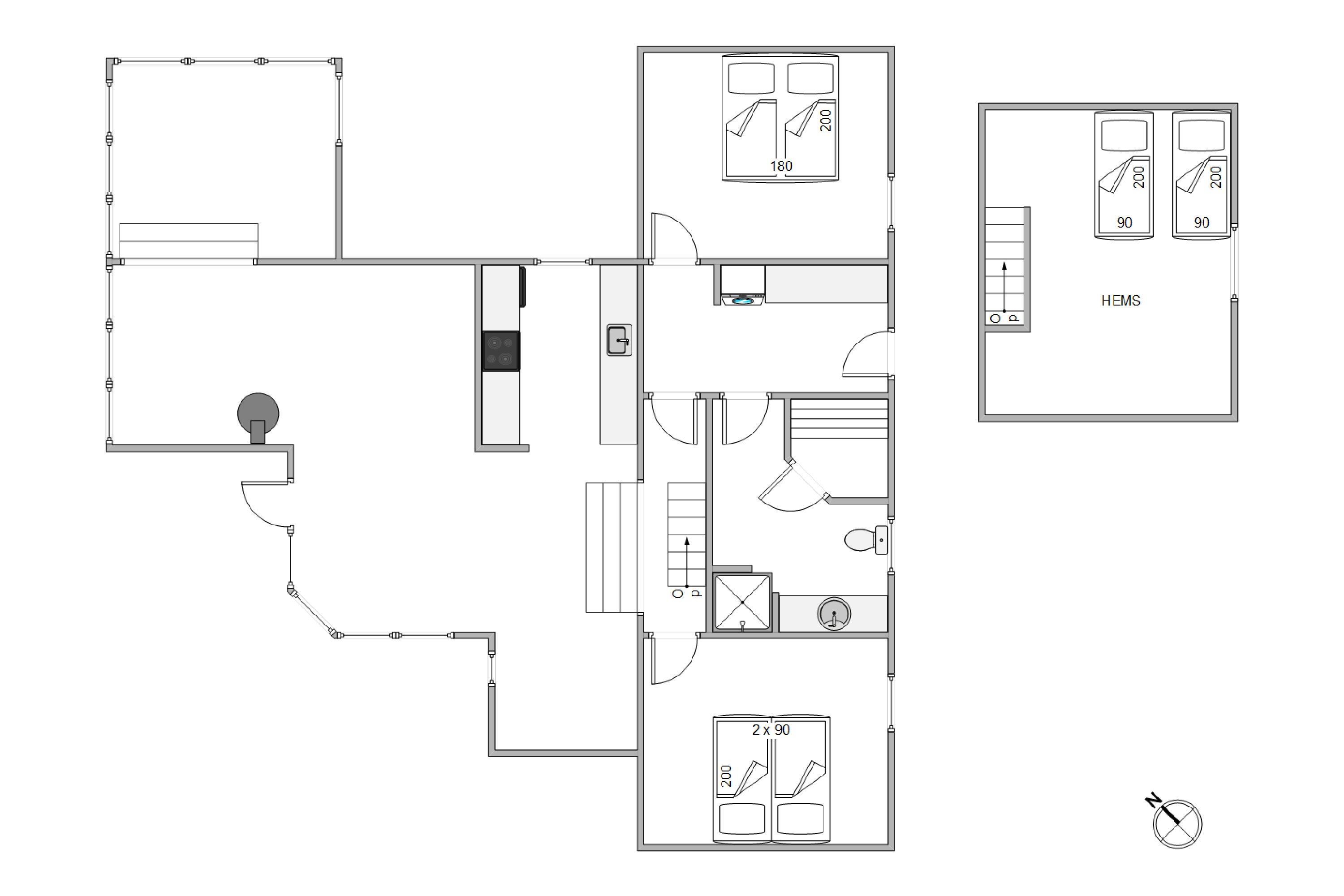 The summer house is only 1,800 meters from the North Sea, perfect for beautiful walks along the beach, and approximately 3,500 meters from shopping opportunities and ideal for a spontaneous beach trip or a leisurely shopping outing. In Søndervig, you’ll find supermarkets, restaurants, cafés, and small shops offering everything from daily groceries to souvenirs. The area also features charming farm shops and attractions such as Bagges Dæmning and the lock in Hvide Sande.