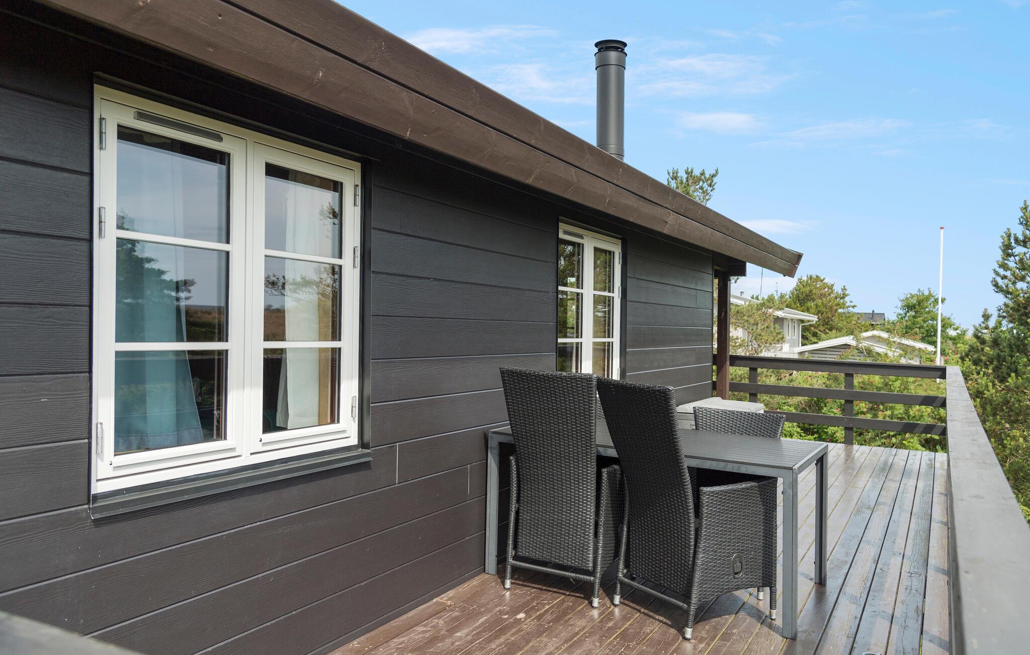 Das gemütliche Ferienhaus liegt auf einer Anhöhe und hat deshalb einen wunderbaren Meerblick. Die schöne Terrassen bietet gute Gelegenheit für Aufenthalte im Freien und zwar den ganzen Tag.