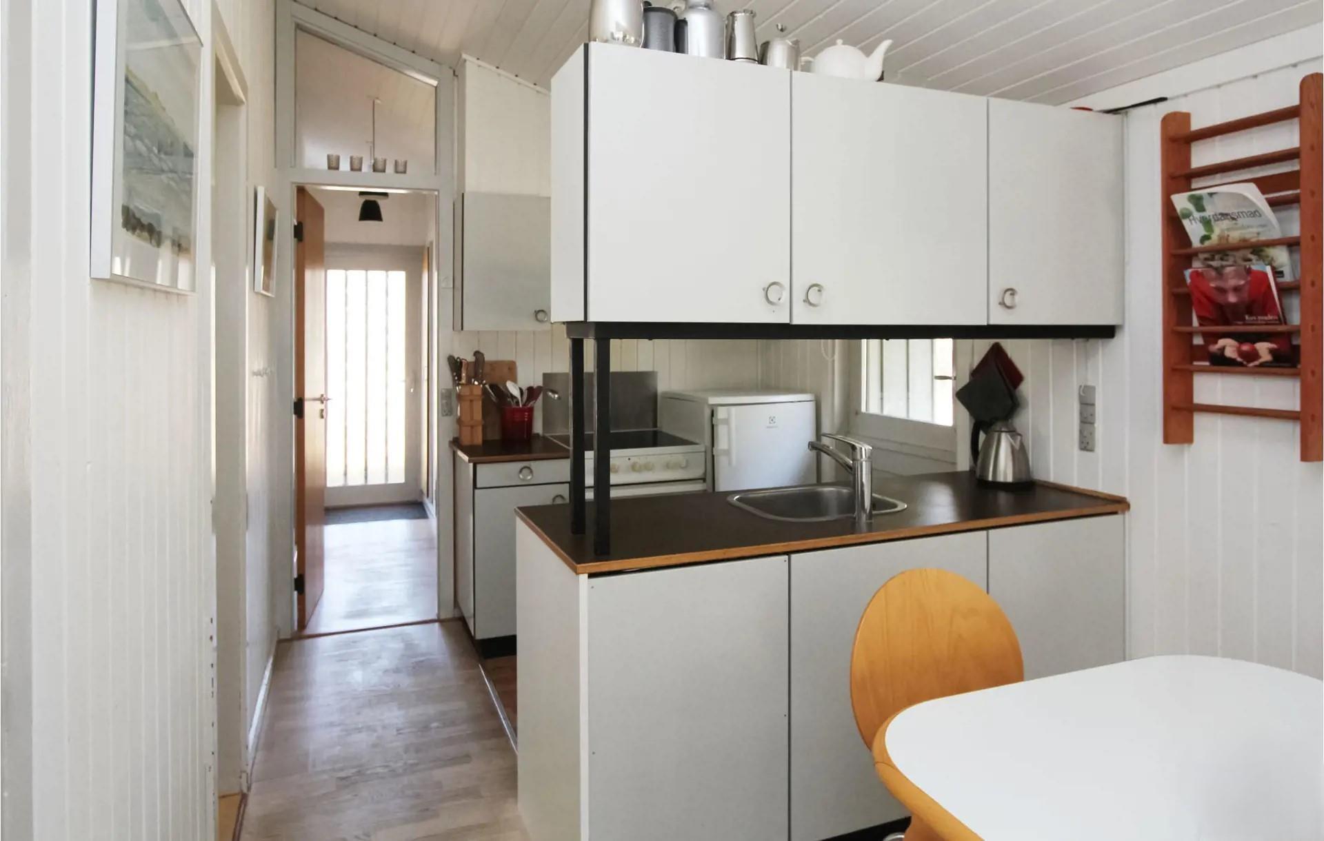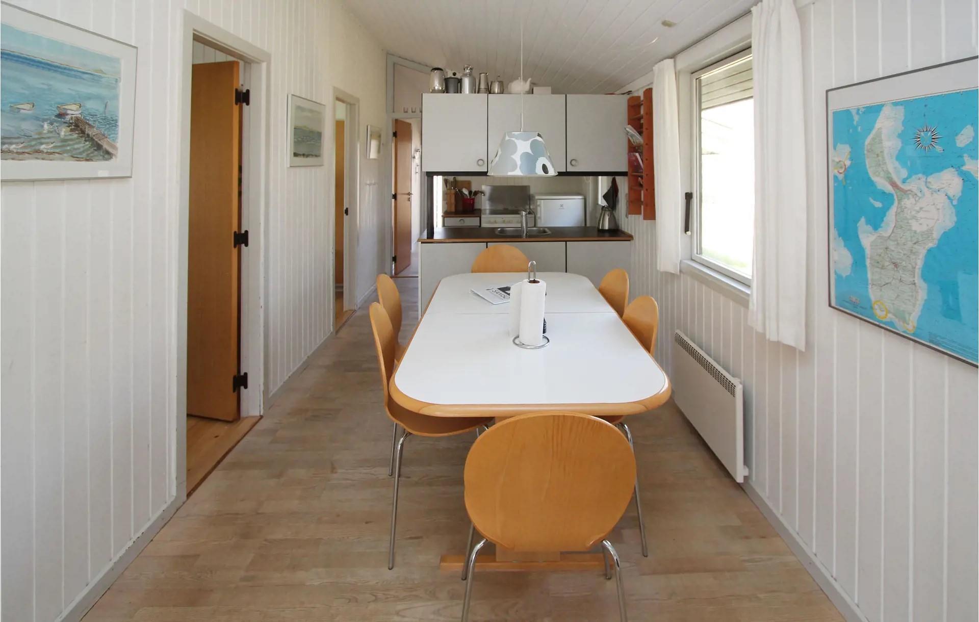 you will be greeted by a warm and classic atmosphere with wooden walls, ceilings and natural light from the large windows. The house has a cosy living room with comfortable furniture, a wood-burning stove and Chromecast TV, so you can relax in front of the fire or stream your favourite content. The kitchen is practical and open to the dining area, so you can prepare your holiday meals and still be part of the conversation at the table.