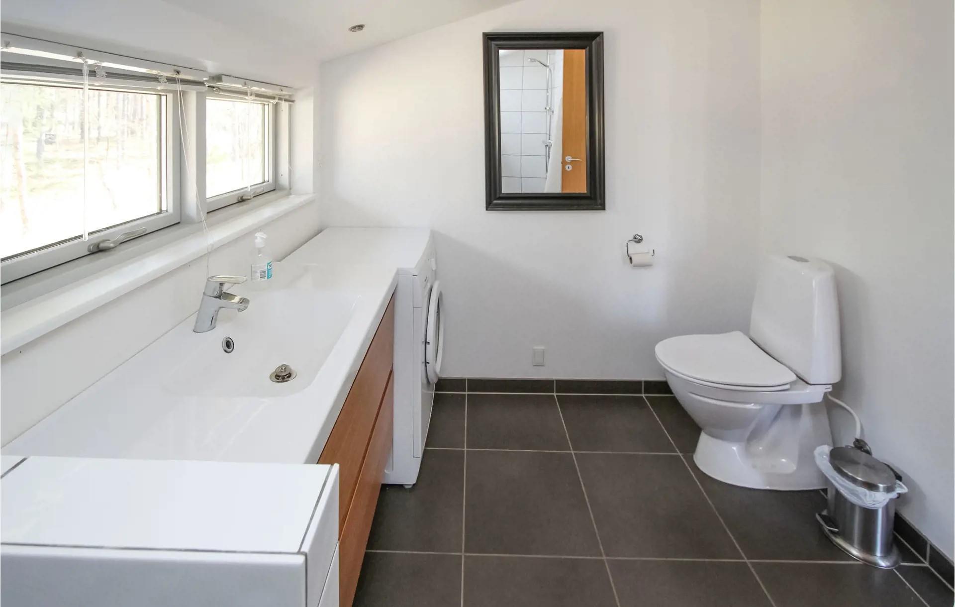 there is a partially covered terrace with good garden furniture, where you can enjoy the quiet mornings of your holiday with a cup of coffee or long summer evenings in the peaceful surroundings of the forest. The grounds are natural with heather and tall grass, and the forest is very close by – perfect for play, walks and little adventures. As the area is protected, barbecuing is not allowed at the house, but you can easily take a disposable barbecue down to the beach and combine food and sea views.