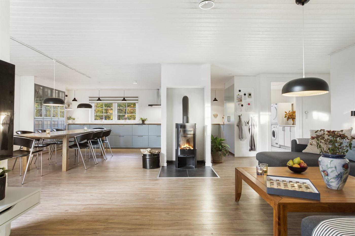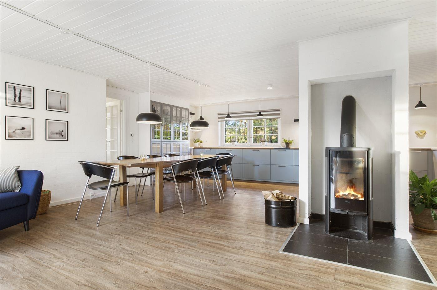 Holiday home suitable for 12 persons as well as 1 child up to 3 years. The holiday home is 211 m² and is build in 1995. In 2019 the holiday home was renovated. In 2020 the holiday home was partial renovated. You can bring along 2 pets. The holiday home is equipped with 2 energy-friendly air-to-air heat pumps and 1 energy-friendly air-to-water heat pump as well as a energy-saving heat recycling system. The holiday home has washing machine. Tumble dryer. Further more there is 1 wood-burning stove. For the youngest ones there are 2 high chairs.