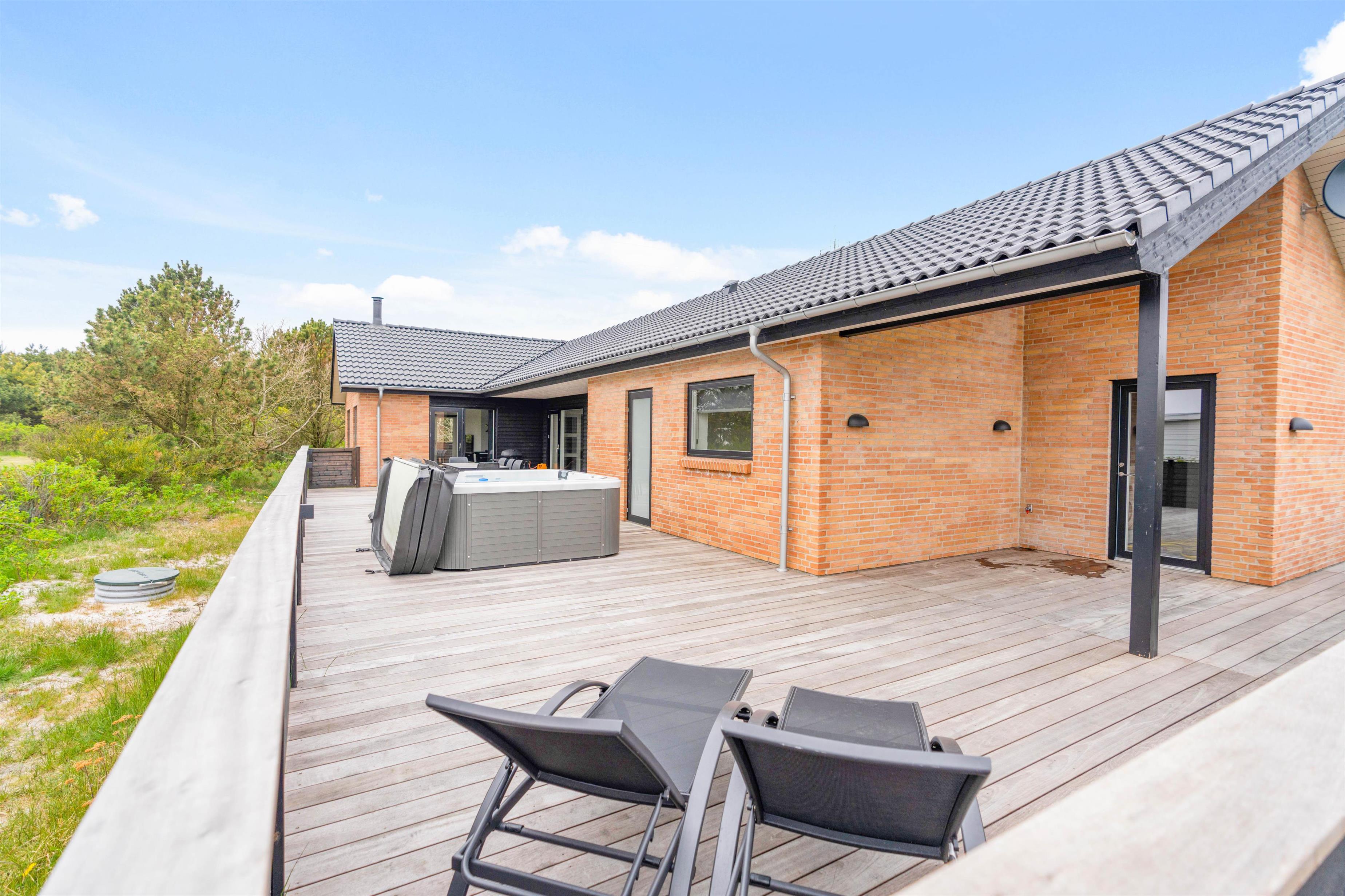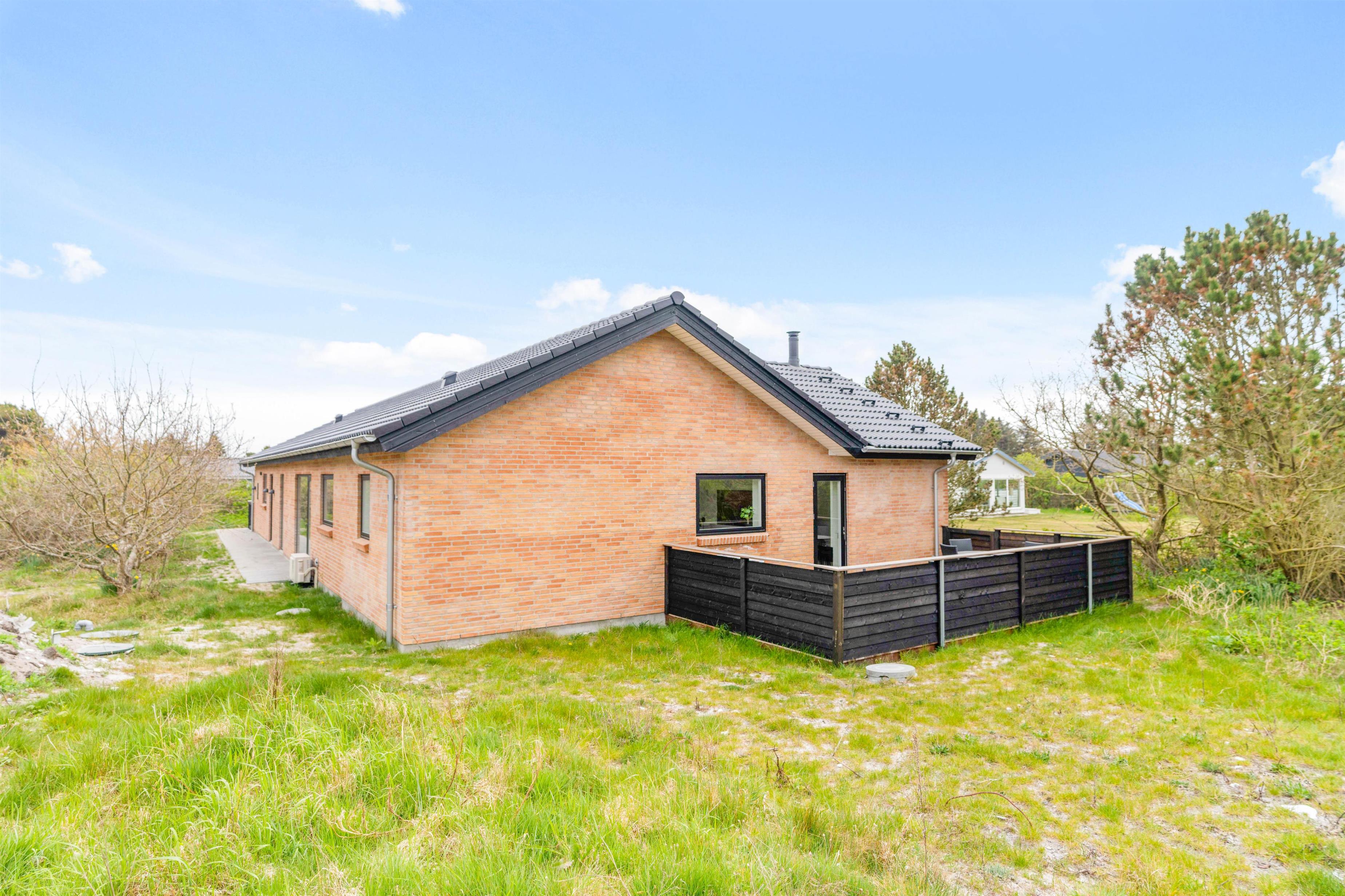 This modern holiday home, completed in 2021, is located at Fyrmarken 107 in Nørre Lyngvig, close to the Lyngvig Fyr lighthouse and beach. With its perfect layout, the holiday home is ideal for two families with children or for a holiday with friends. Dogs are also welcome. A special feature of this house is the outdoor hot tub, and the games room provides plenty of space for fun and entertainment.